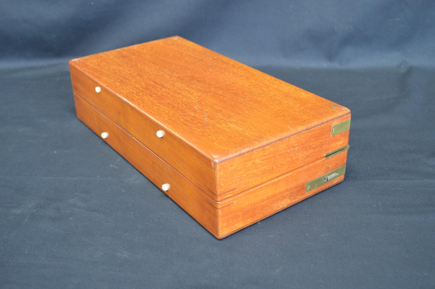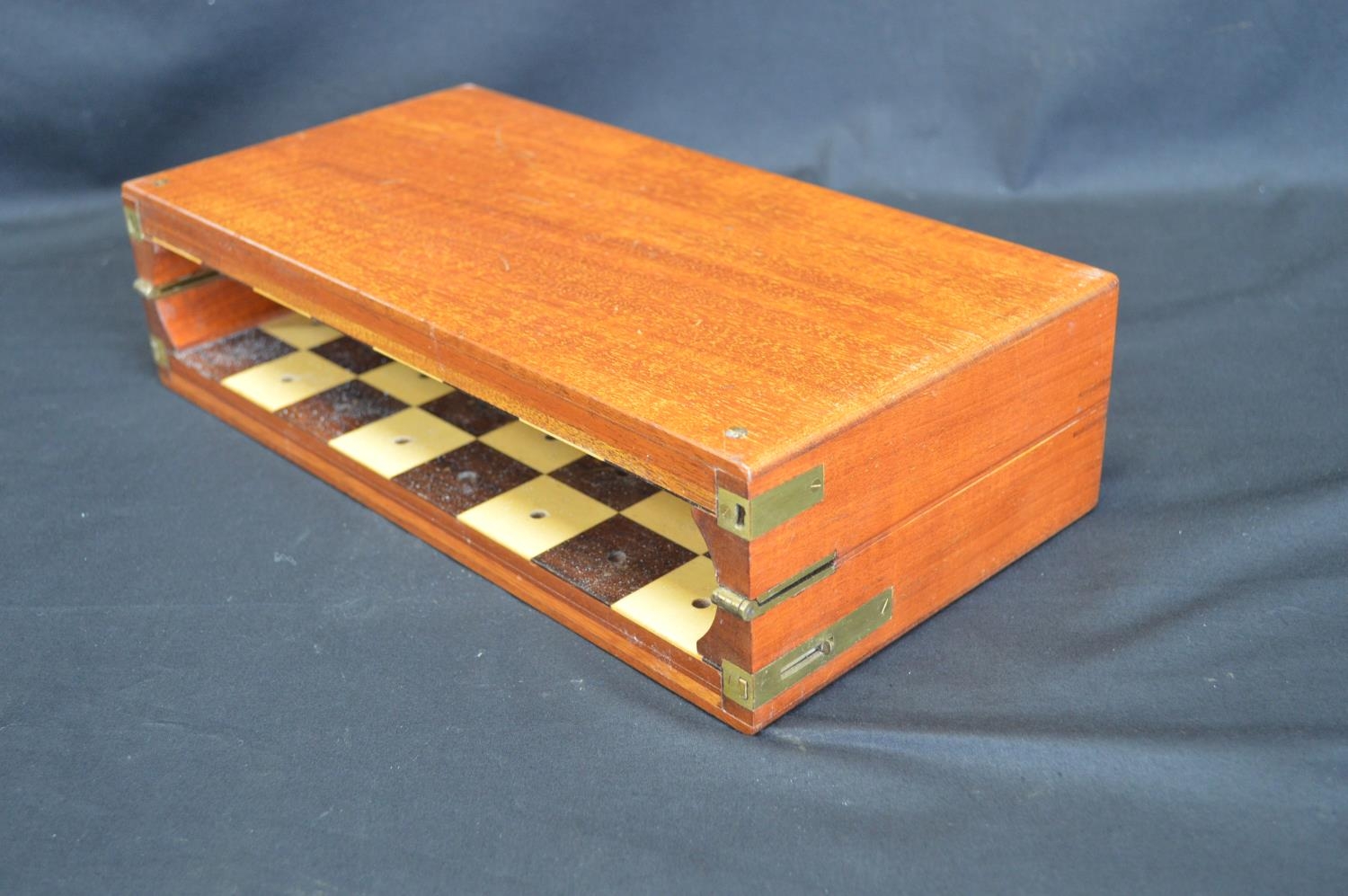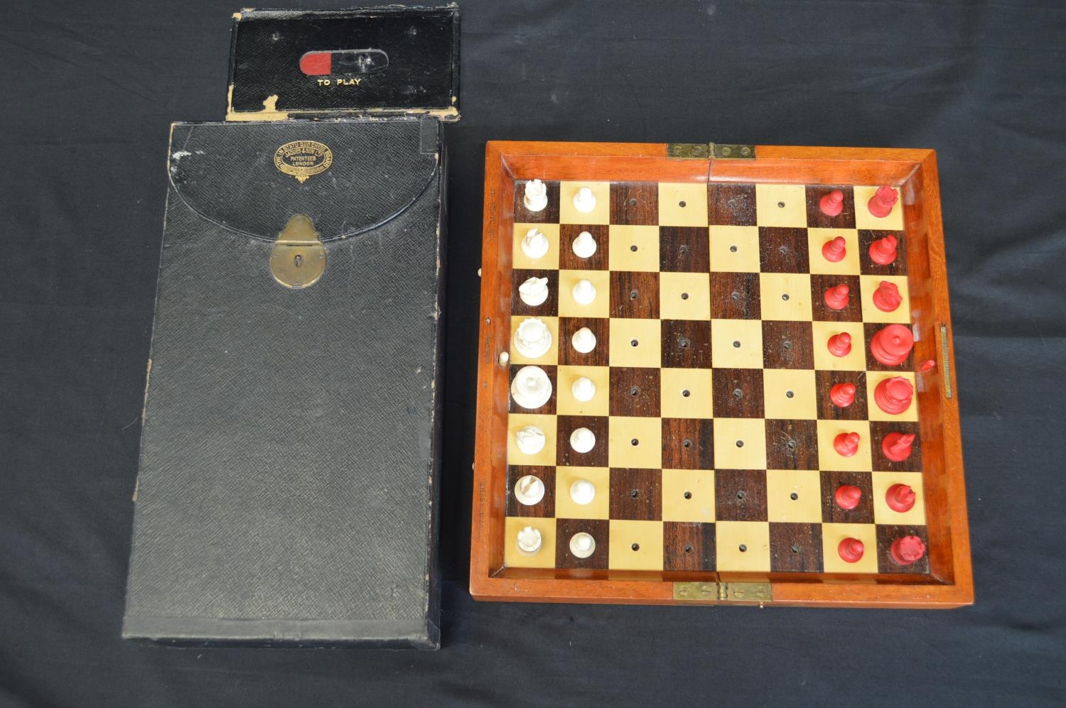 19th/20th century Jaques & Sons Ltd In Statu Quo mahogany cased bone travelling chess set complete with outer case - 32cm square