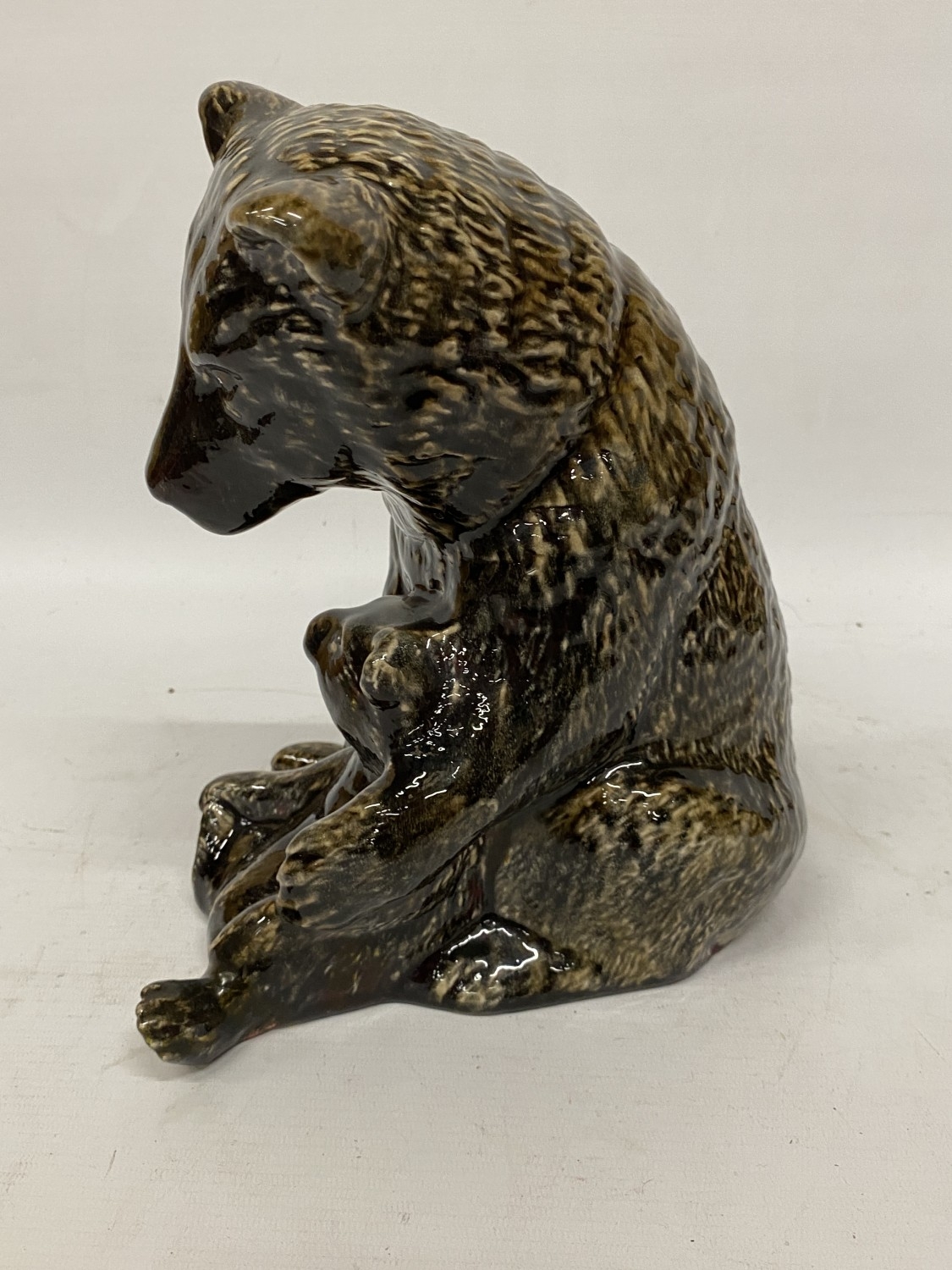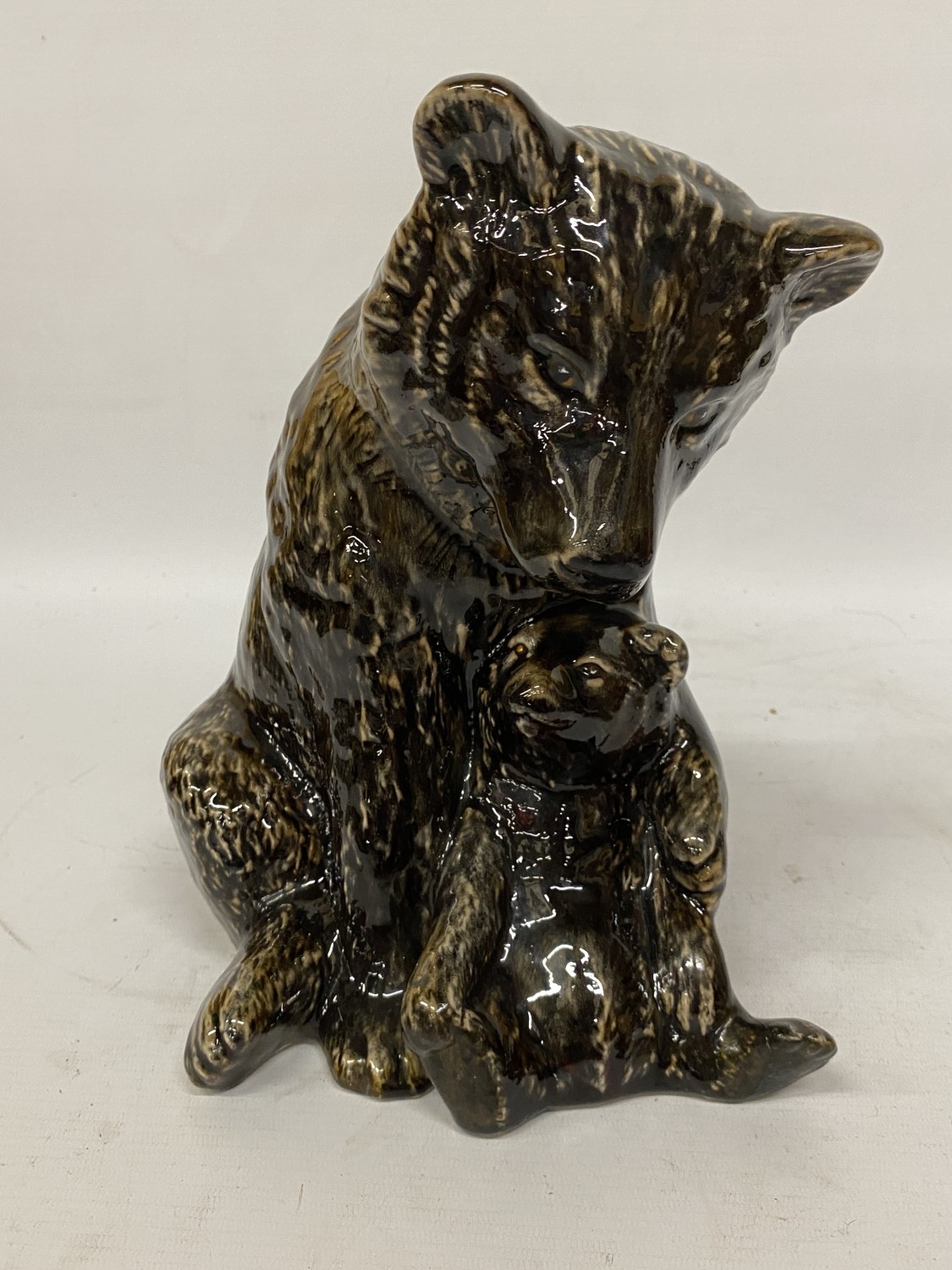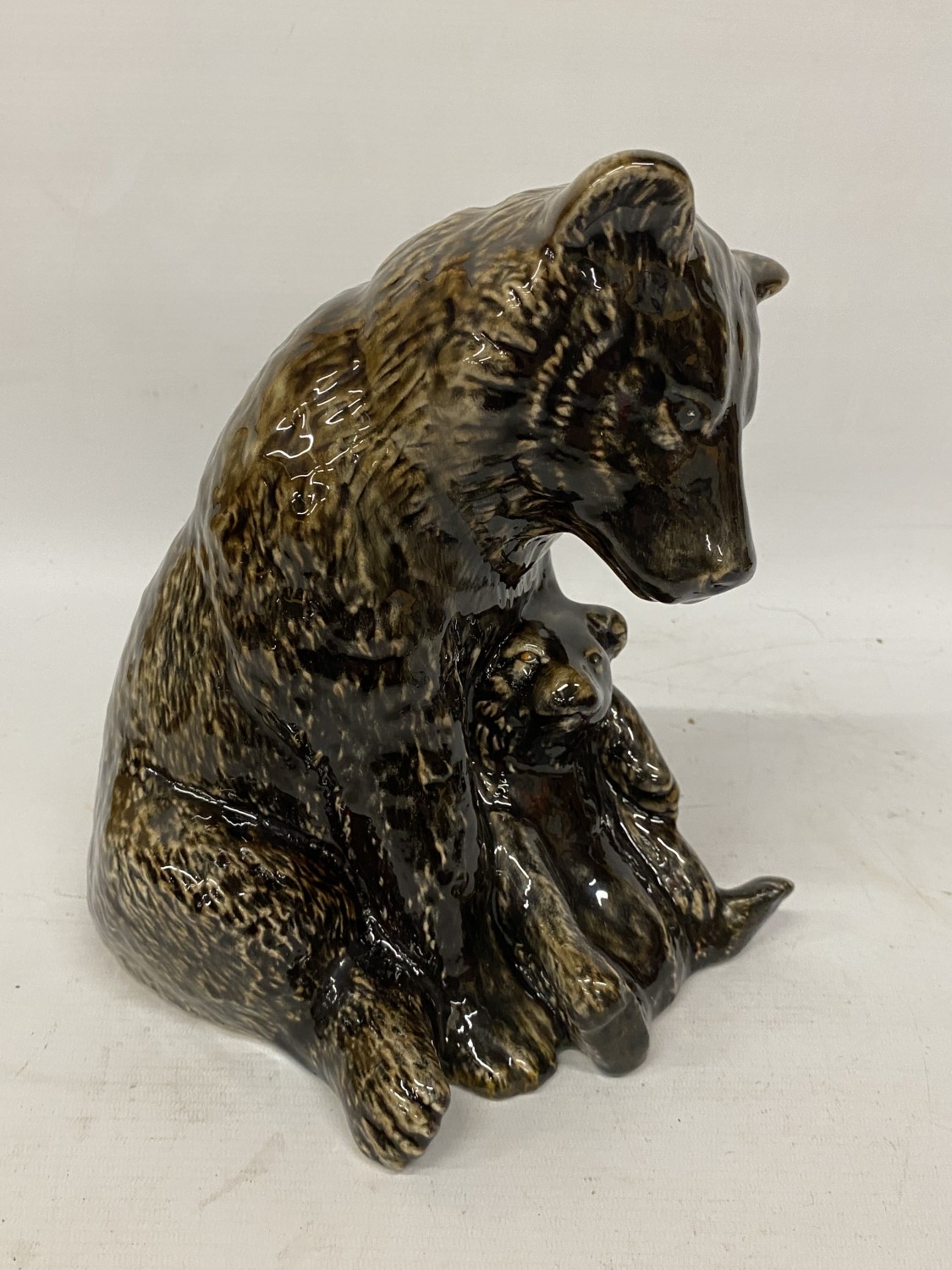 A LARGE ANITA HARRIS BEAR AND CUB FIGURE, SIGNED TO THE BASE, HEIGHT 27CM