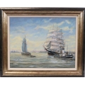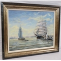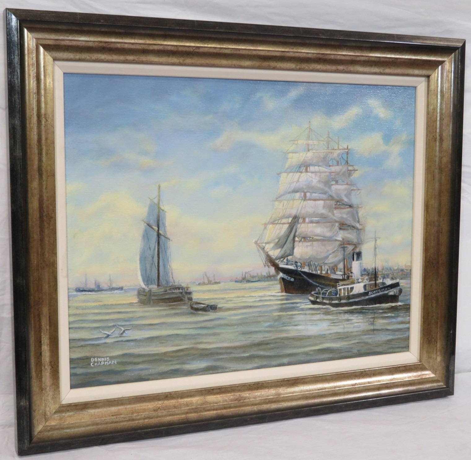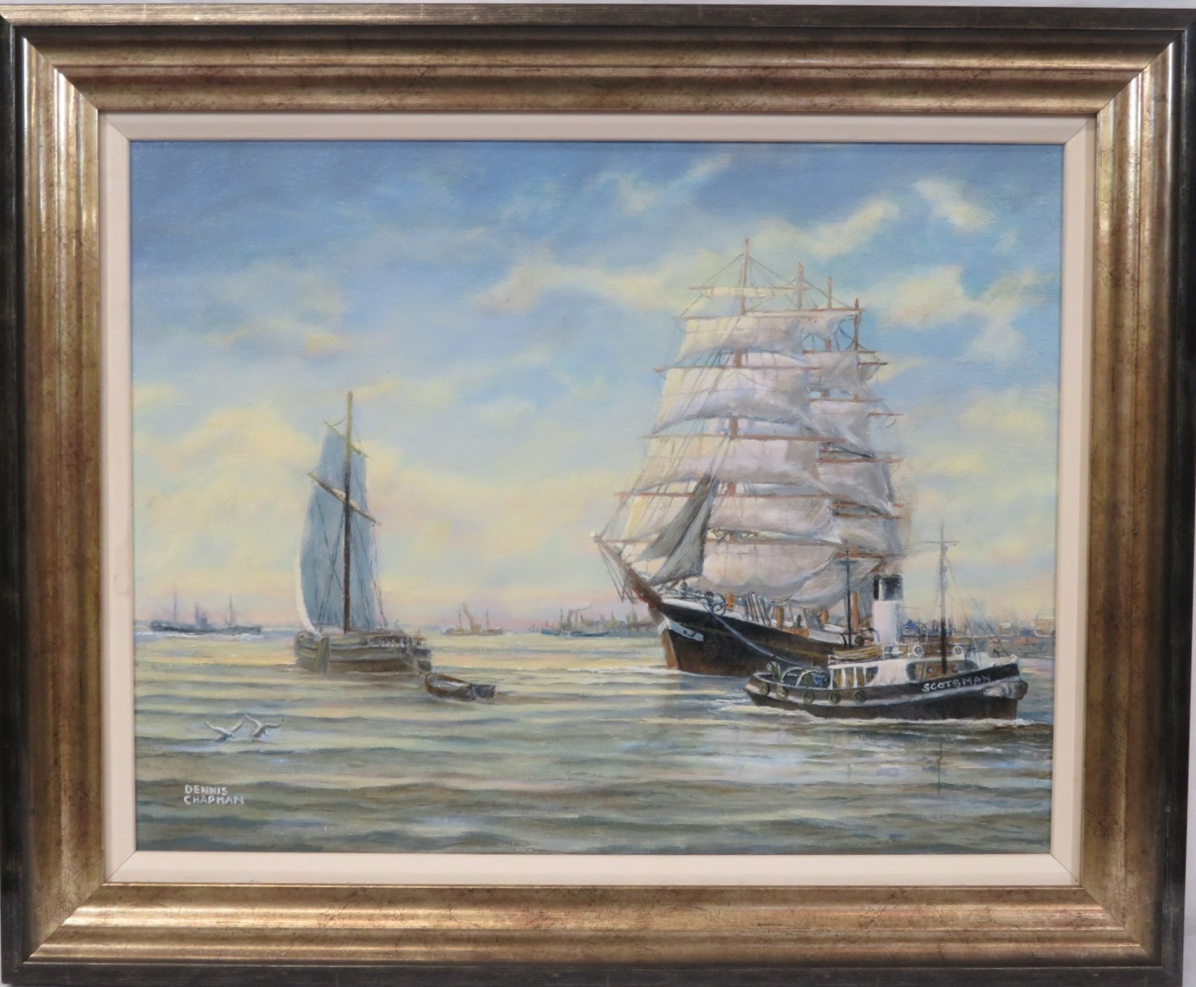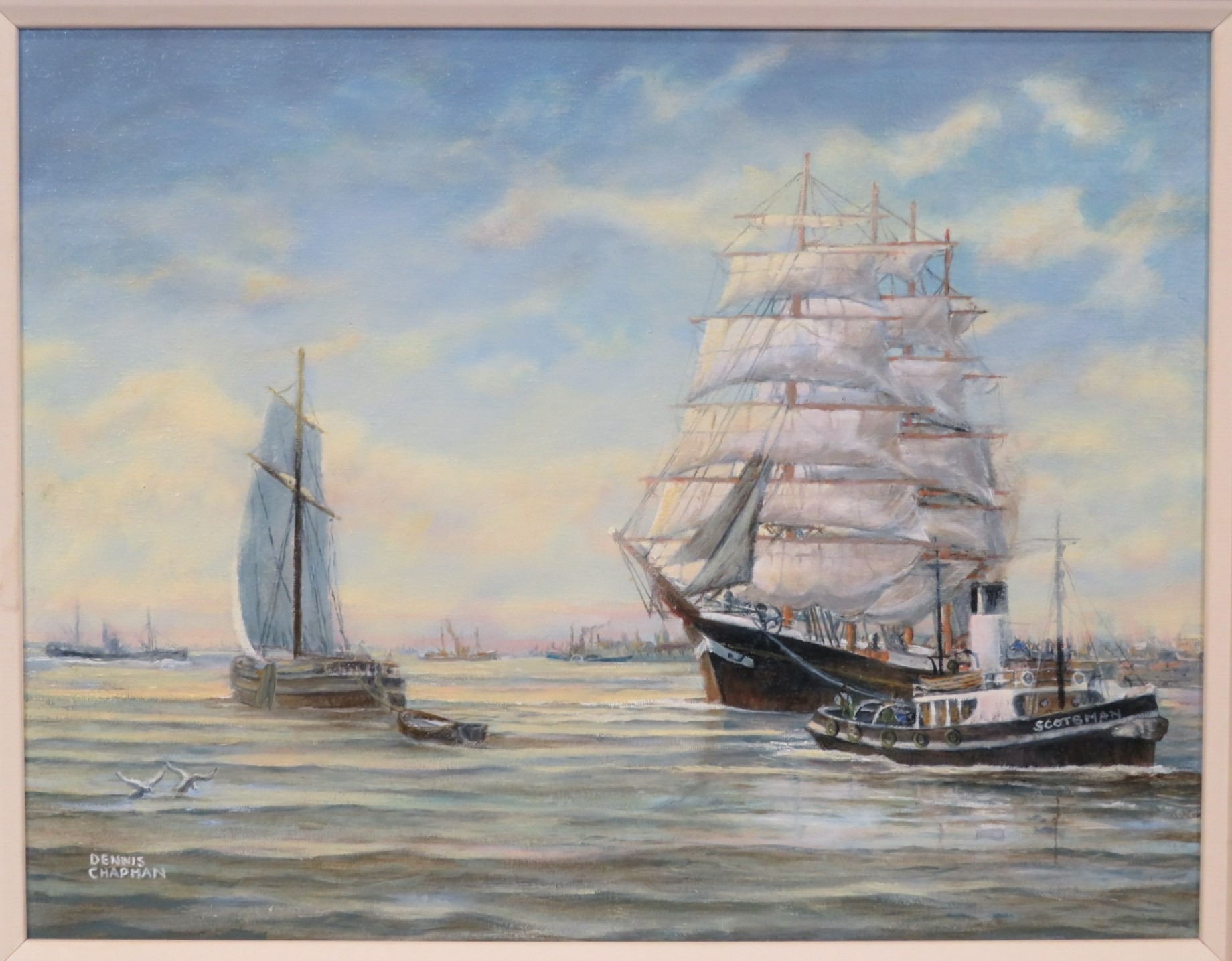 Denis Chapman 'Schooner under sail' oil on canvas, 35x45cm, signed