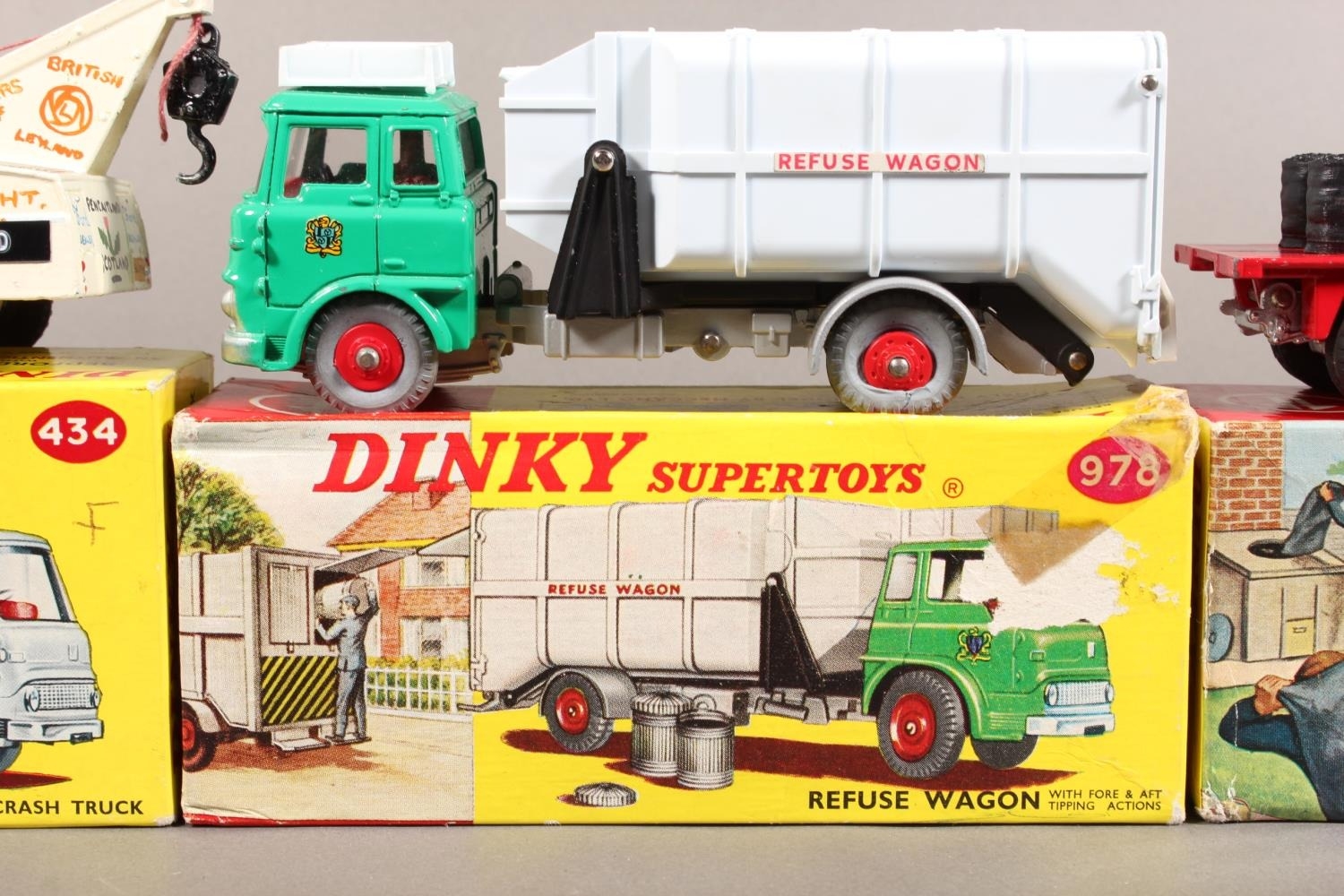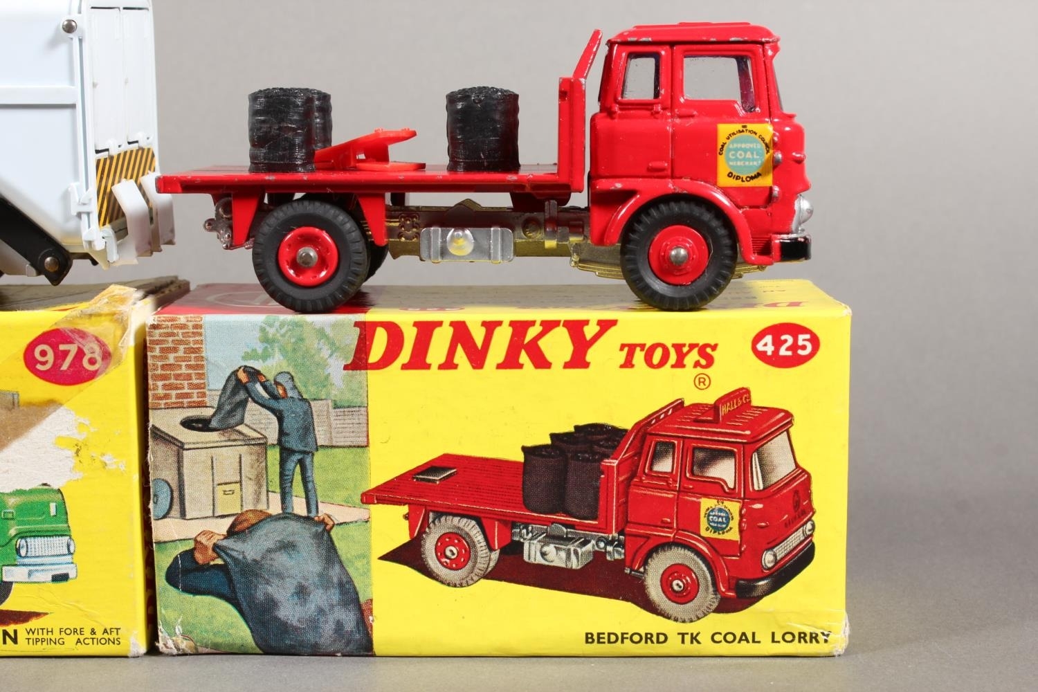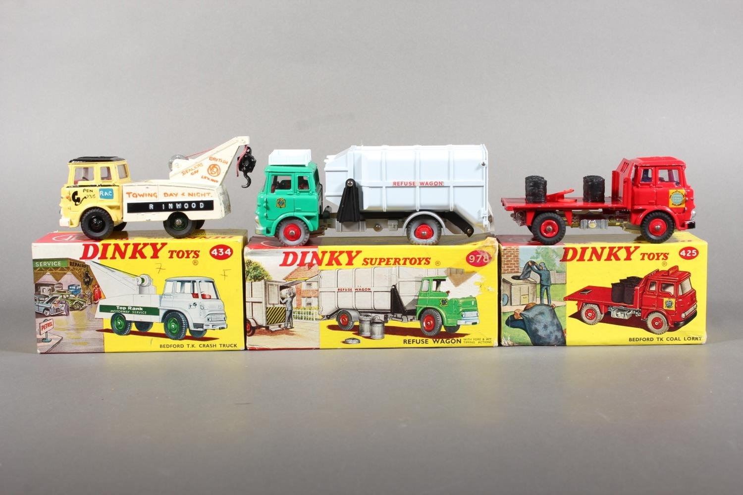 Dinky Toys diecast model vehicle 978 Refuse Wagon, 425 Bedford TK Coal Lorry and 434 Bedford TK Crash Truck (personalised), each boxed. (3)
