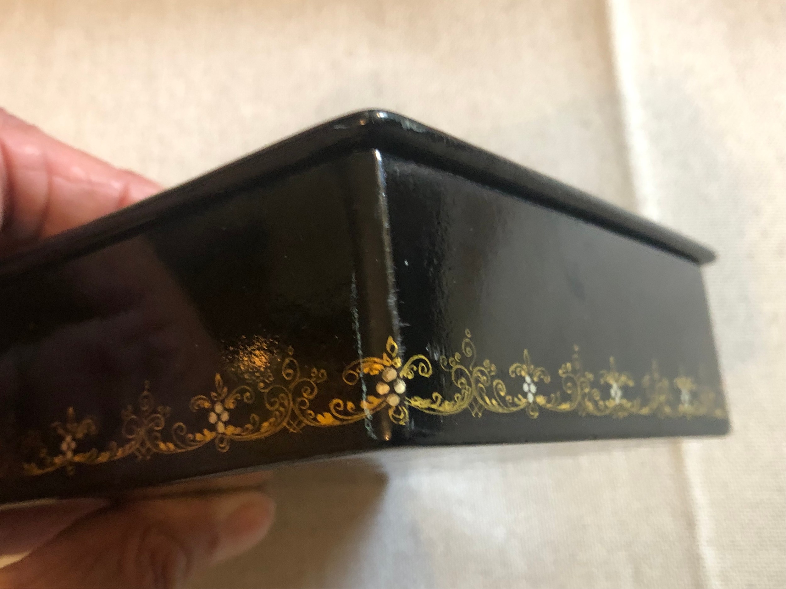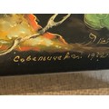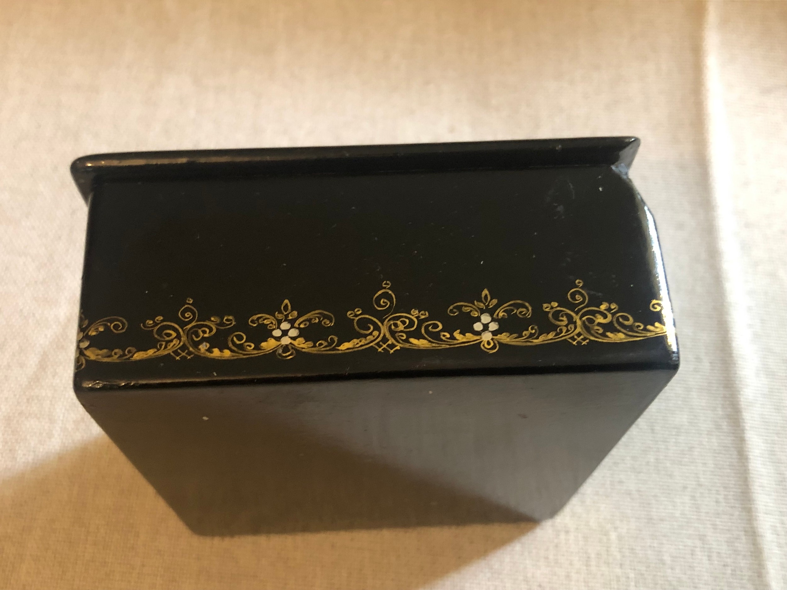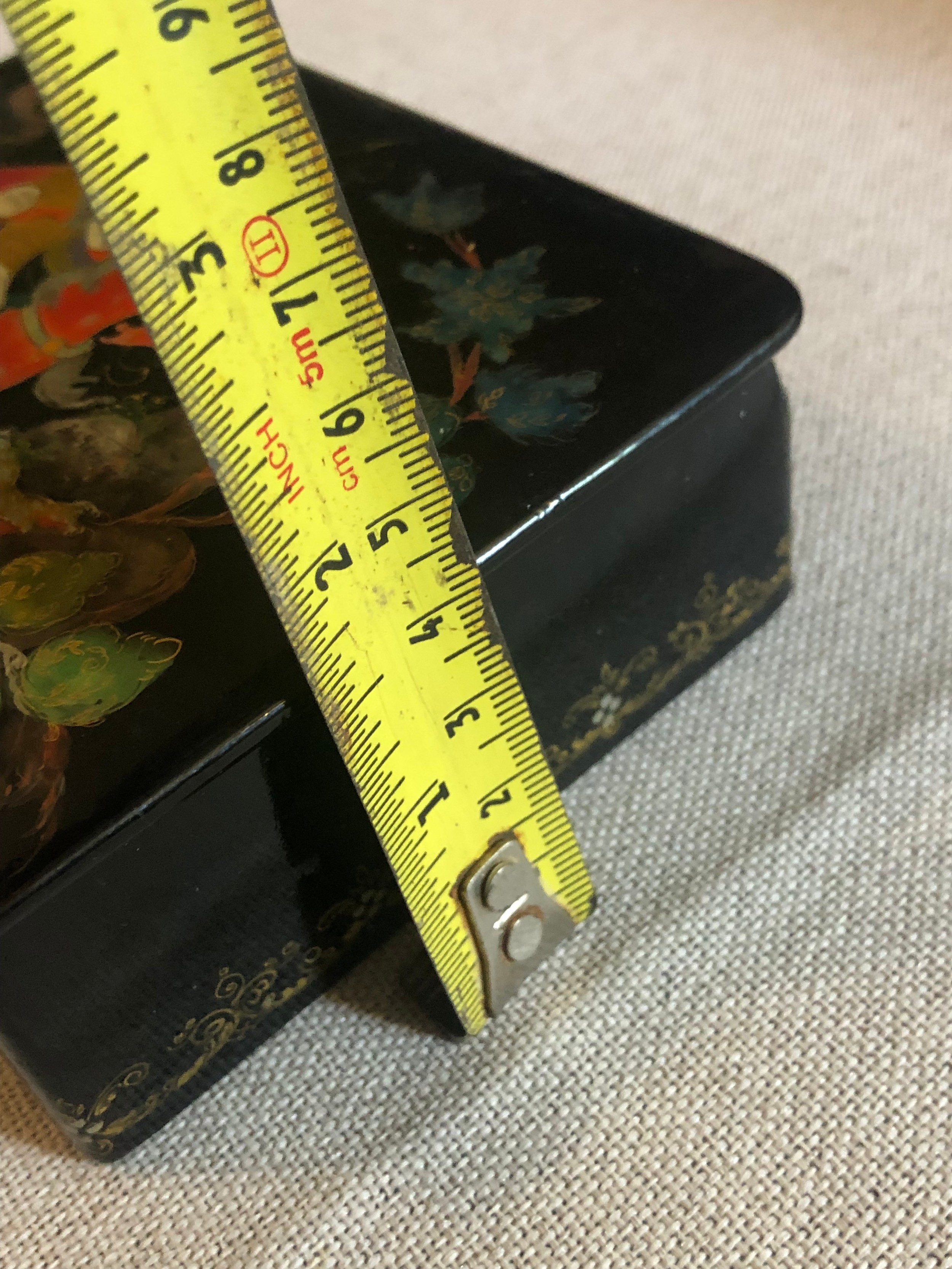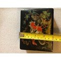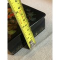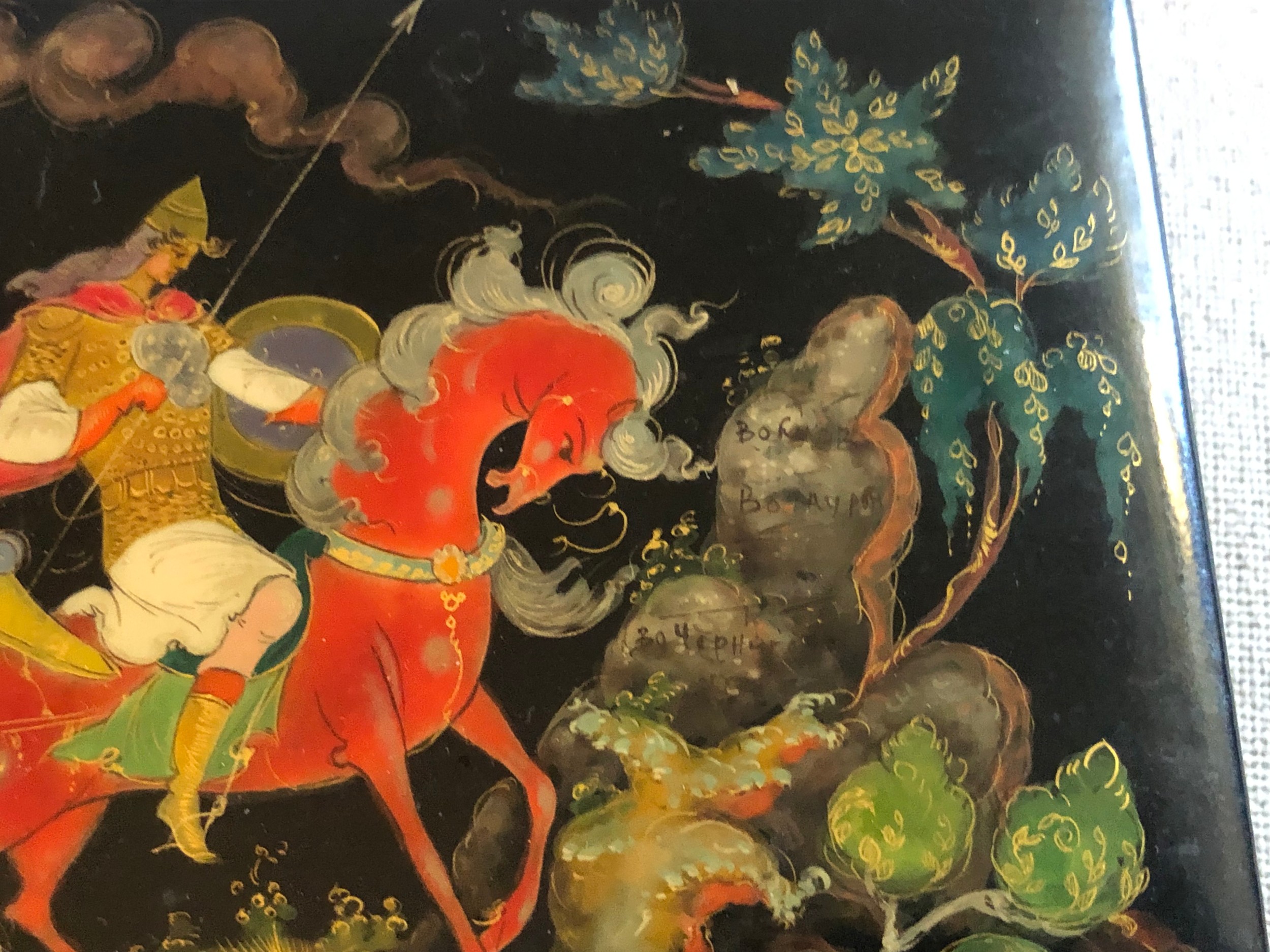 A beautiful Palekh Russian lacquered painted cigarette box with warrior riding a horse in full armour. Signed and dated 1972.