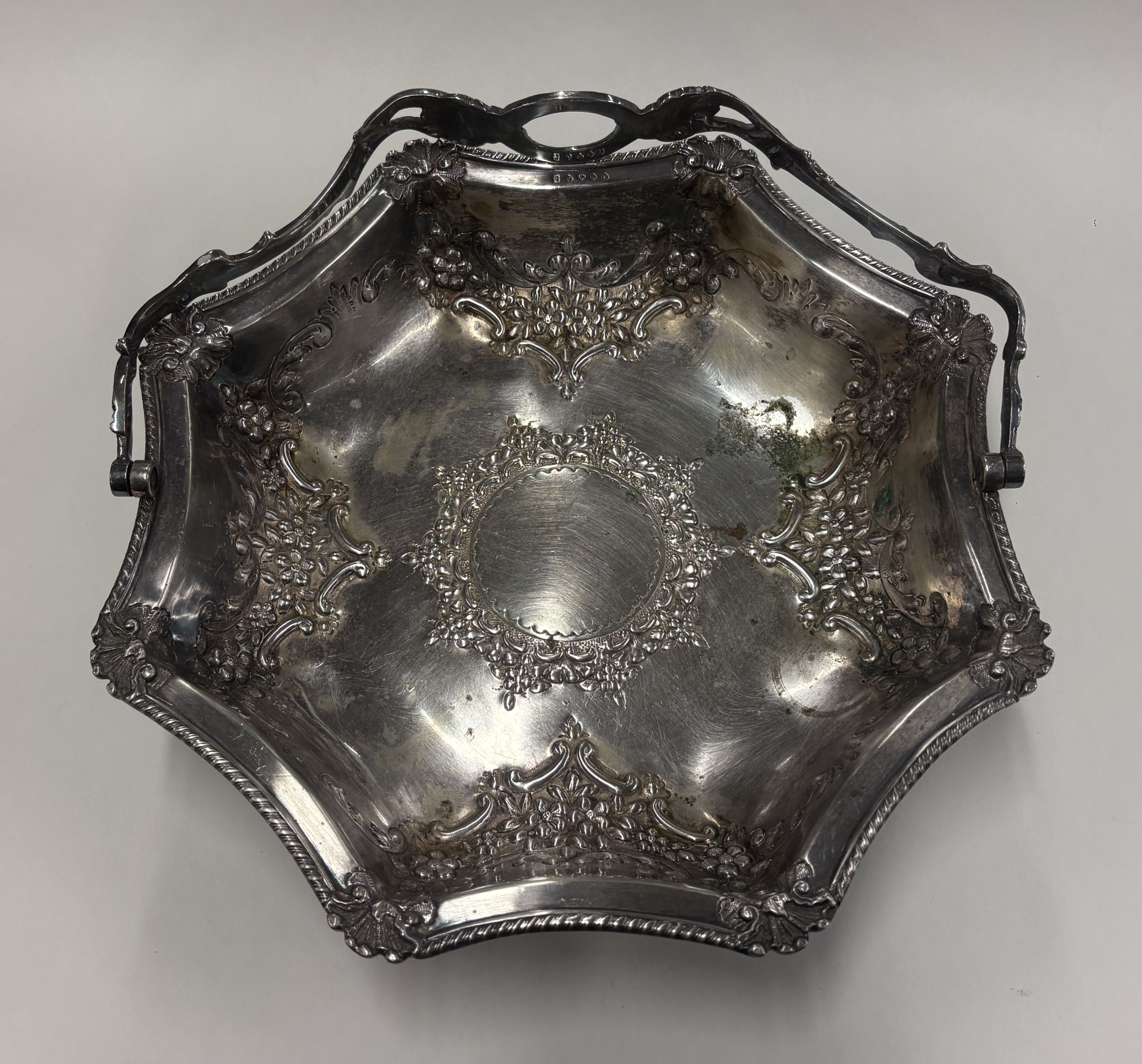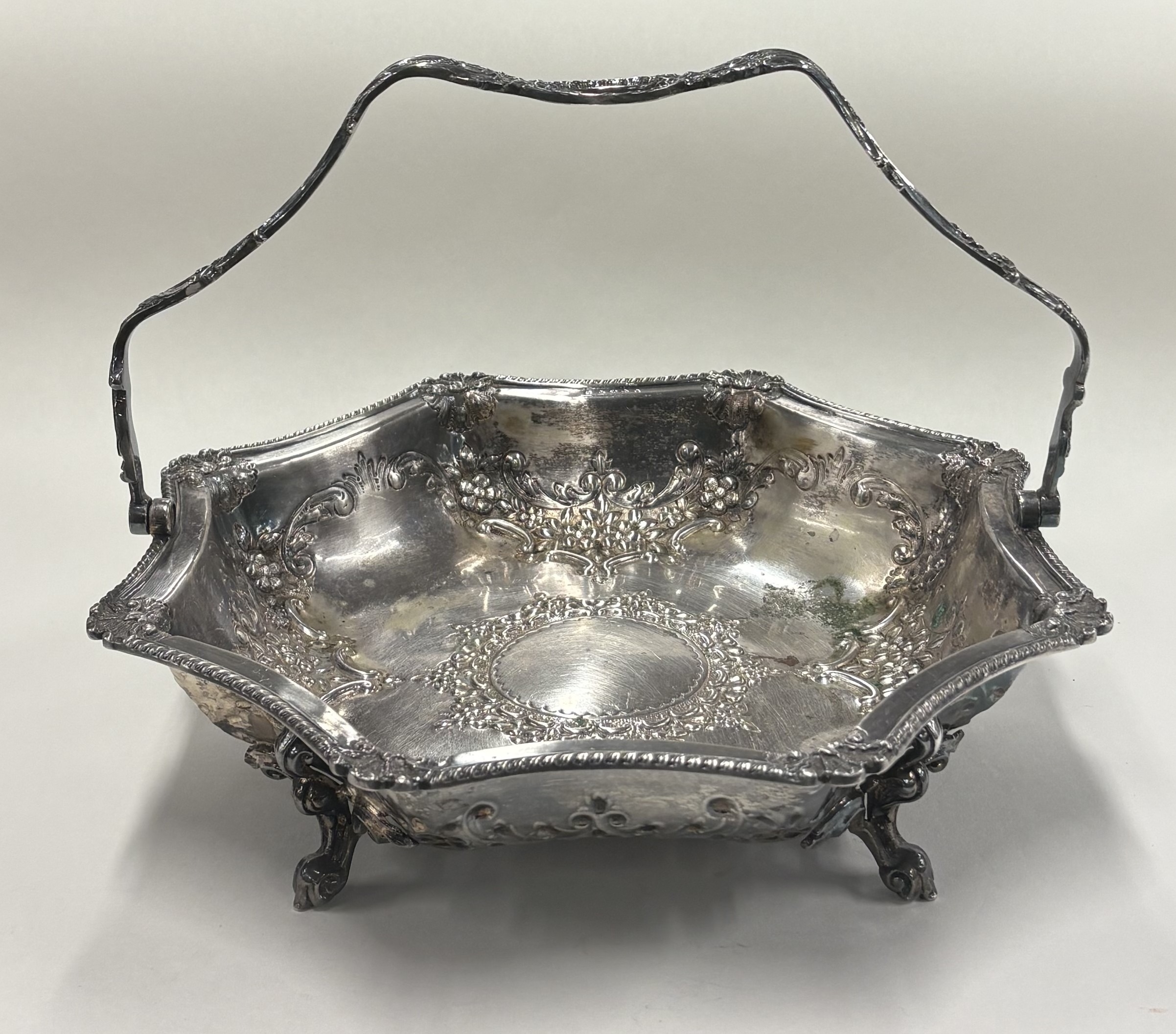 A silver-plated swing-handled basket. Est. £10 - £20.