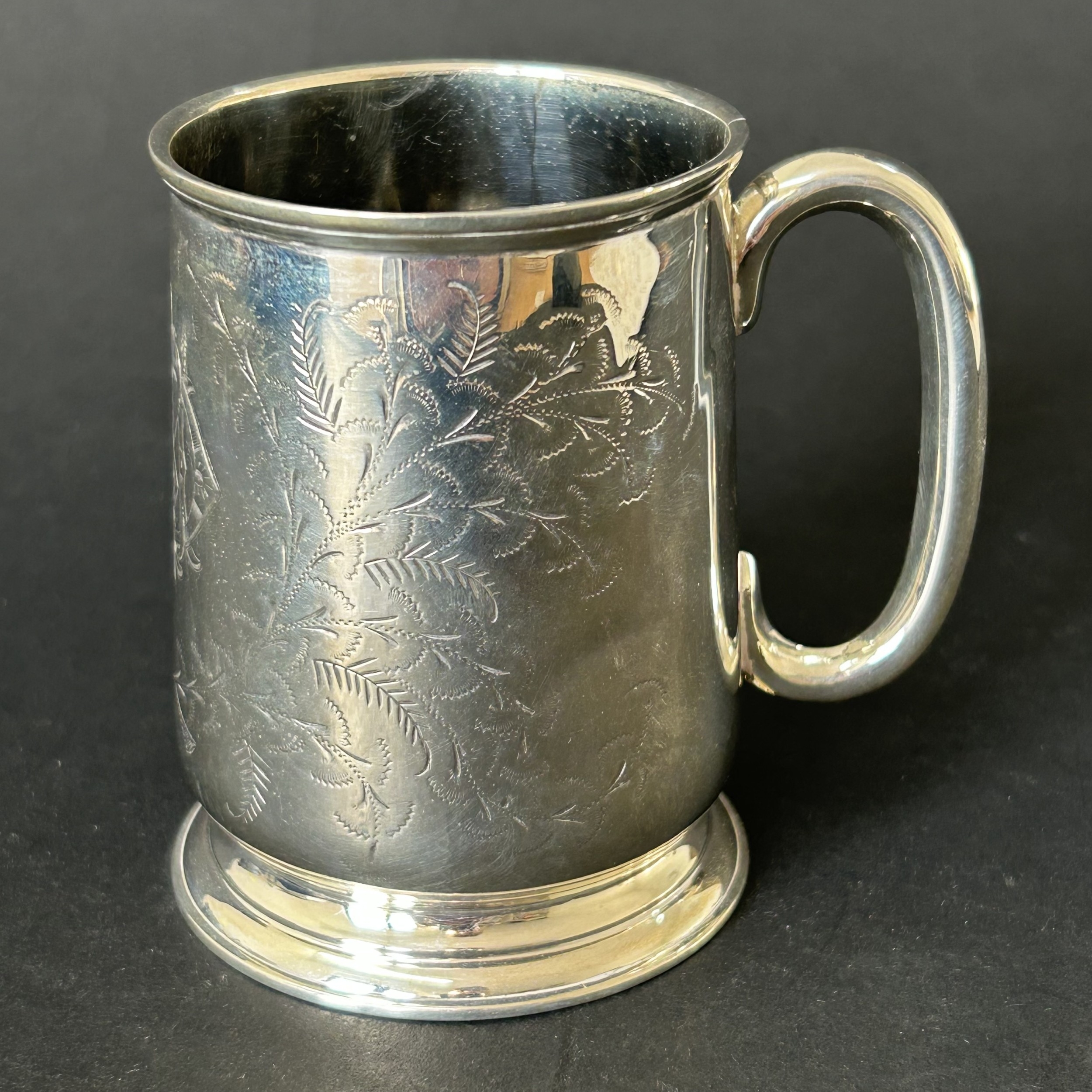 A hallmarked silver christening mug, just under approx. 3 1/2" tall, weight approx. 103g