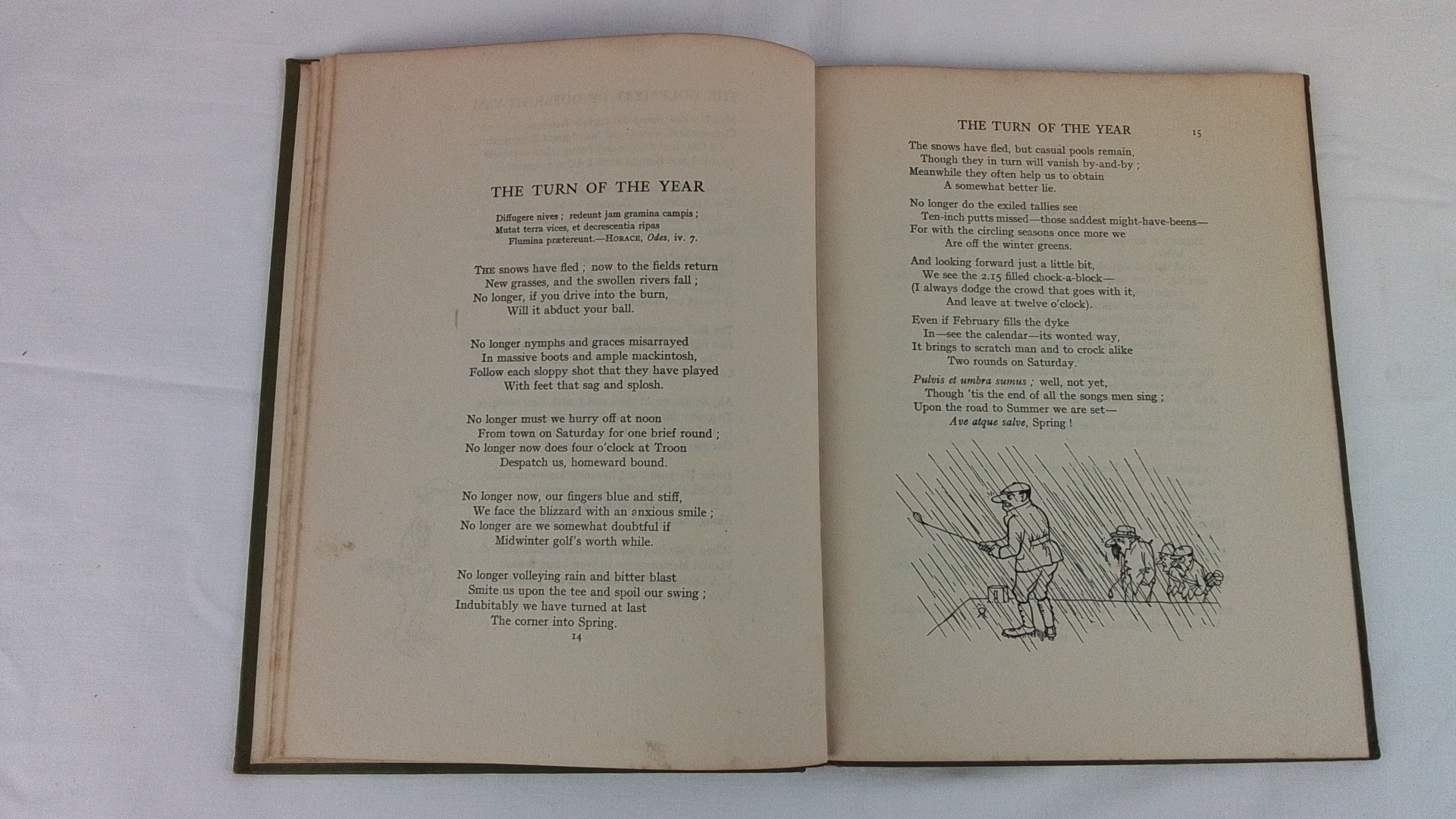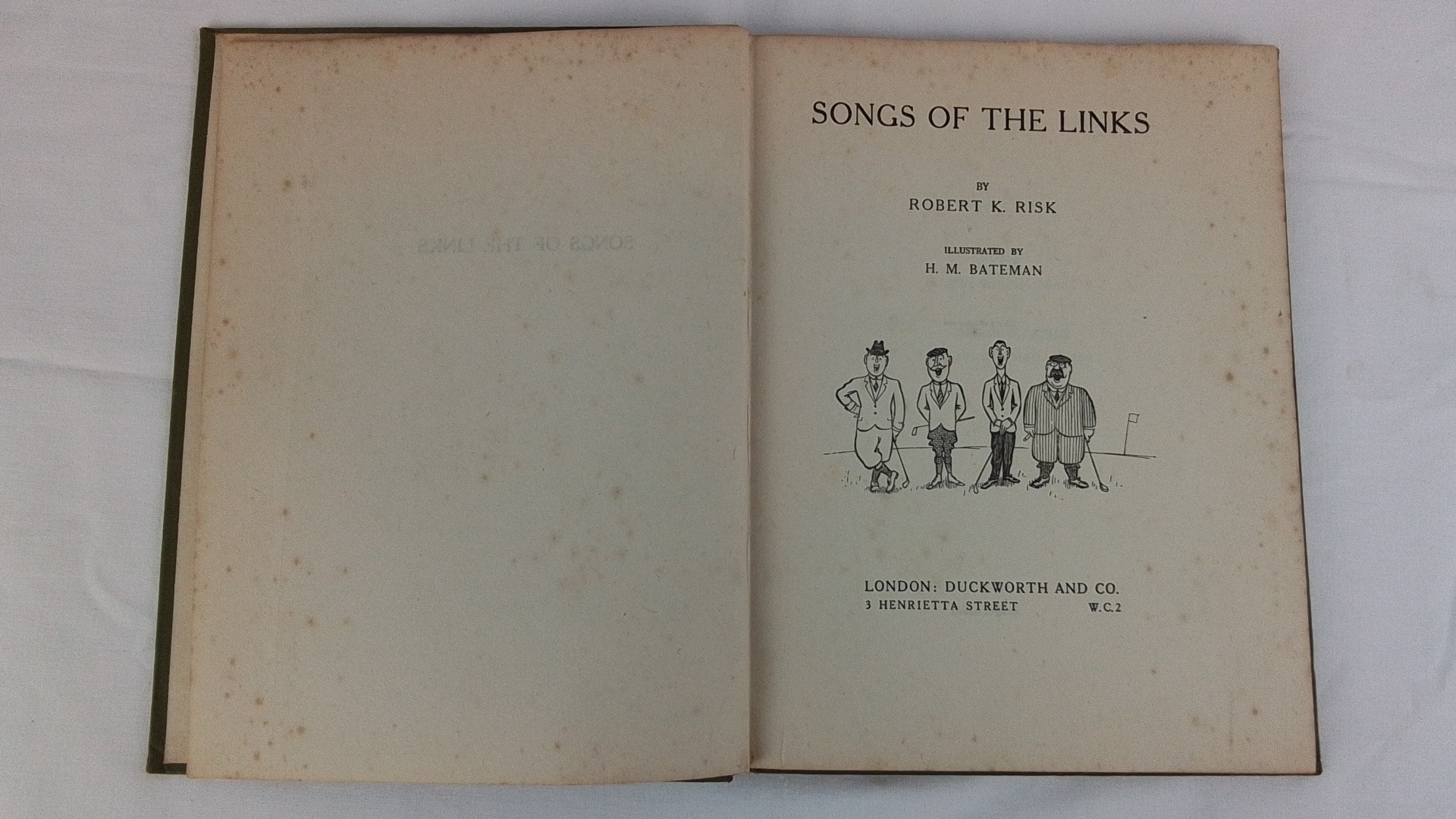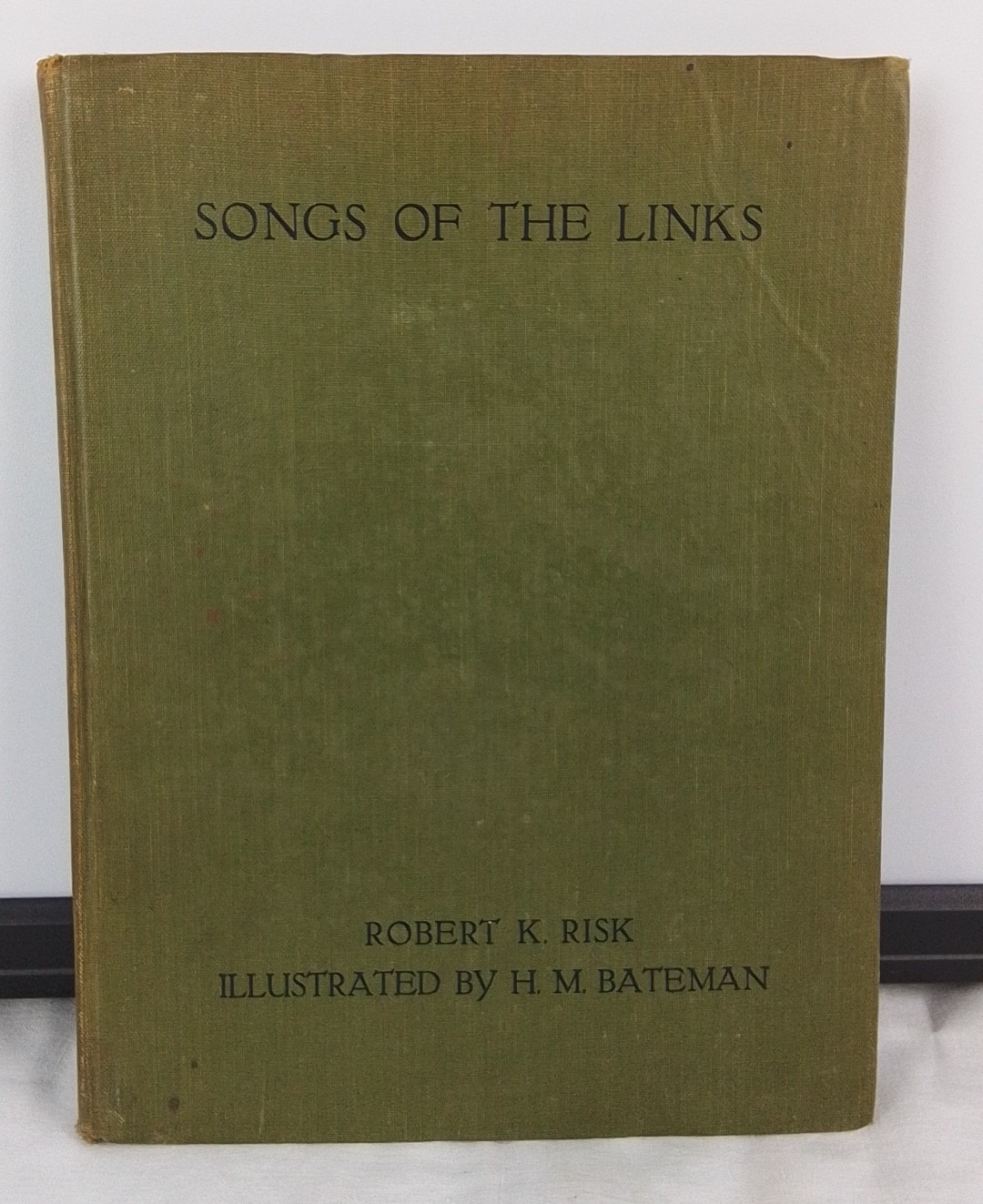 A copy of "Songs of the Links" by Robert K. Risk, illustrated by H. M. Bateman, published by Duckworth & Co., London; green cloth boards.
