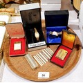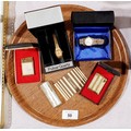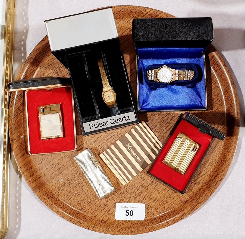 A boxed Kingsway lady's lighter inlaid with mother of pearl, other lighters and watches. UK shipping £14.