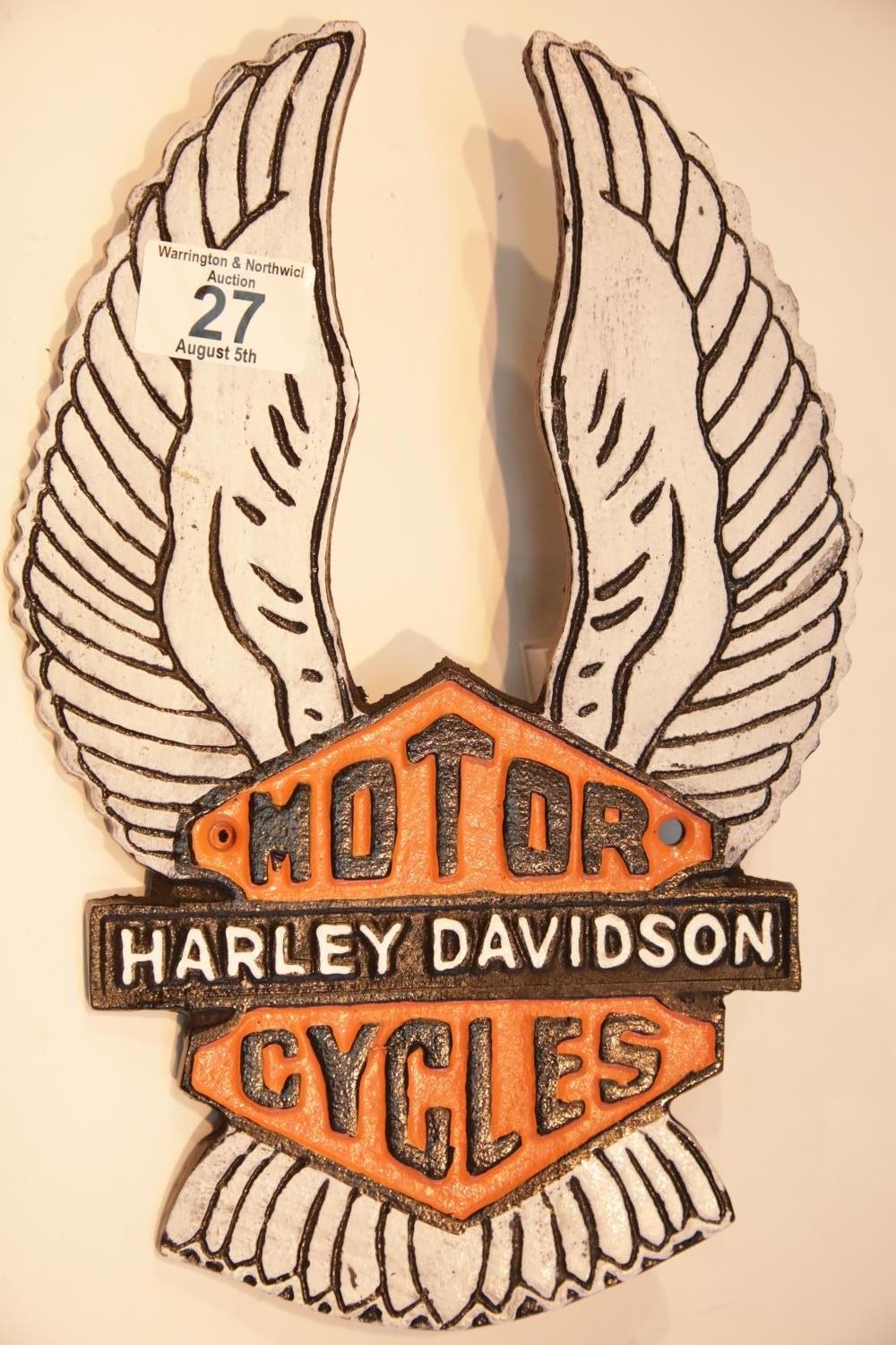 Cast iron Harley Davidson wings sign, 29 x 20 cm. P&P Group 2 (£18+VAT for the first lot and £2+VAT for subsequent lots)