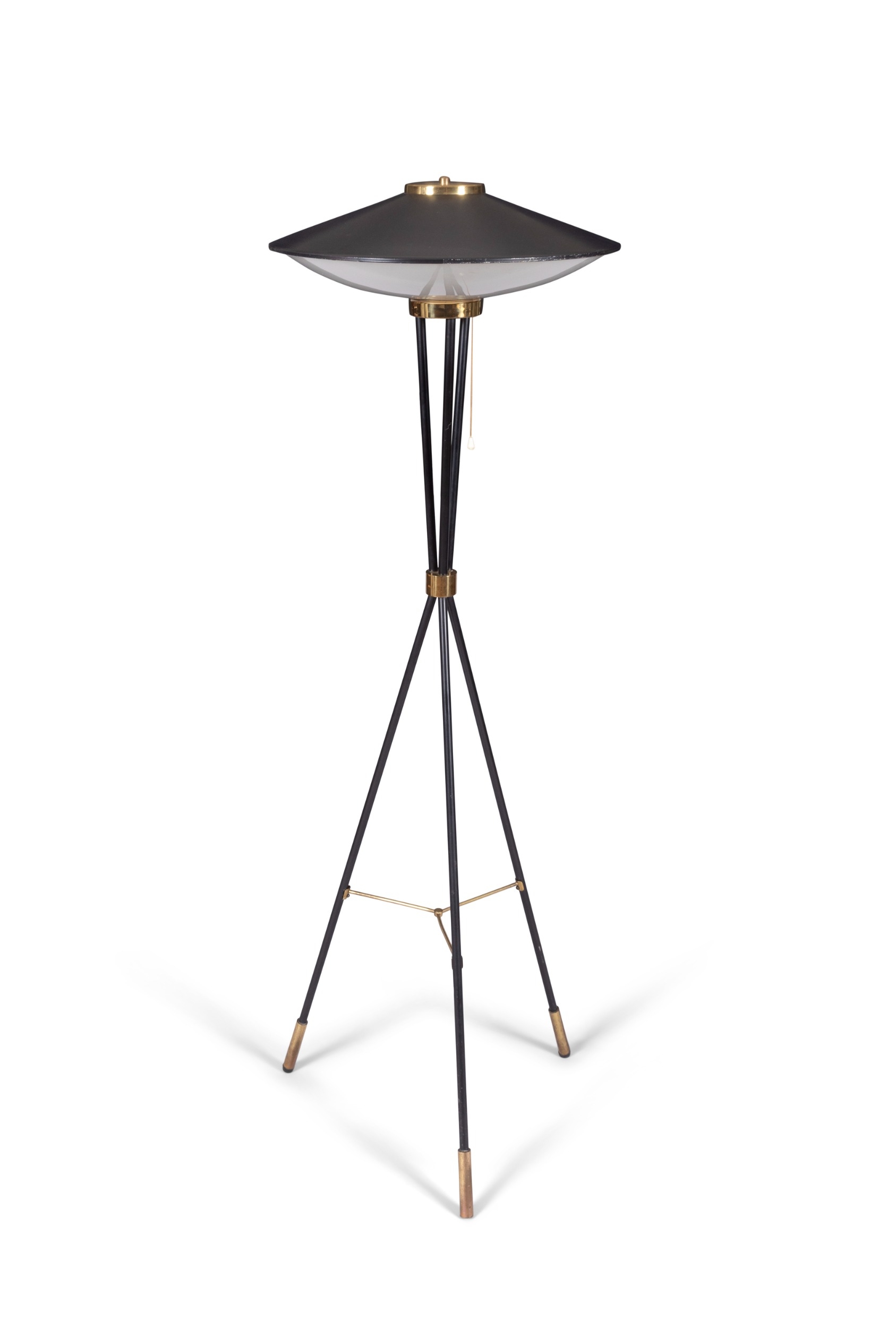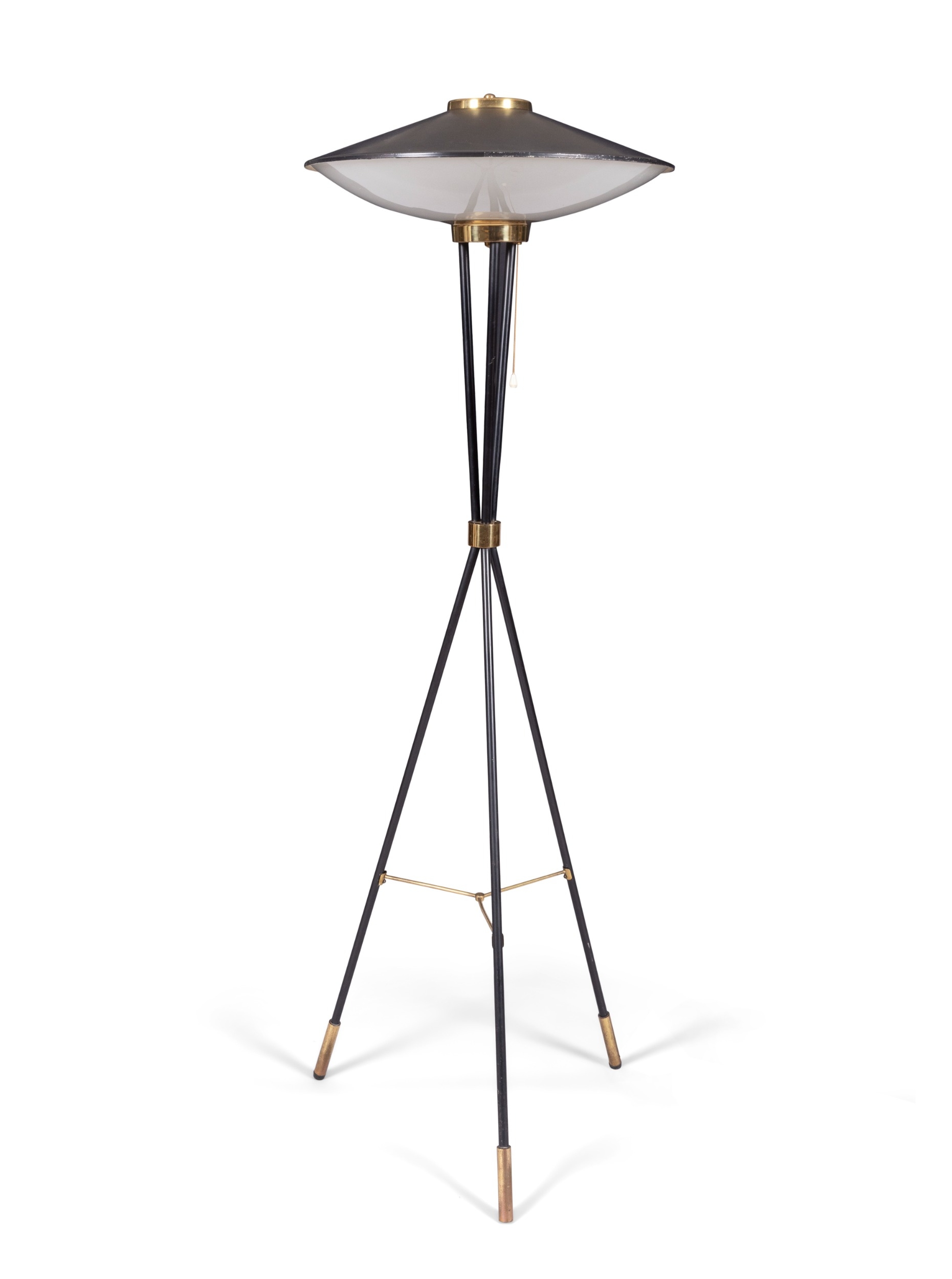 STILNOVO LAMP A brass and black enamel floor lamp by Stilnovo. Italy, c.1960, 150cm (h)