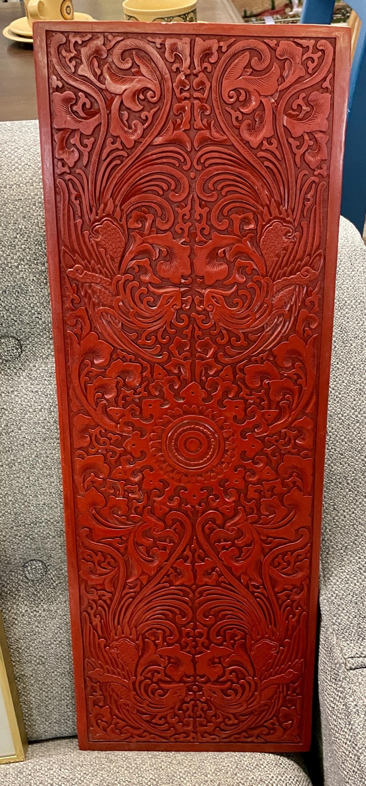 A LARGE CHINESE CINNABAR LACQUER PANEL - MID 20TH C. APPROX 60X21CMS