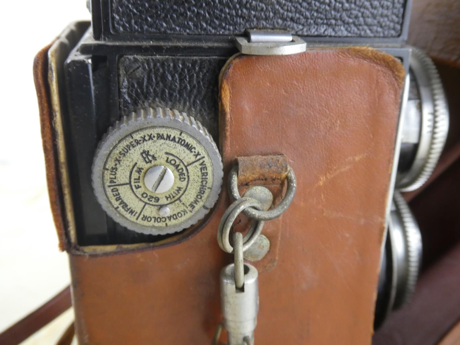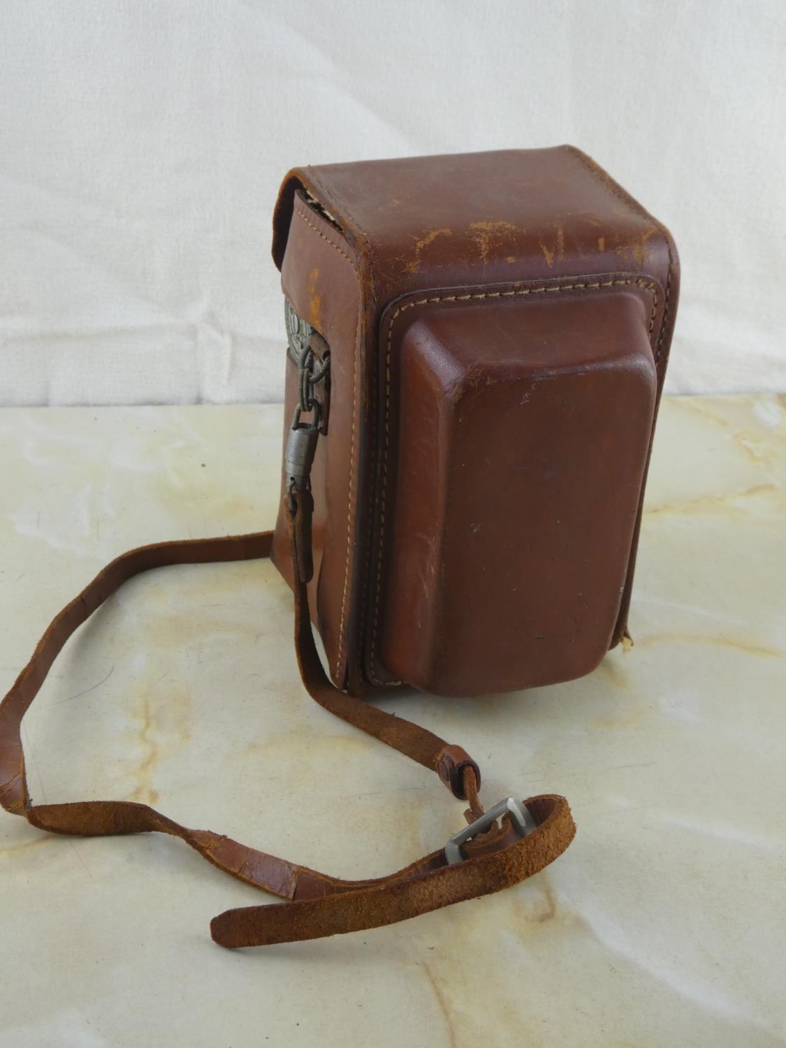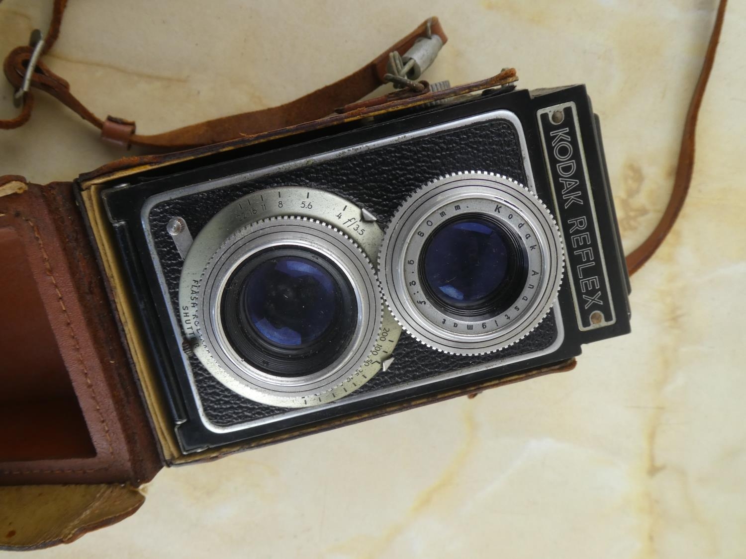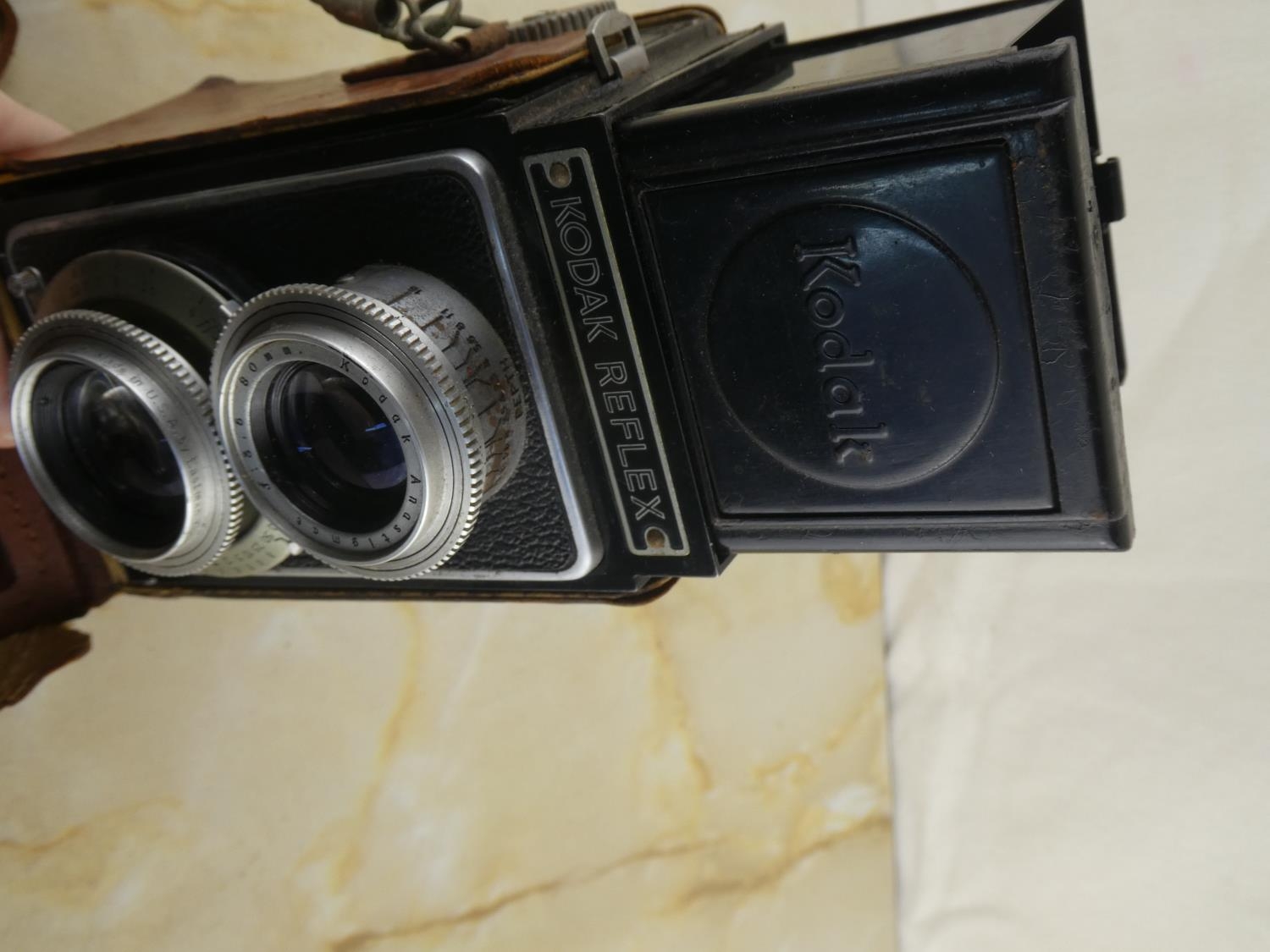 A vintage Kodak Reflex camera in leather case.
