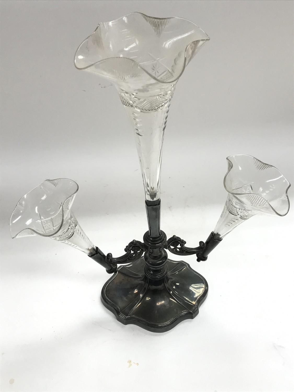 A Walker and Hall Sheffield silver plate glass epergne centrepiece.