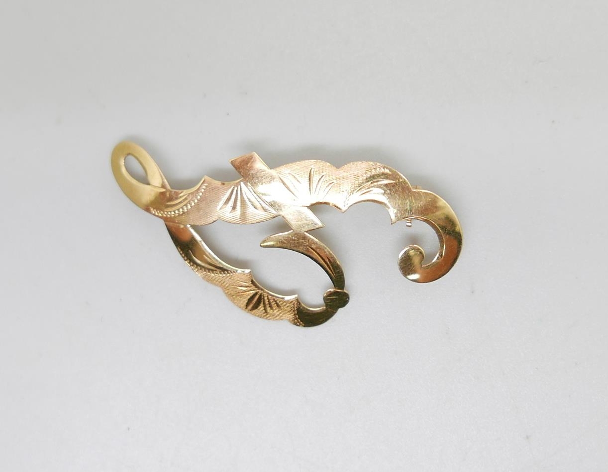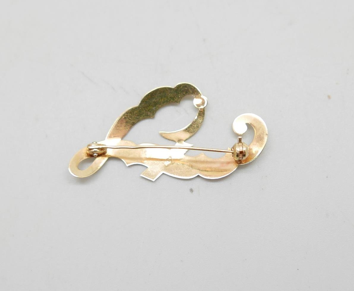 An 18ct gold brooch stamped 750, 4.3cm, 2.3g