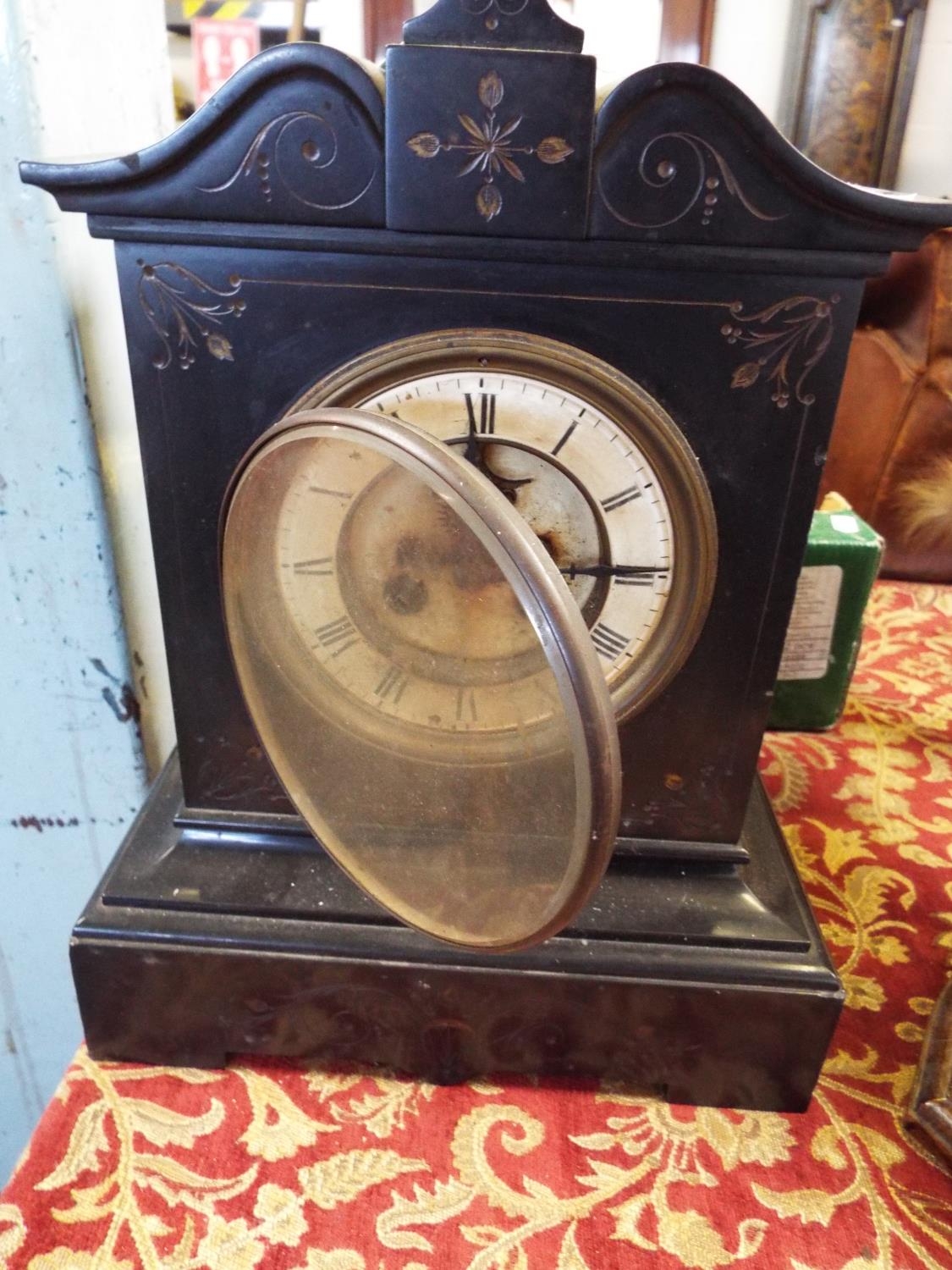 A Victorian slate mantel clock the dial having Roman numerals eight day movement for restoration