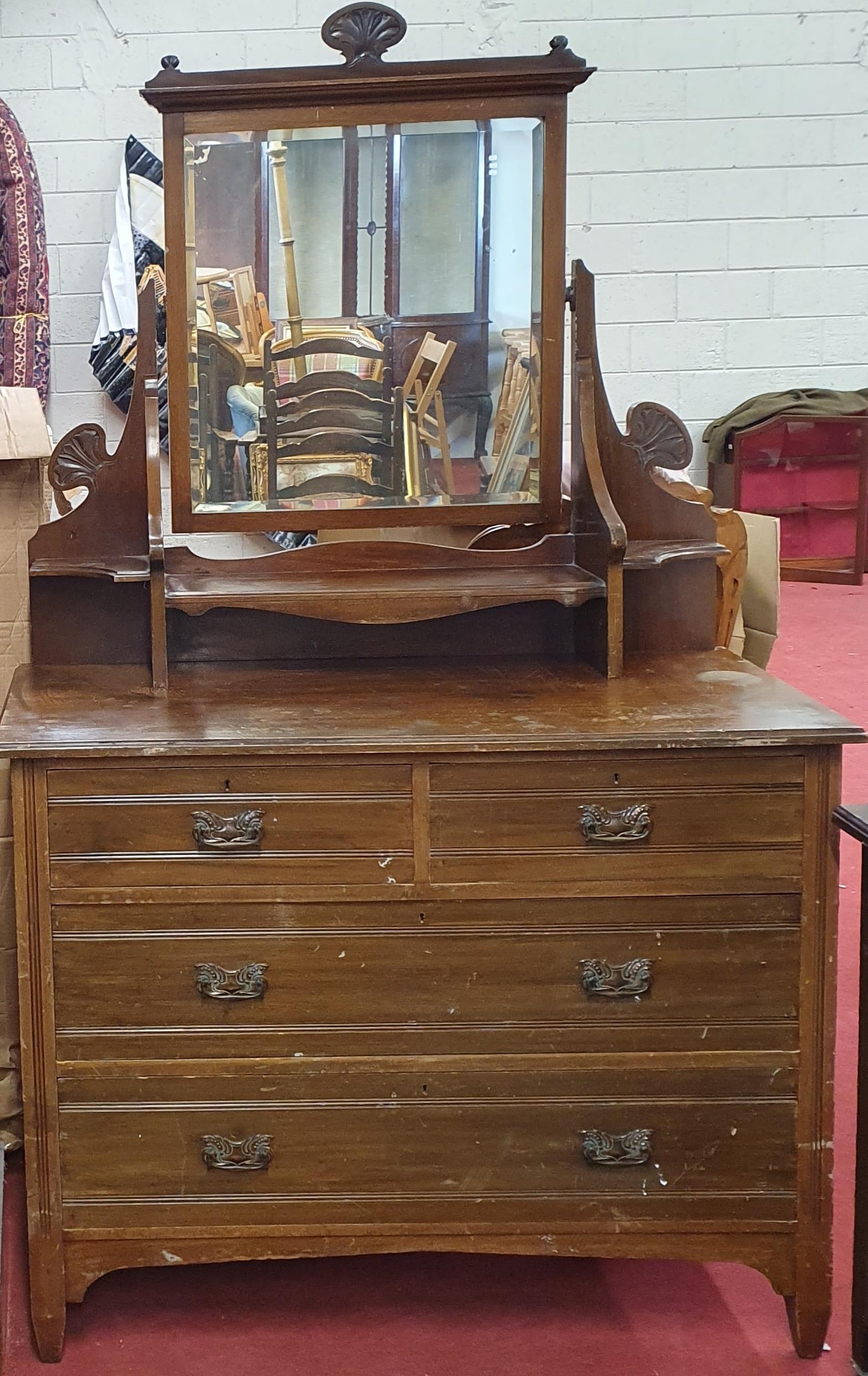 An early 20th Century Walnut Dressing Table.W 106 x D 51 x H 177 cm approx.