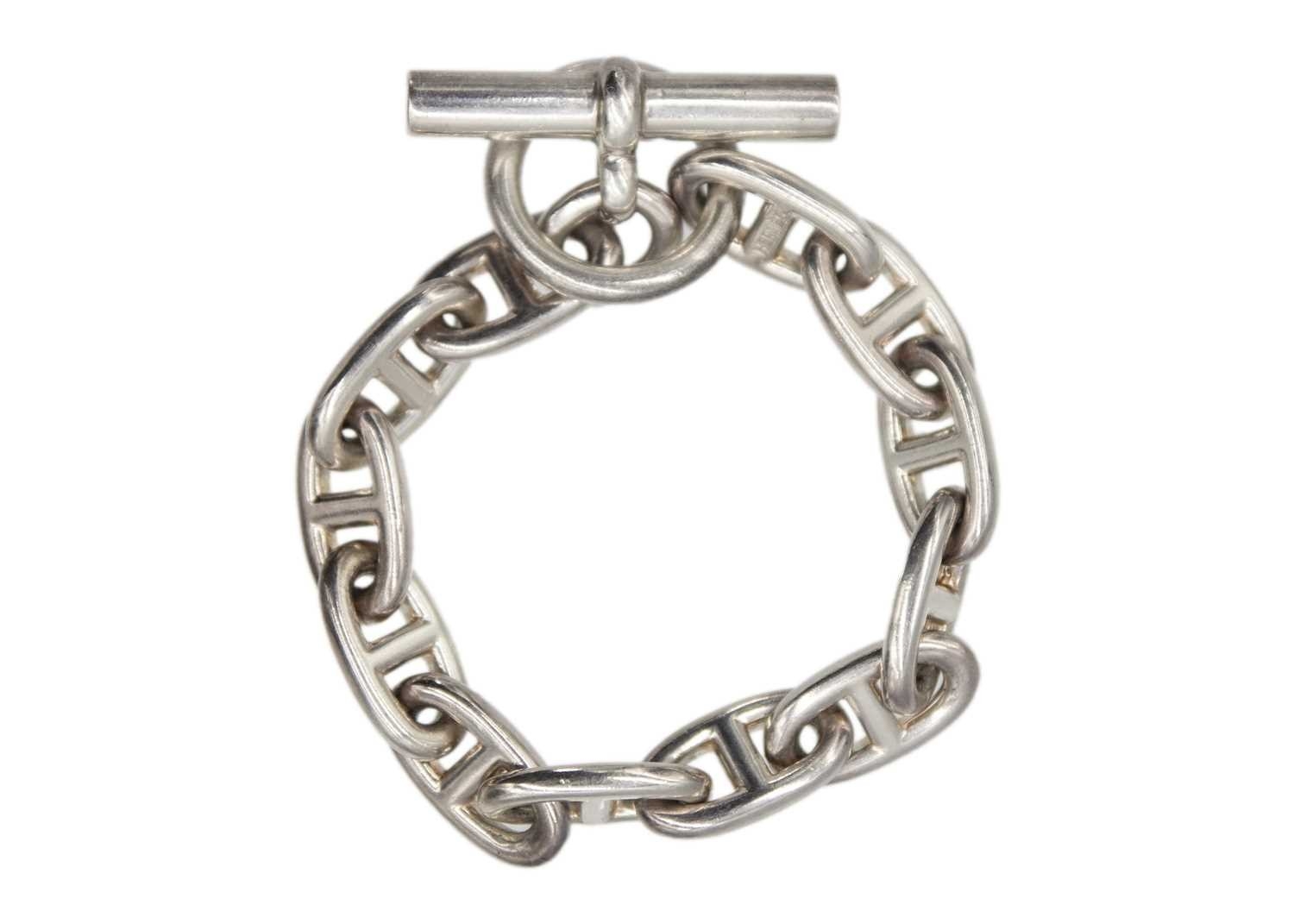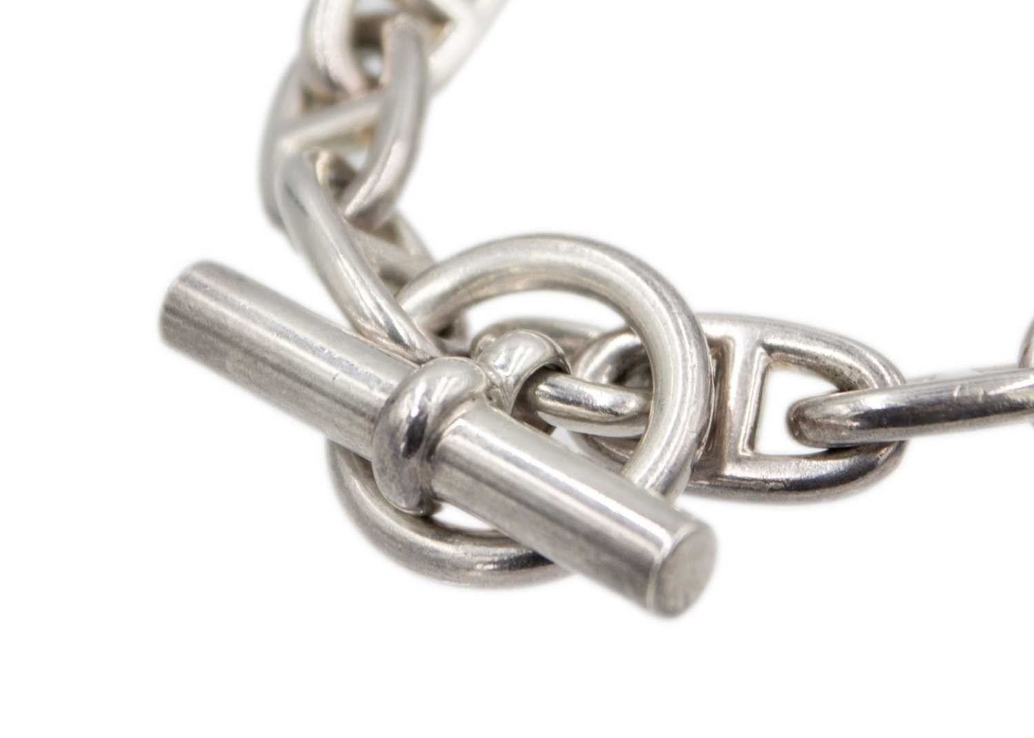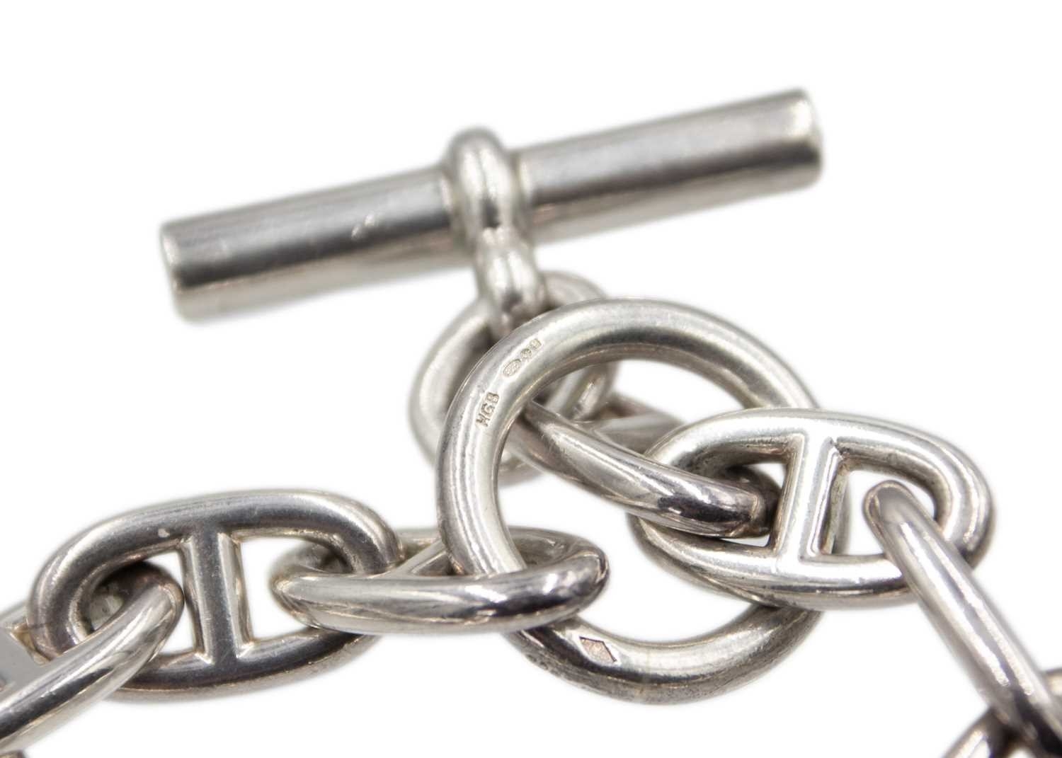 HERMES silver mariner link bracelet. Stamped HGB, HERMES, 925, length 7.5", weight 71.34g.