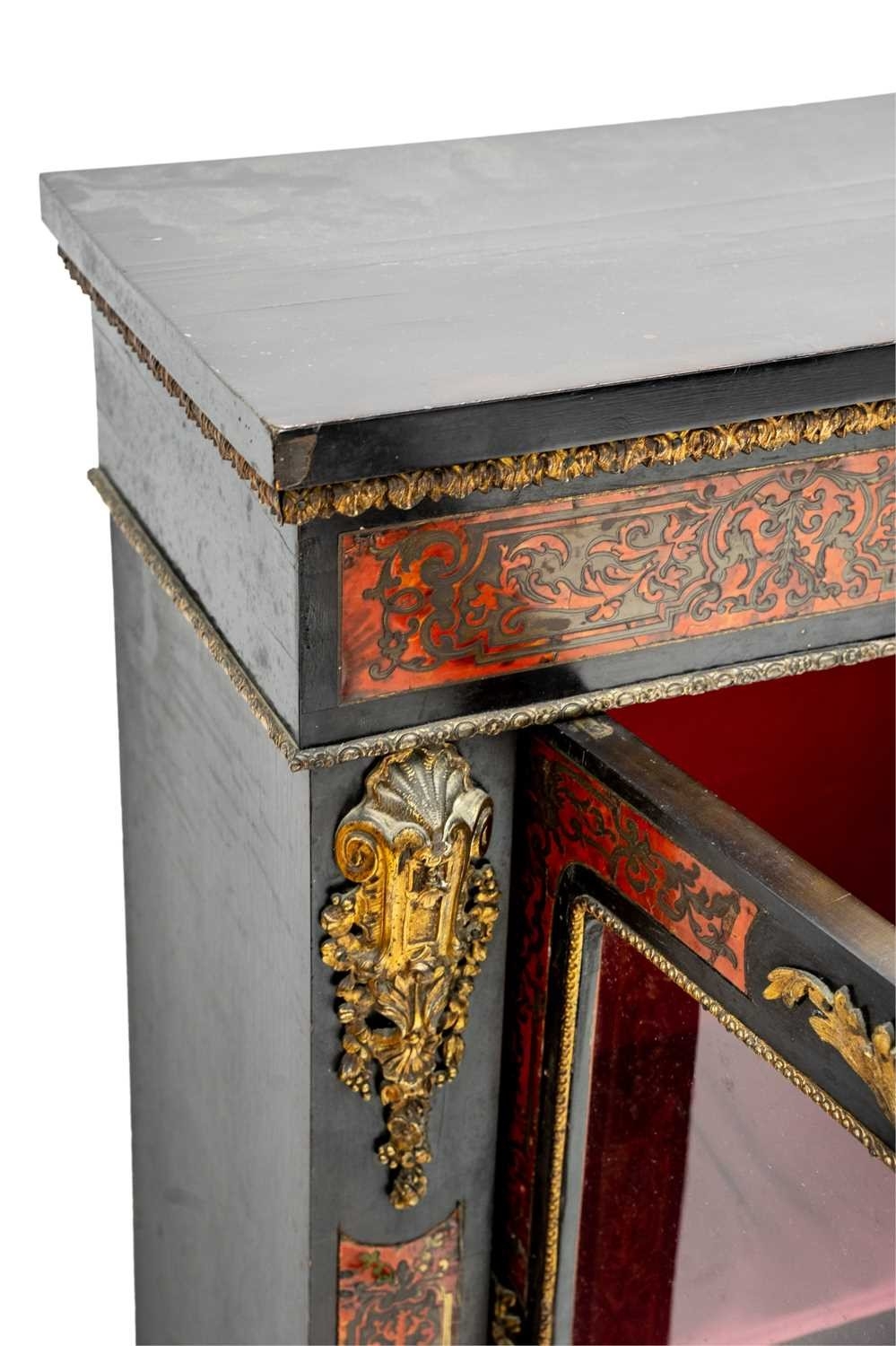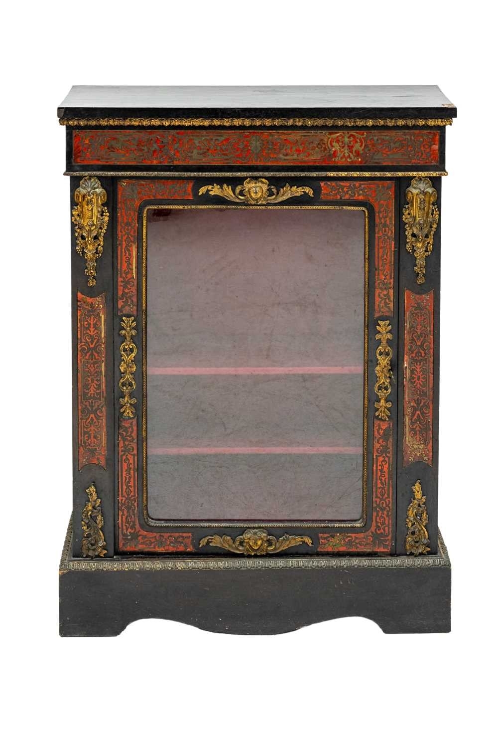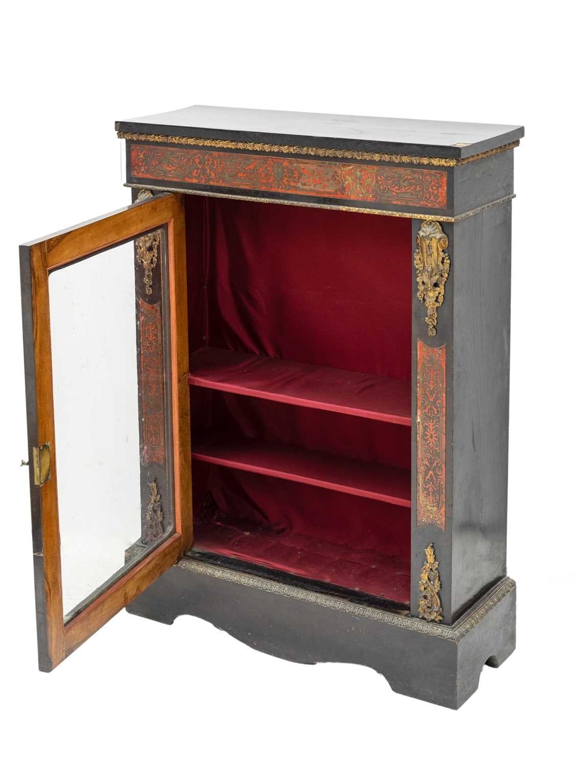 A French brass inlaid Boulle style side cabinet. 19th century, with a glazed door and applied brass mounts, height 114cm, width 84cm, depth 30cm.