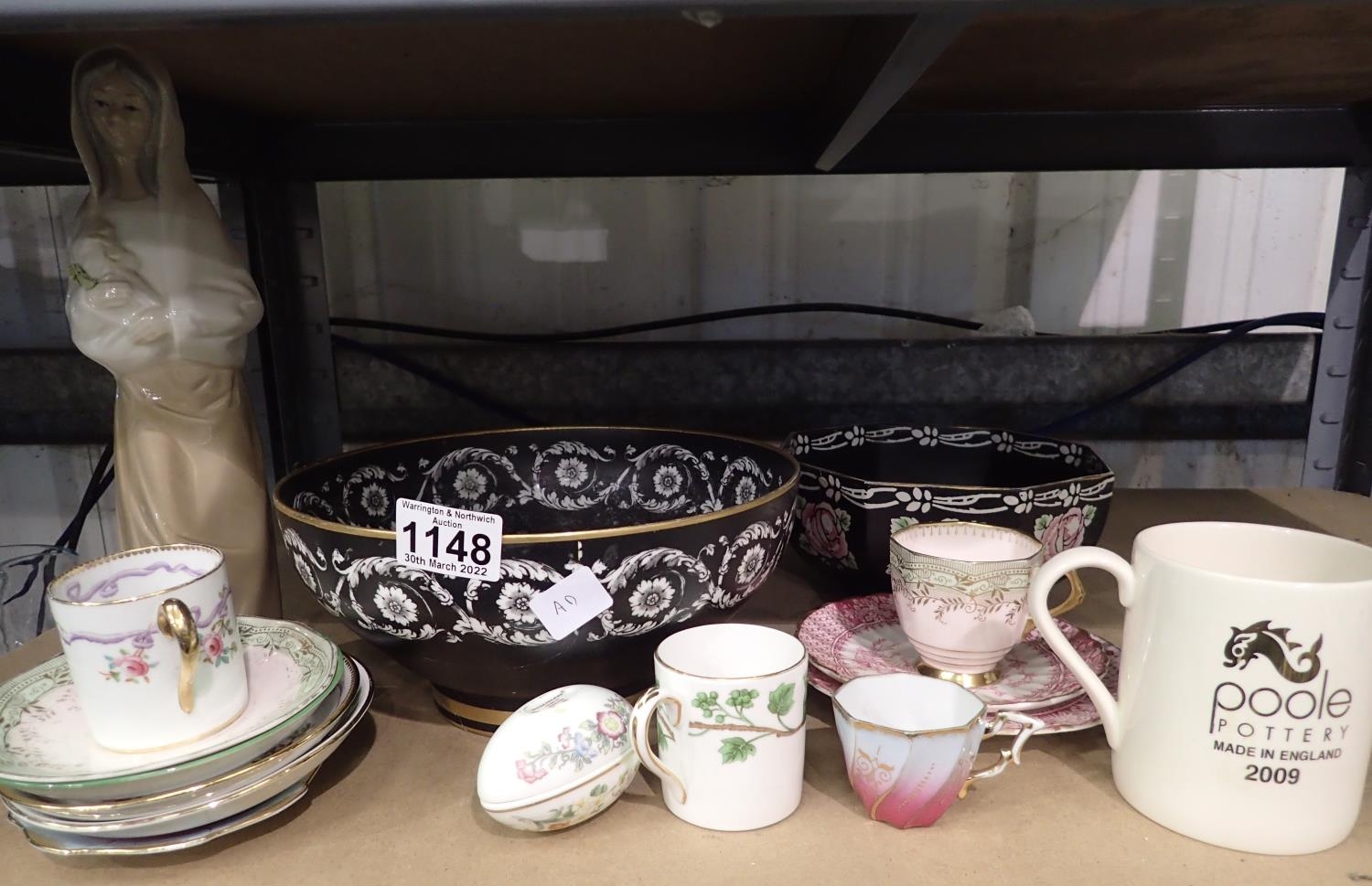 Shelf of mixed ceramics including Shelley bowl, D: 18 cm, wi...