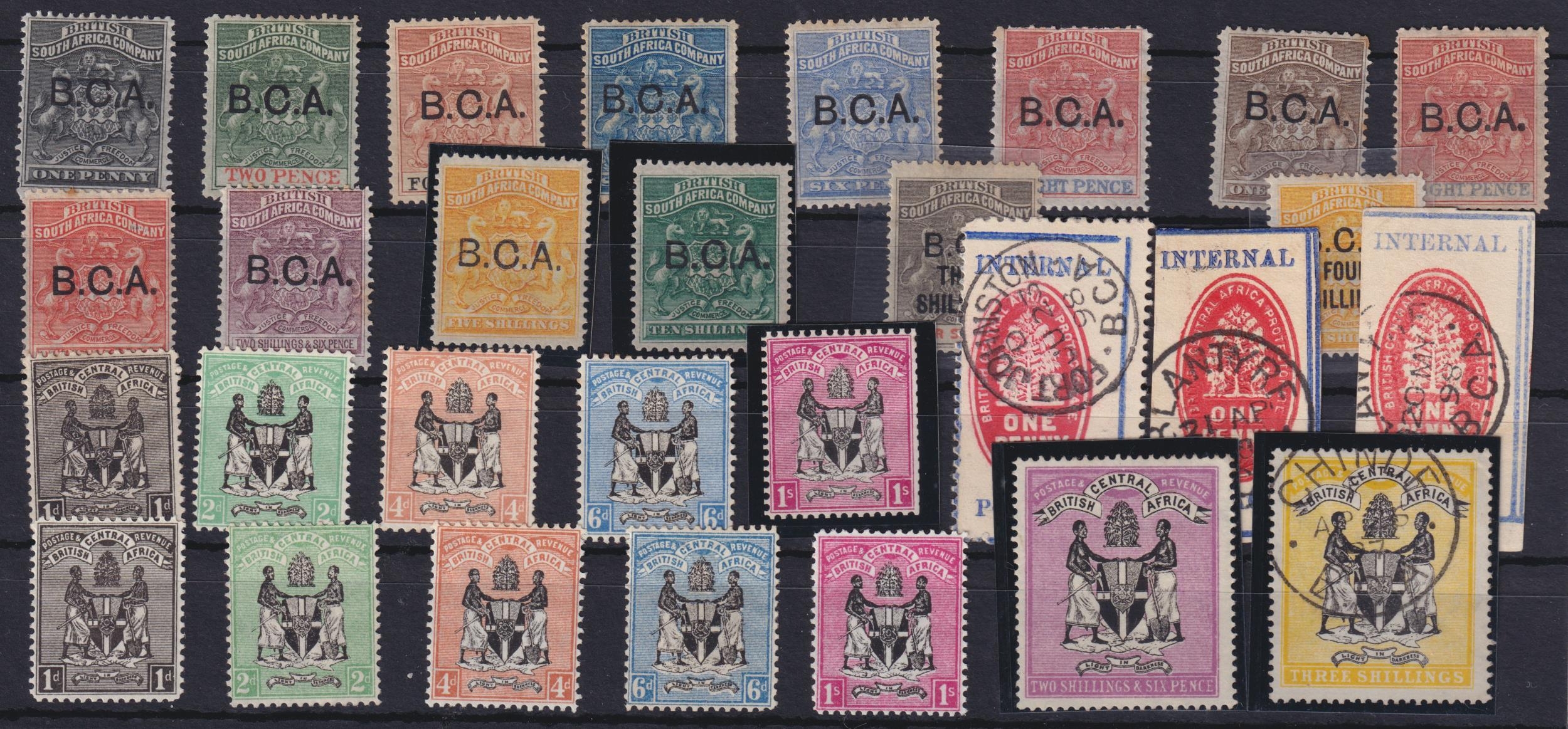 1891/8 small mint range (with a few used) with ‘B.C.A.’ 1d to 2/6d plus 5/- and 10/-, 1892 3/- on 4/- and 4/- on 5/-, 1895 2/6d etc.