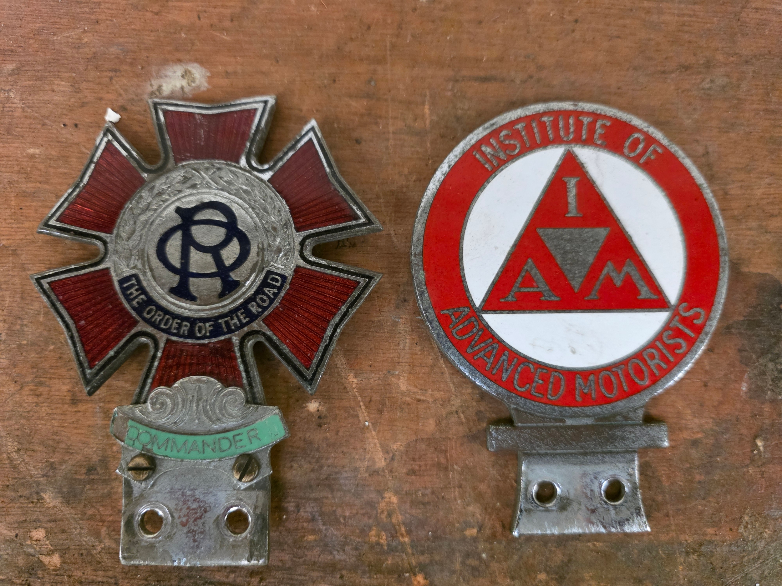 An The Order of the Road car badge, Commander level and a IAM car badge (2)