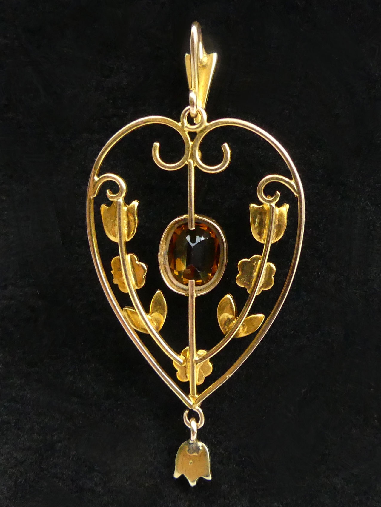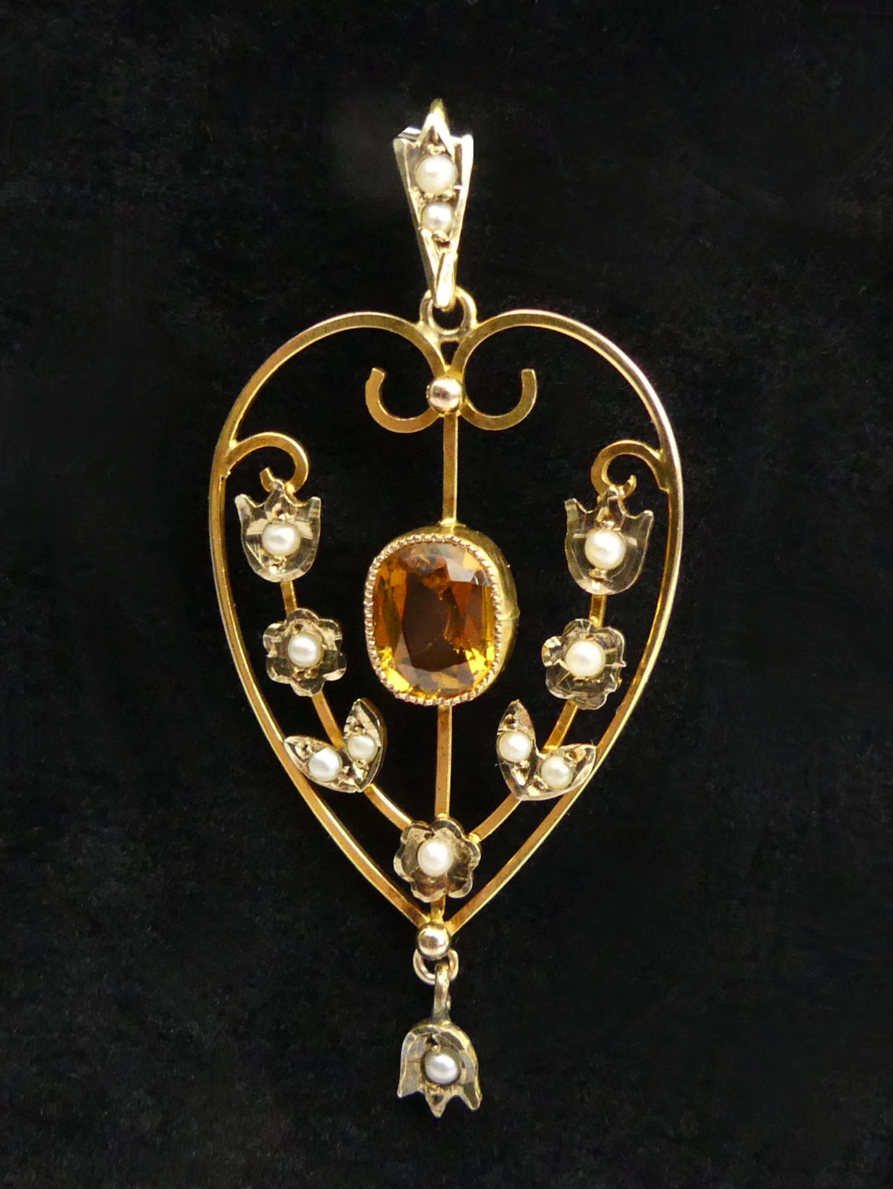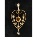 9ct gold citrine and seed pearl pendant, 2.8 grams,