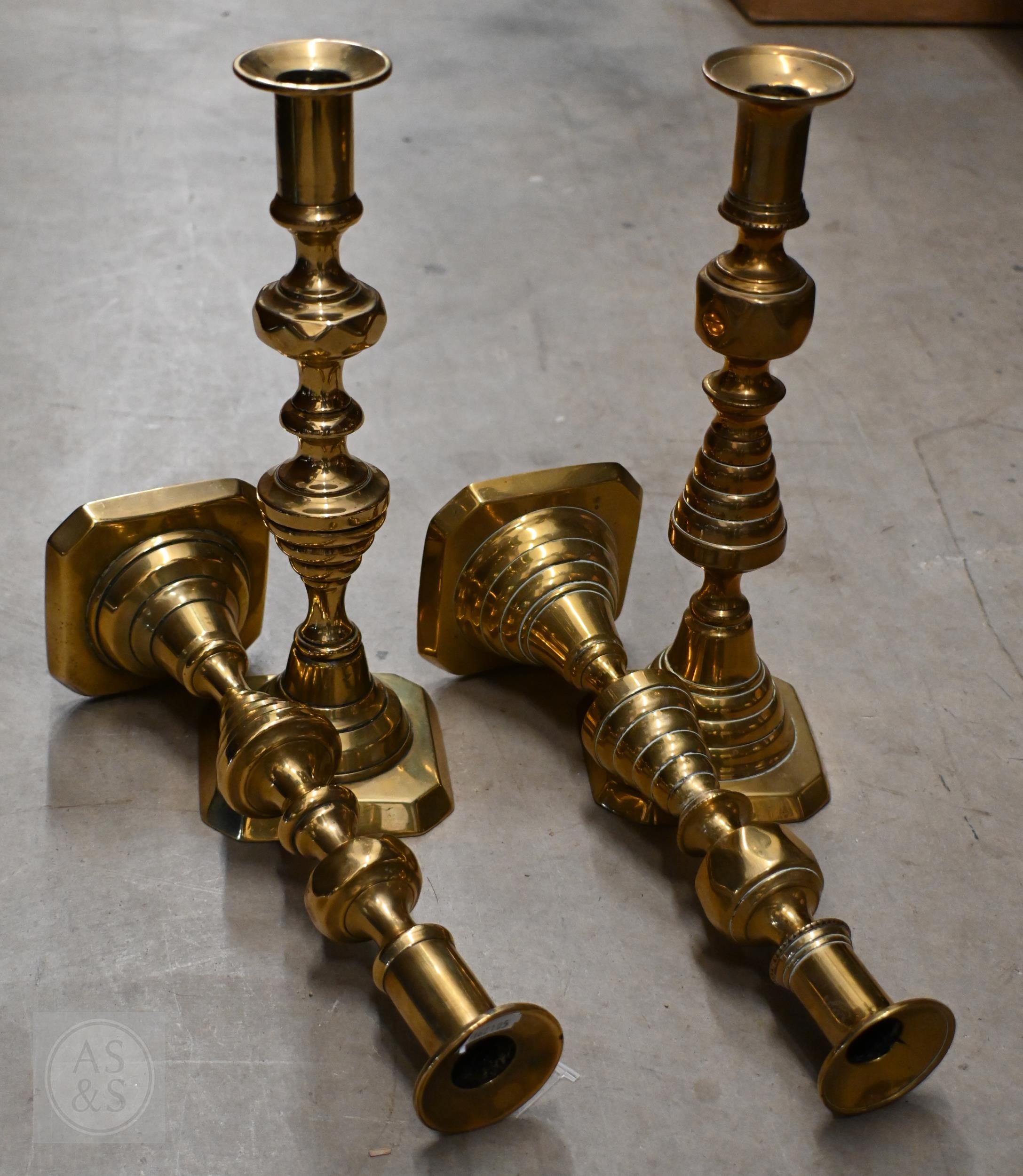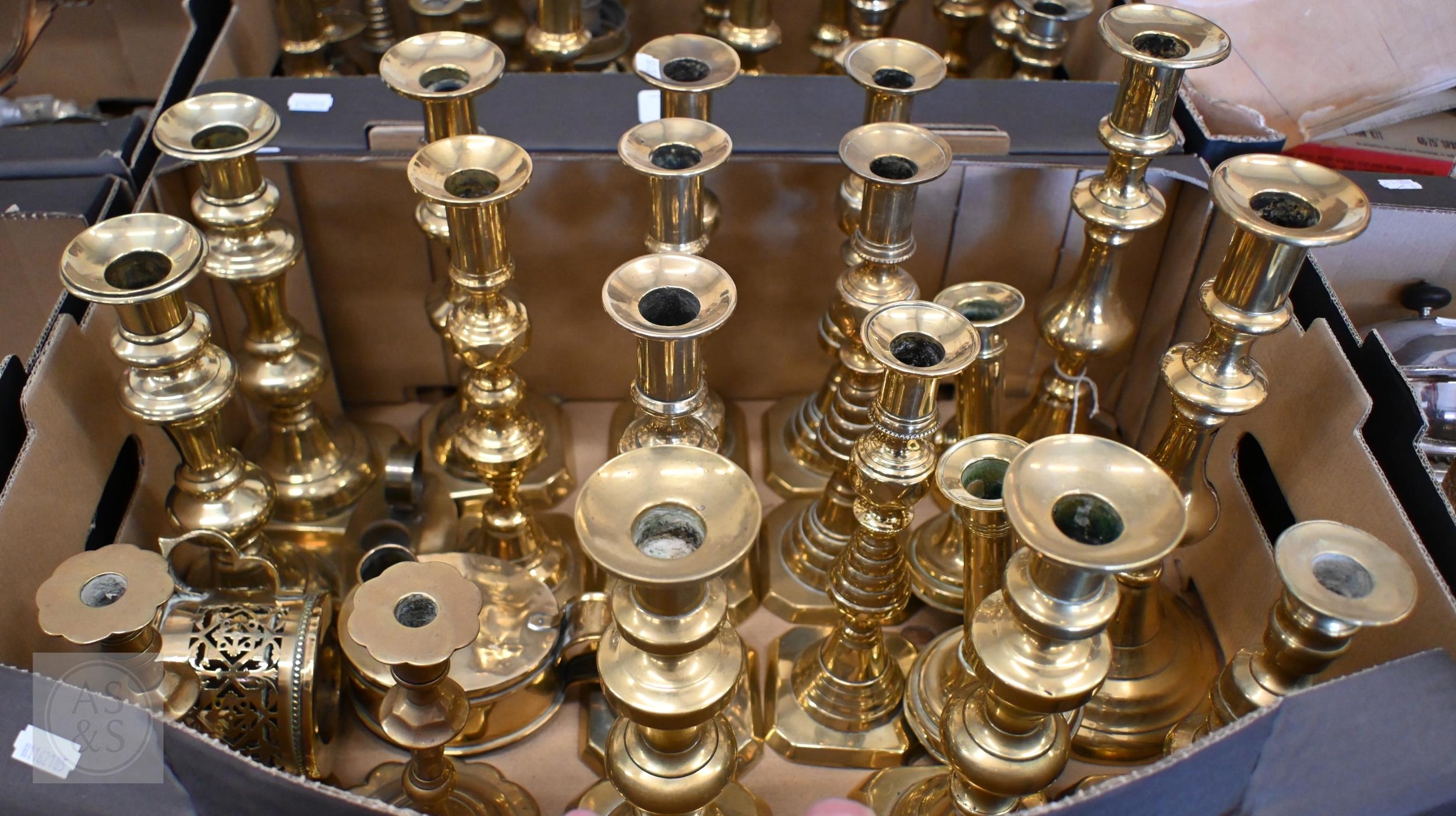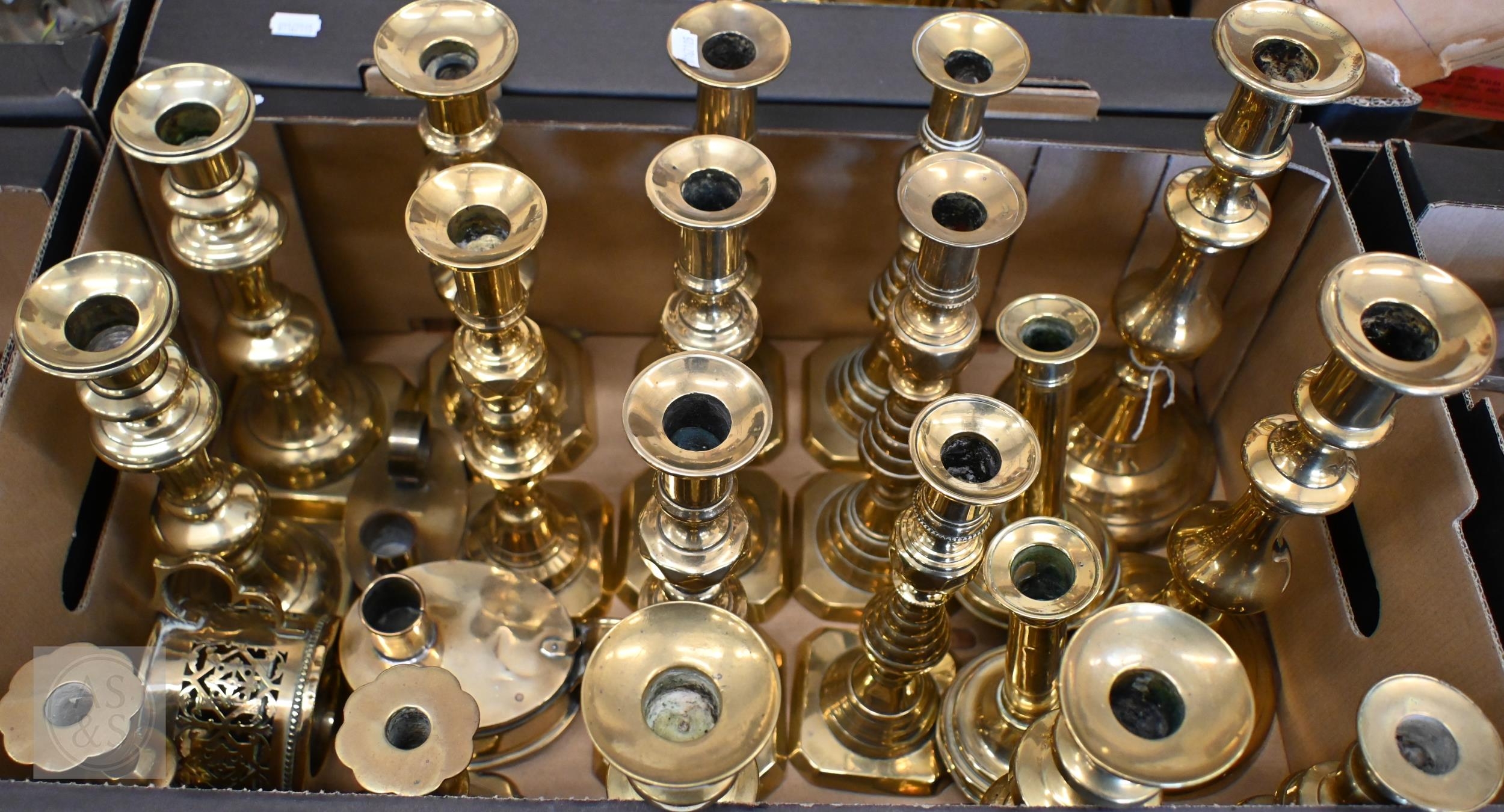 Twenty two various Victorian and later brass candlesticks (box)