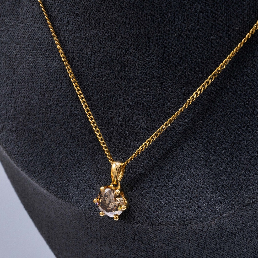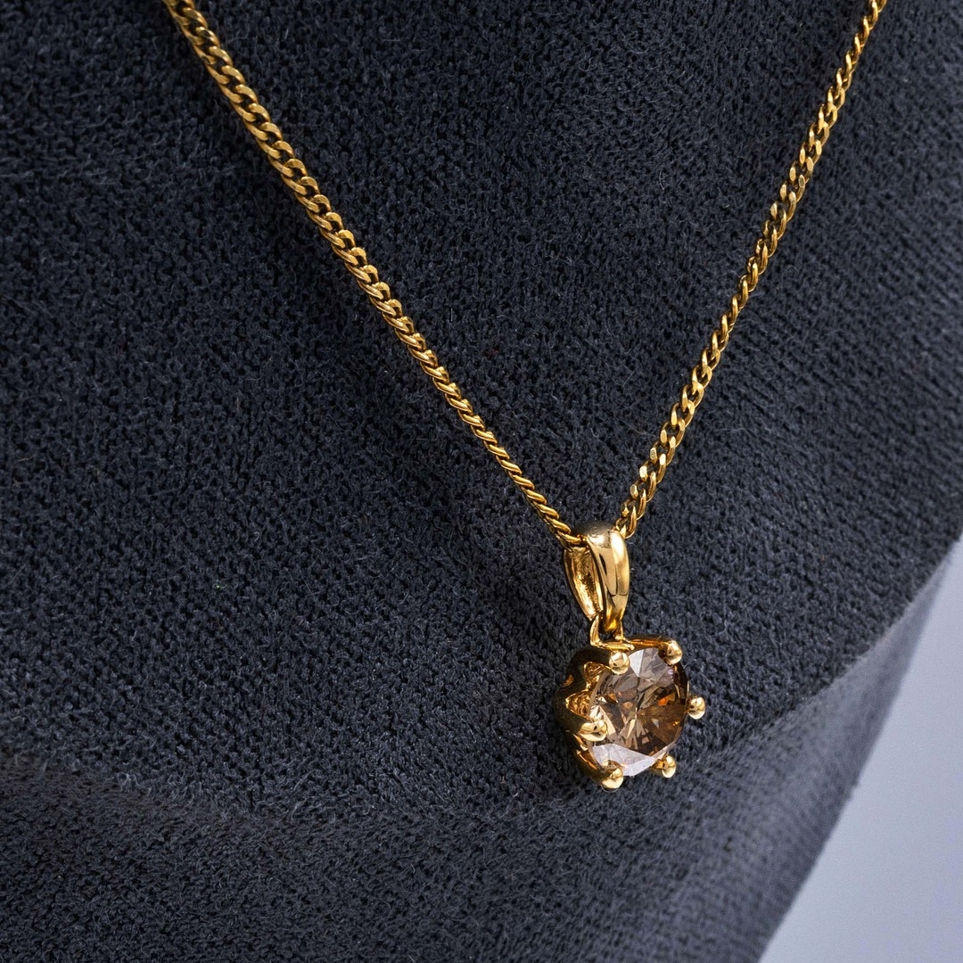 AN 18CT YELLOW GOLD DIAMOND SOLITAIRE PENDANT NECKLACE. with a six-claw set round brilliant cut diamond solitaire pendant on a gold coated silver chain, Diamond 1.00ct. complete with box and certificate, no. WGI9624140509.