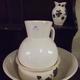 Four piece pottery jug and bowl set decorated with ivy leaves.