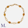 An Amber Bracelet in 9 carat yellow gold, comprising a series of alternating knotted style and cabochon amber set links. Marked 9K.