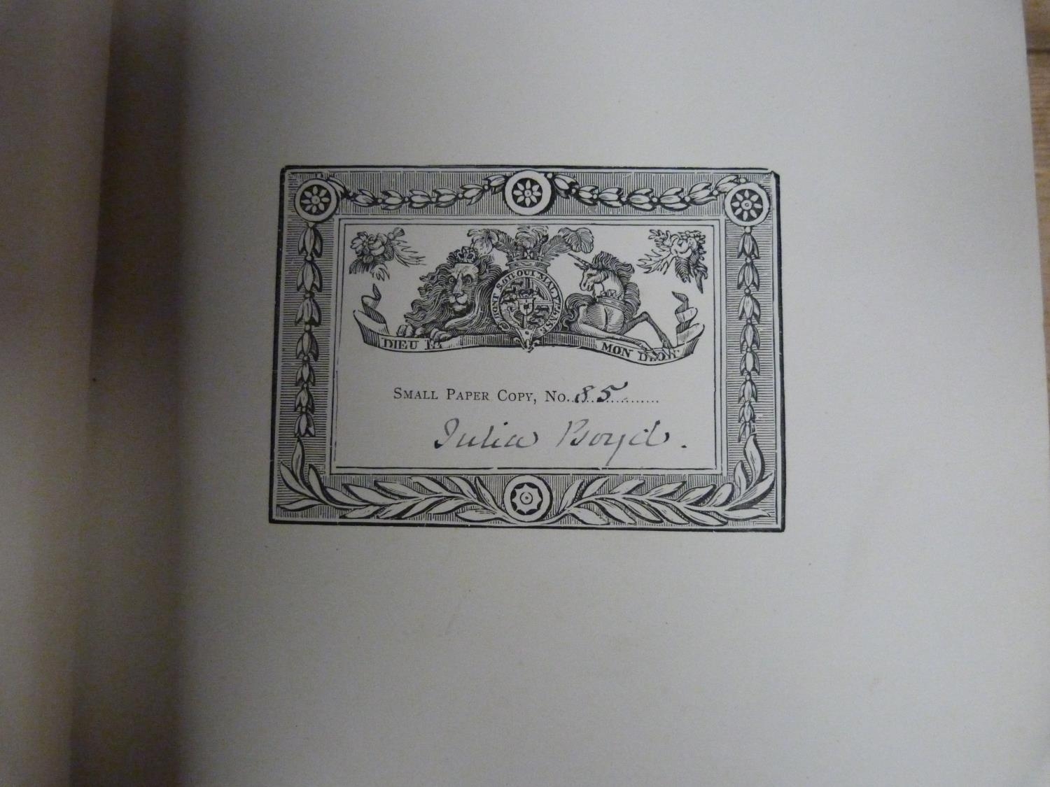 BOYD JULIA (Ed). Bewick Gleanings being Impressions from Copperplates & Wood Blocks Engraved in the Bewick Workshop. Signed Small Paper Copy No. 85. Port. frontis & very many plates & illus. Orig. dark morocco, rubbed. Newcastle, 1886.