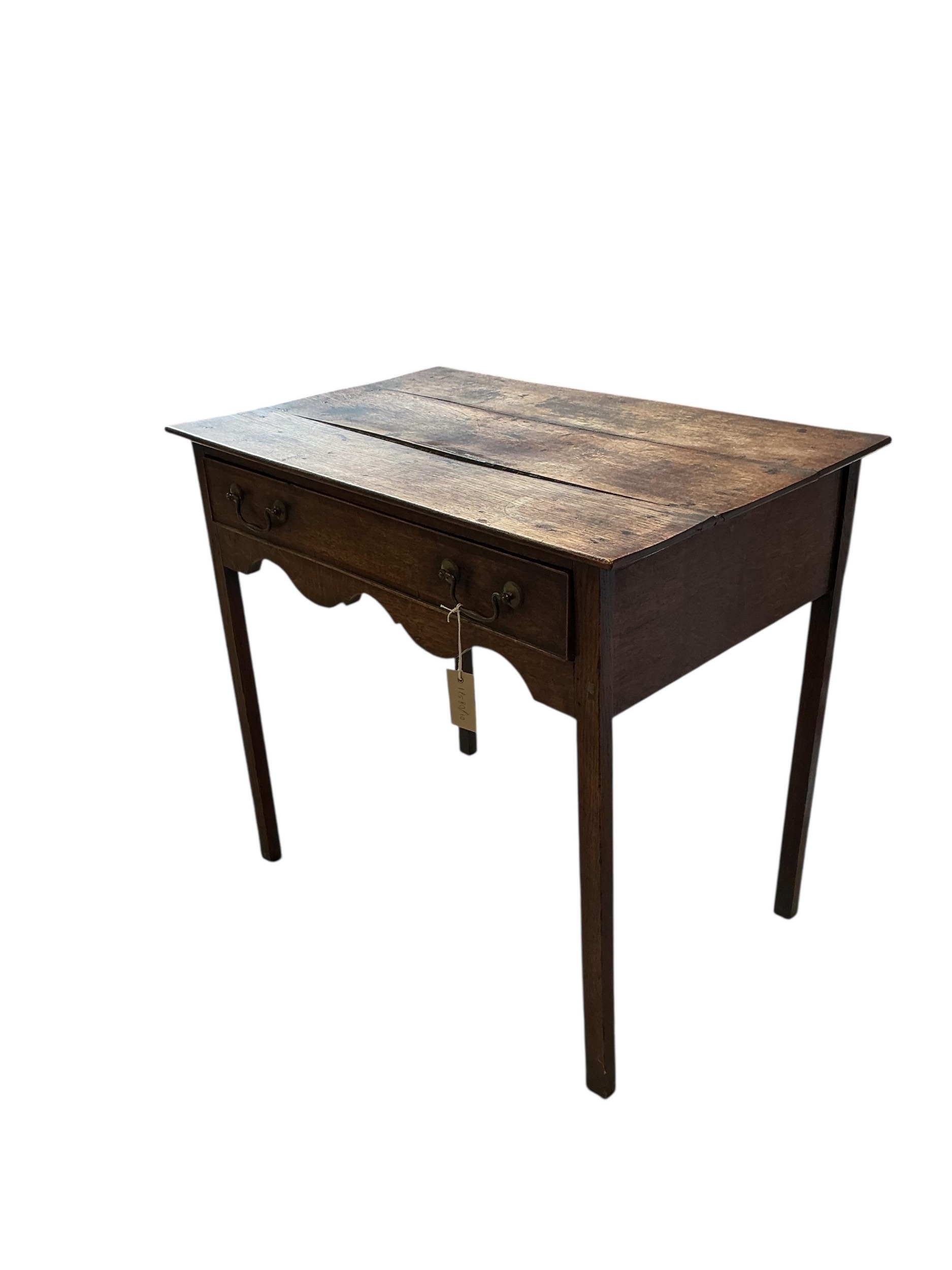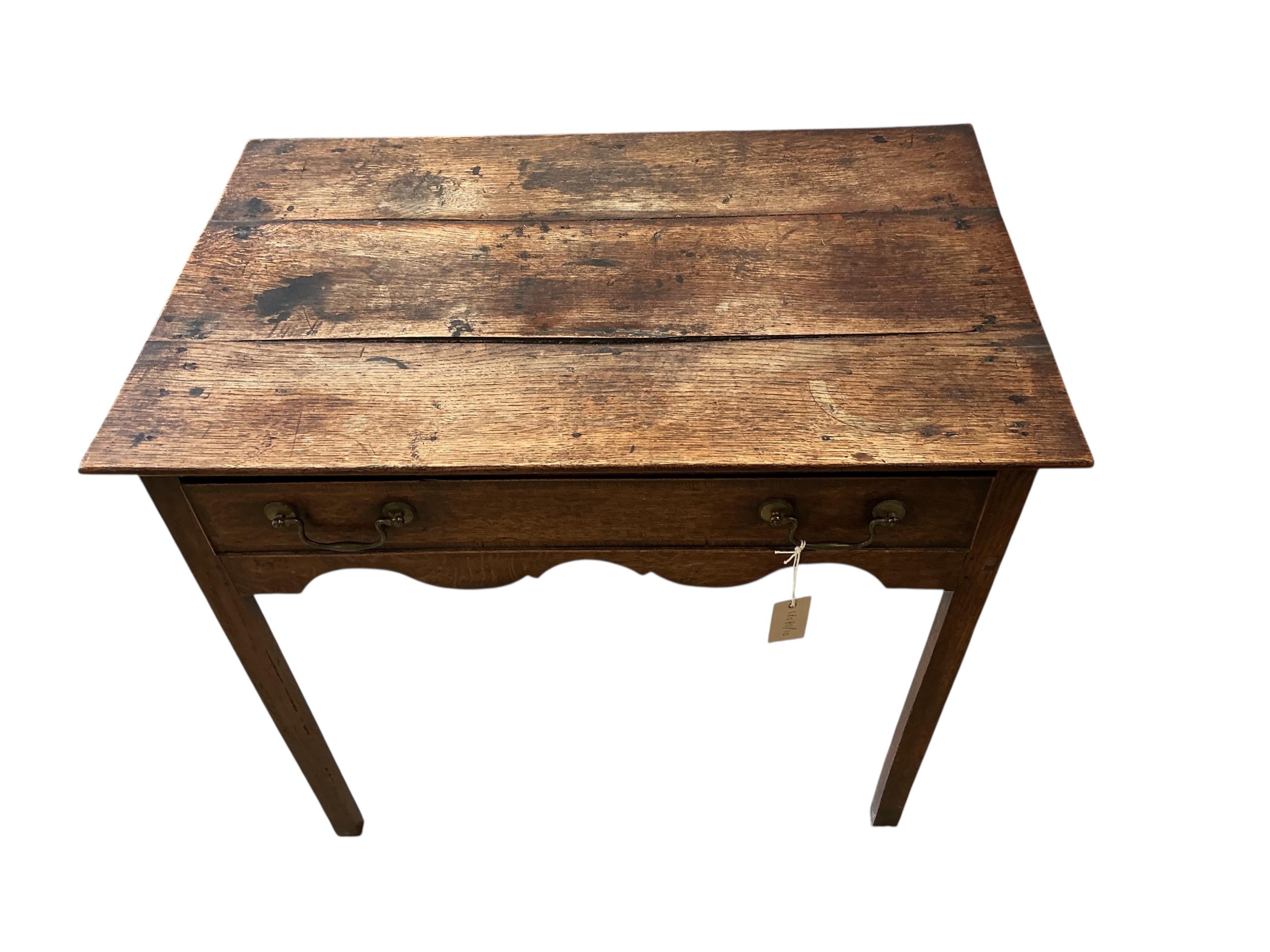 An 18th century oak side table, width 76cm, depth 48cm, height 69cm