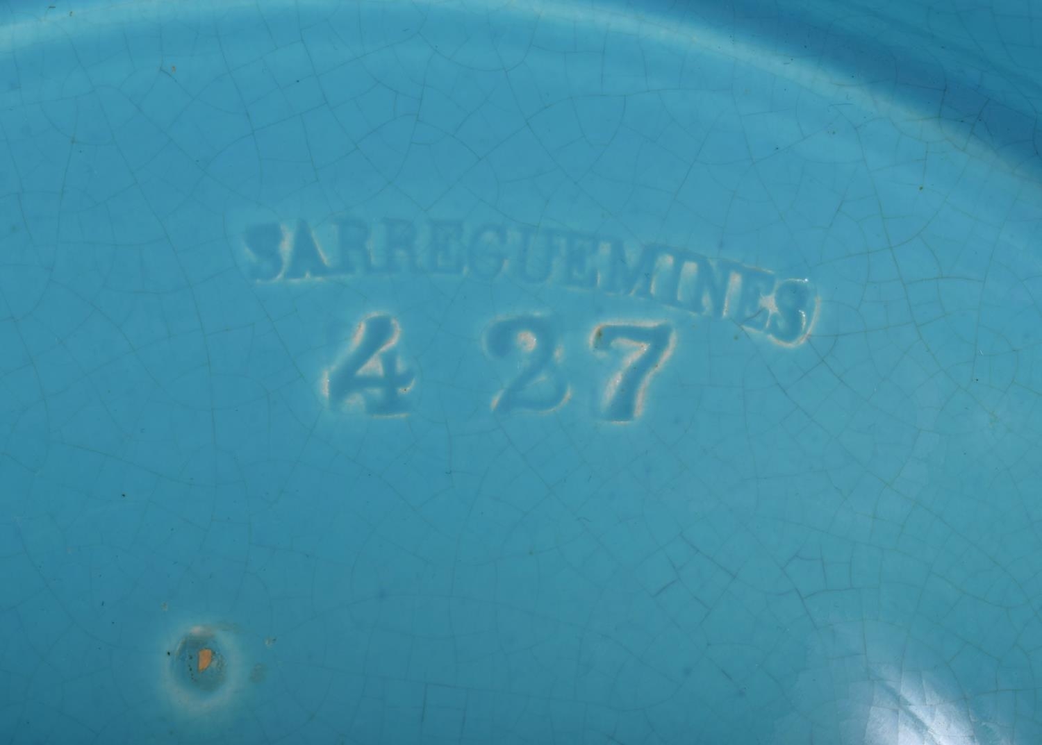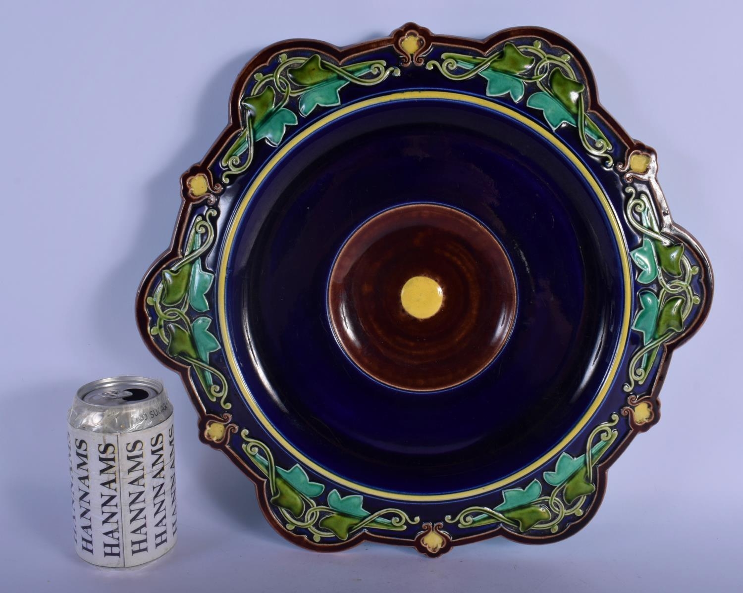 AN ANTIQUE SARREGUEMINES MAJOLICA DISH. 36 cm wide.