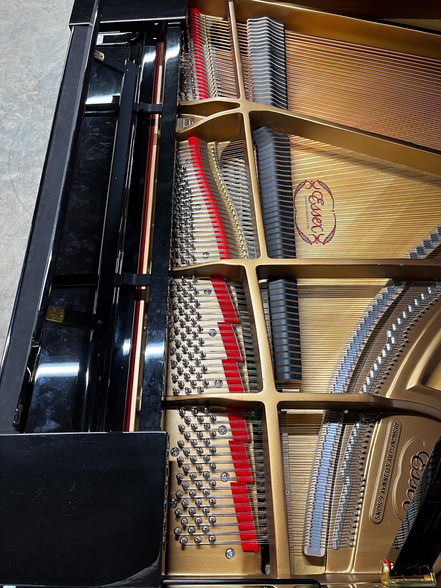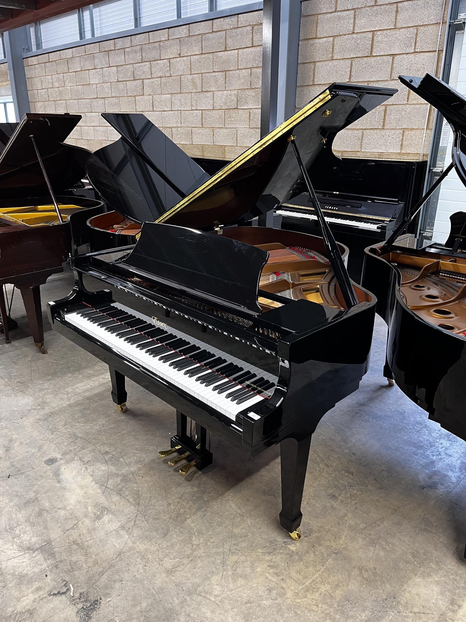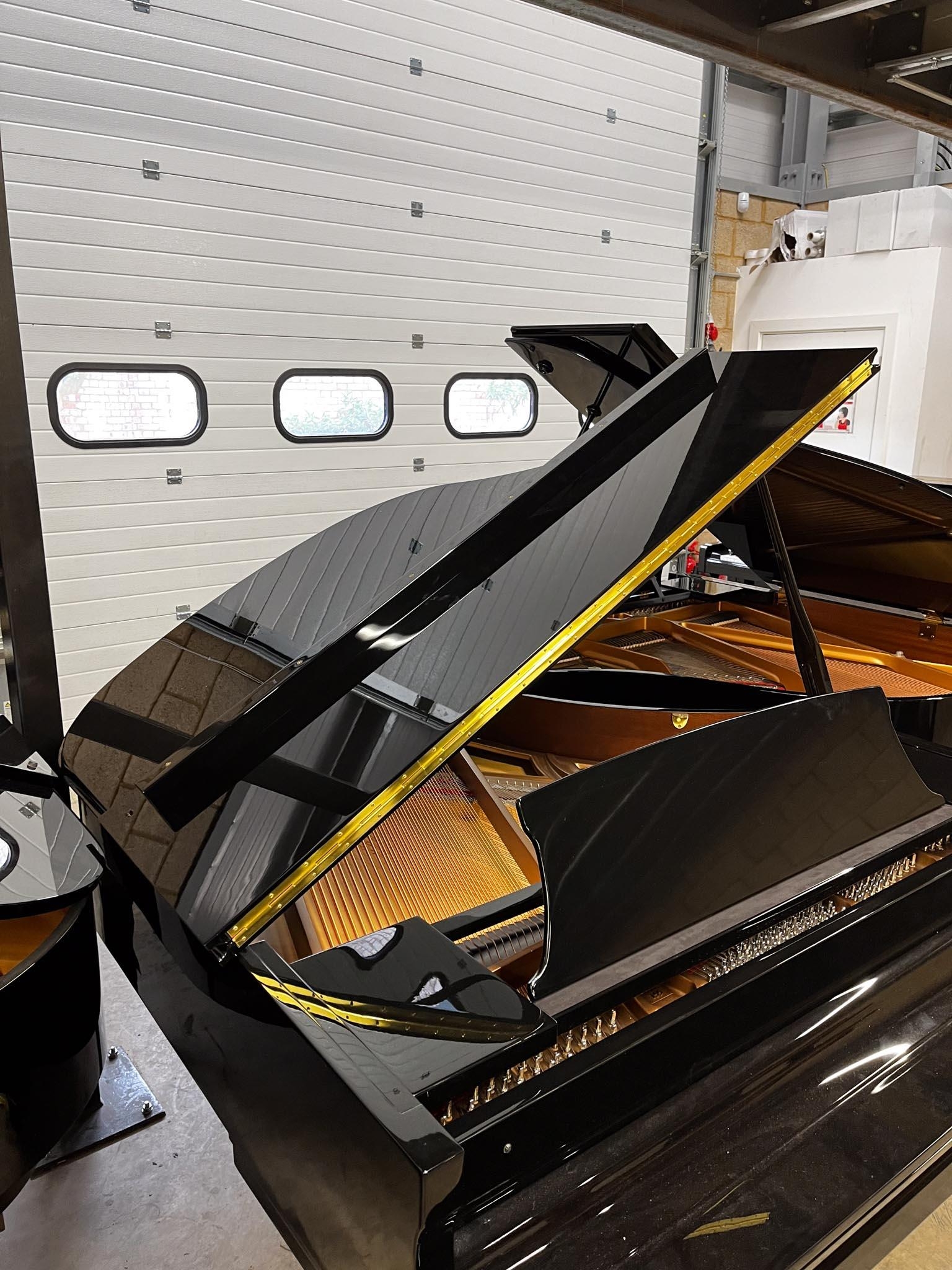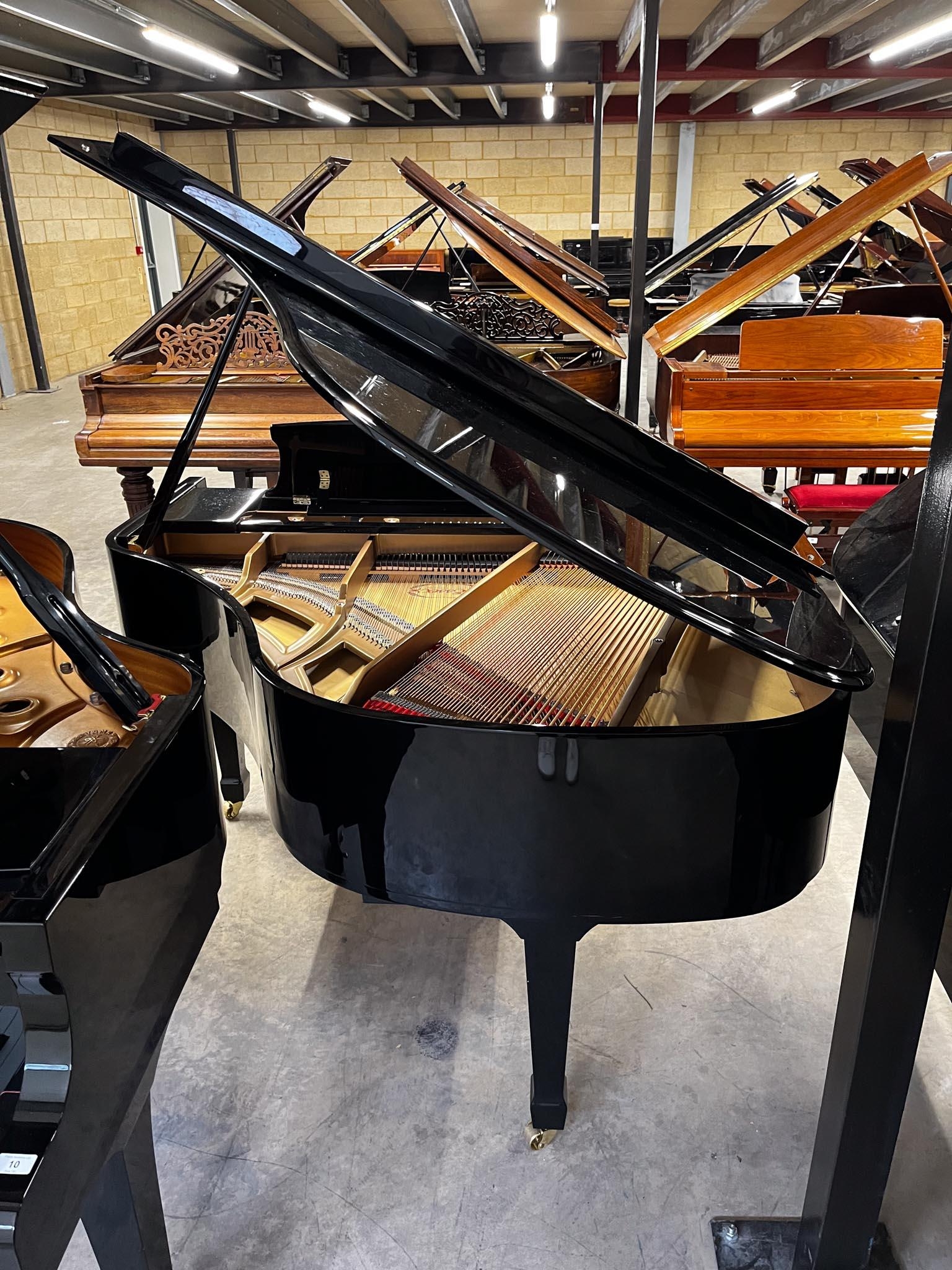A 5ft Model 155 grand piano in a bright ebonised case on square tapered legs. There is VAT on this Lot.