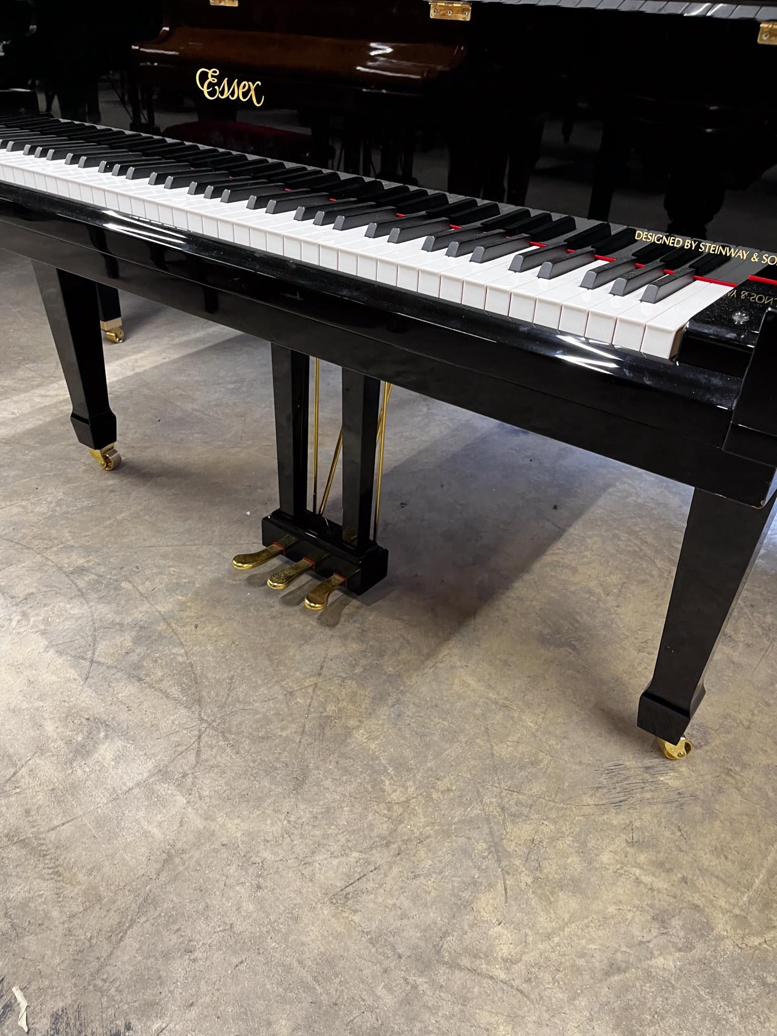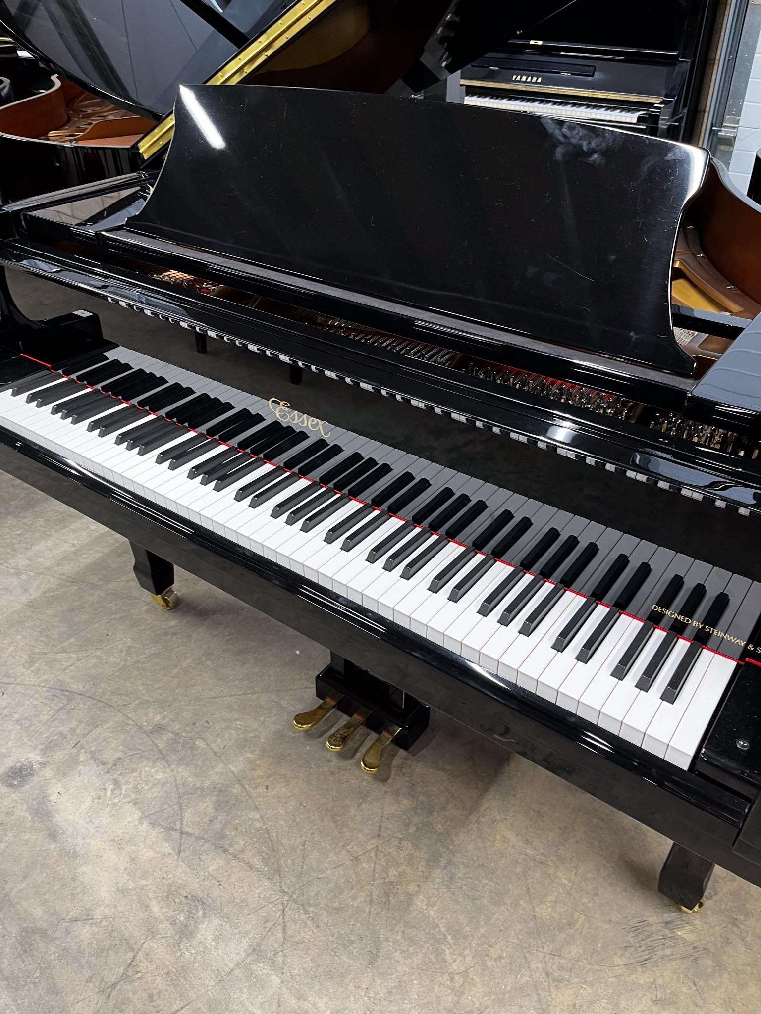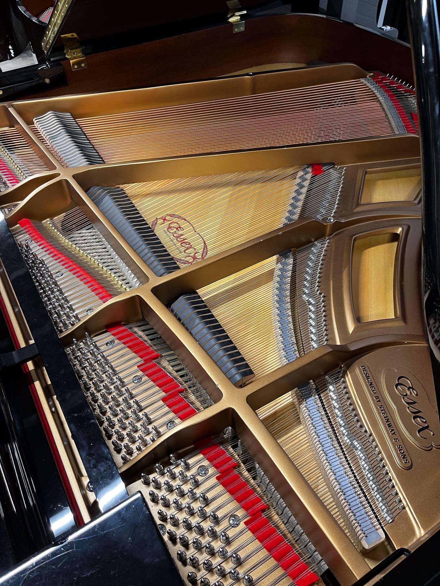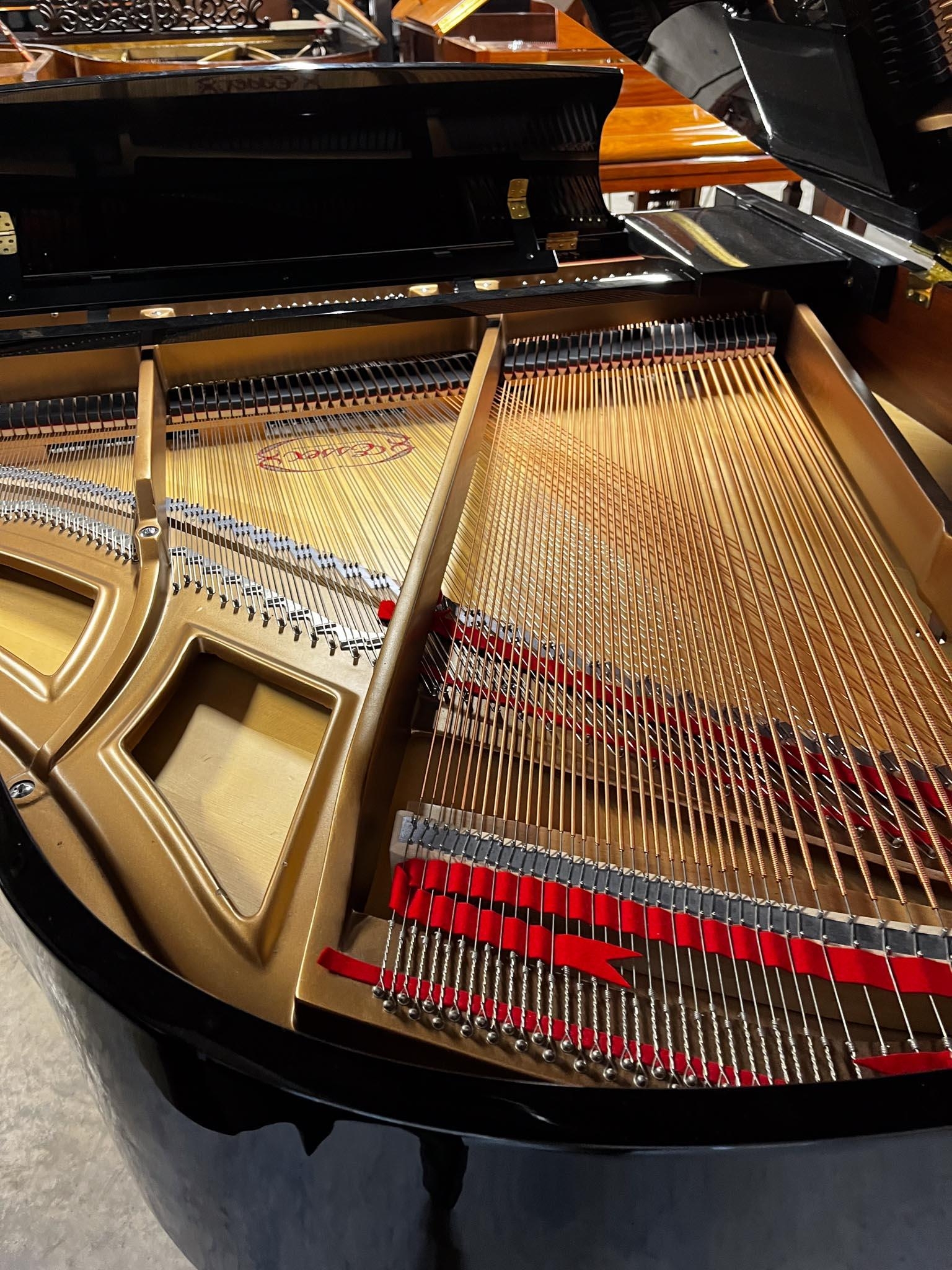 A 5ft Model 155 grand piano in a bright ebonised case on square tapered legs. There is VAT on this Lot.