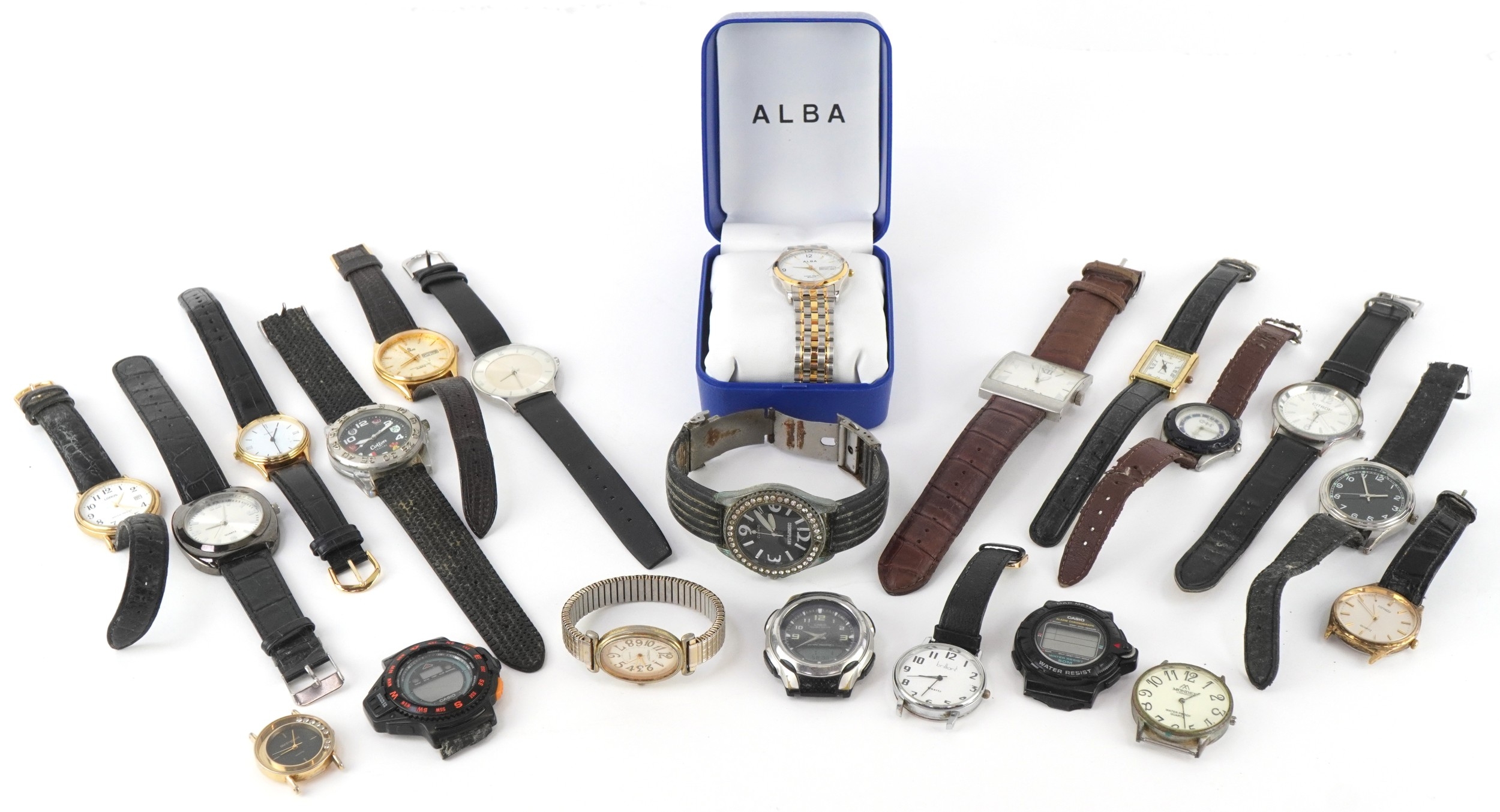 Vintage and later gentlemen's wristwatches including Lorus, Corvette, Casio and Citron.