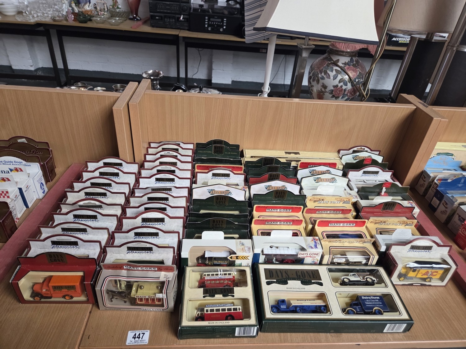 A collection of 64 boxed diecast model vehicles - Days Gone - buses, horse drawn carts, military, etc.