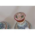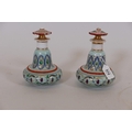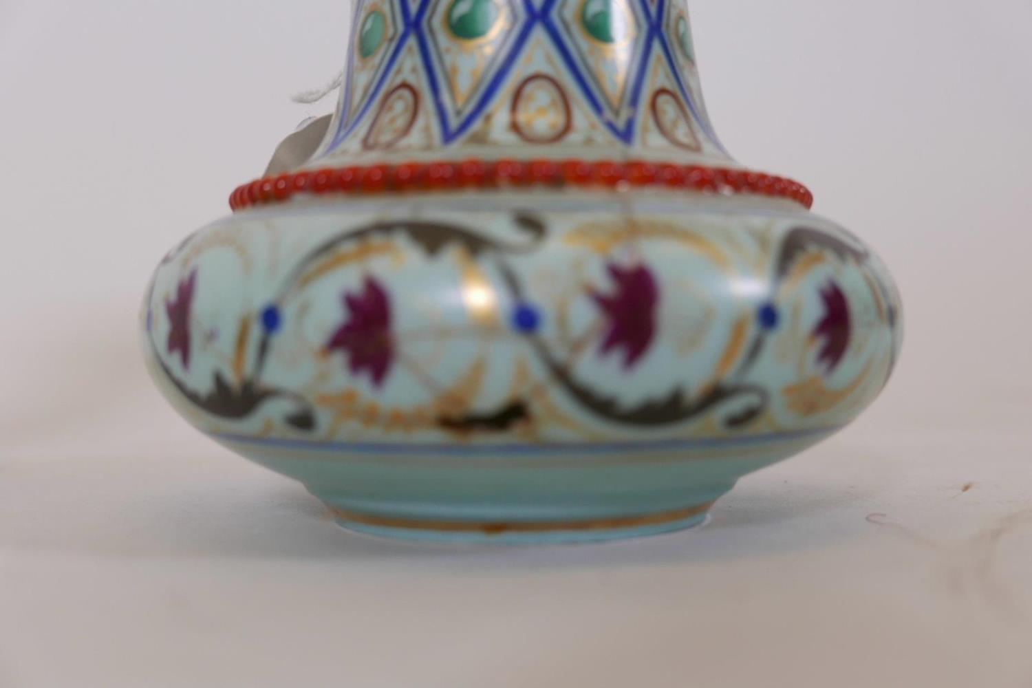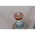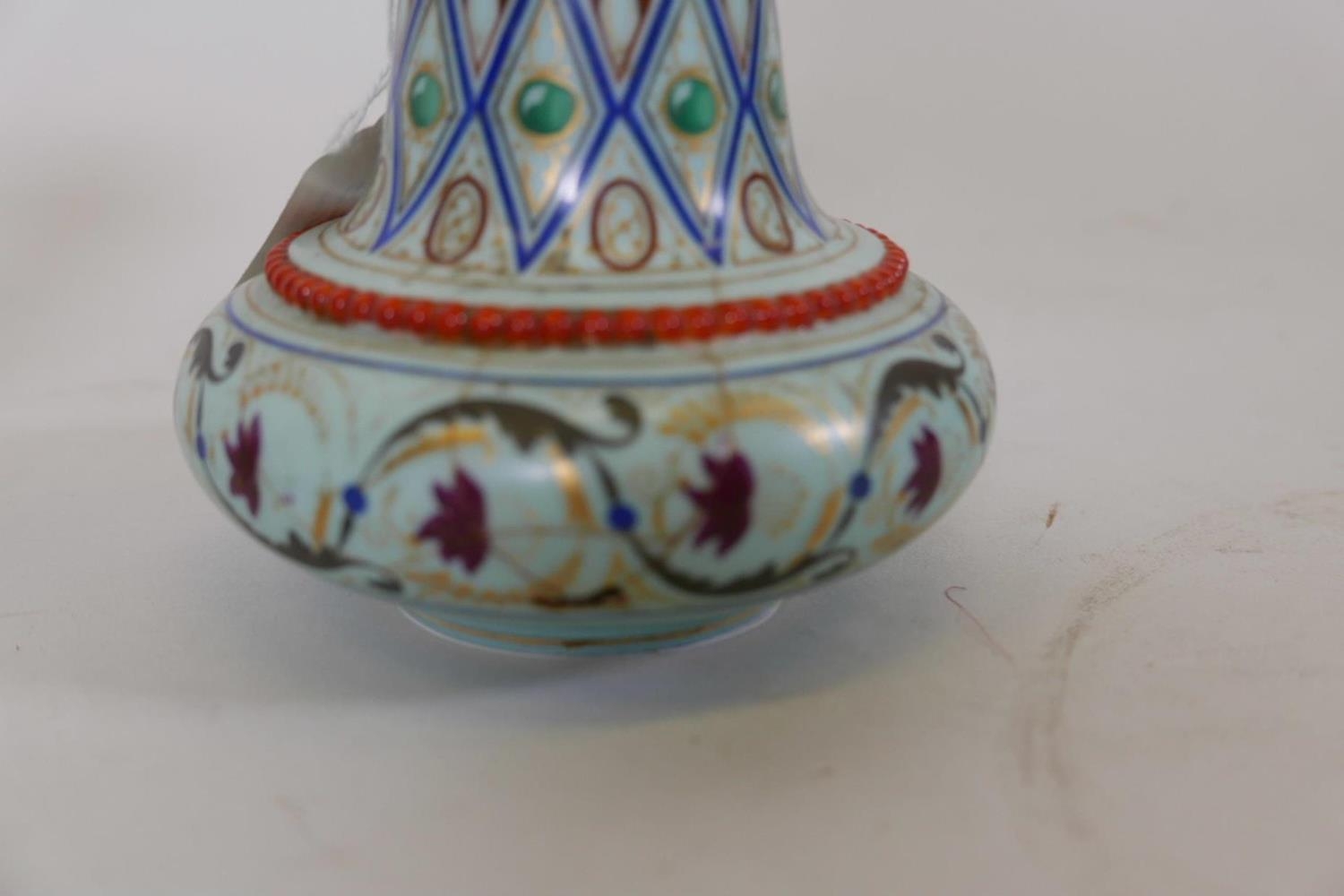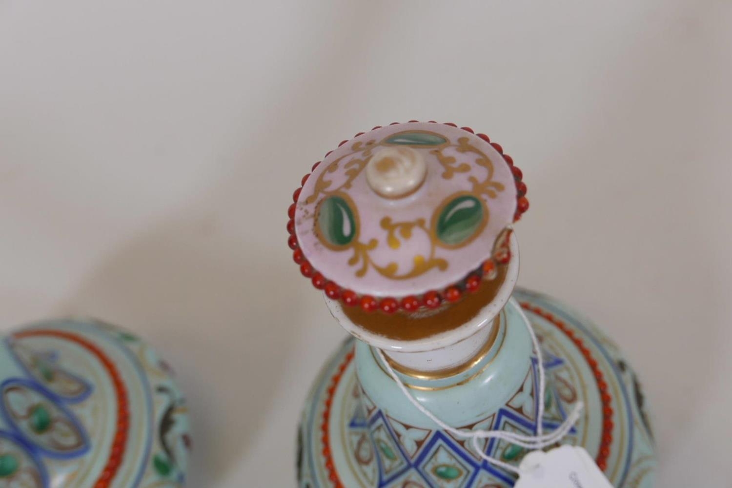 Two similar C19th Continental opaline glass bottles and stoppers, with hand painted and gilded decoration, A/F losses and repairs, 6½" high
