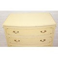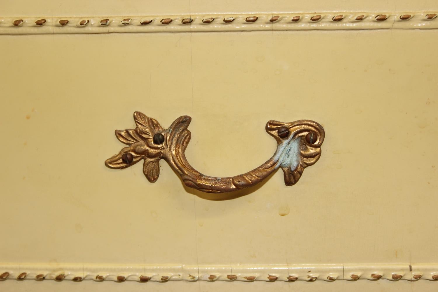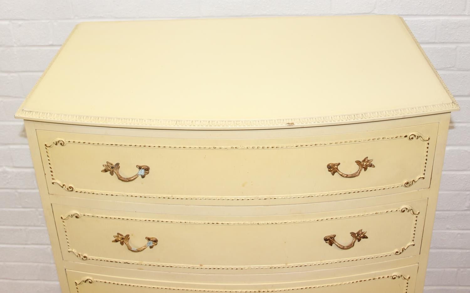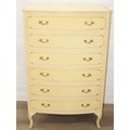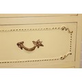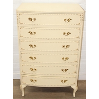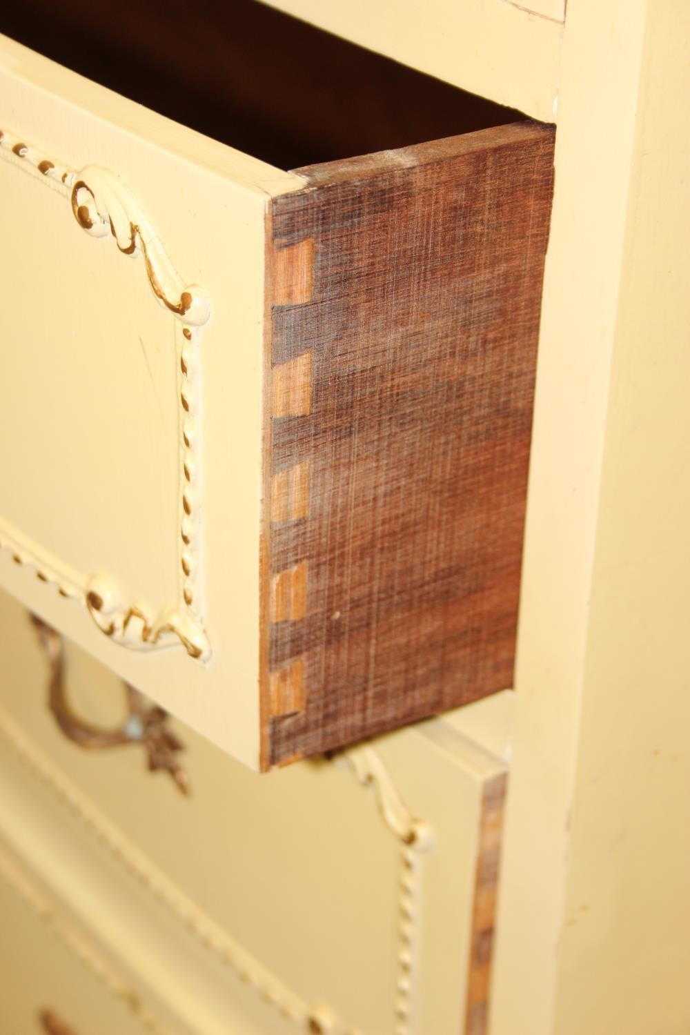 Rococo style cream finished six drawer chest with decorative gilt metal handles, 78cm x 49cm x 125cm