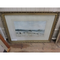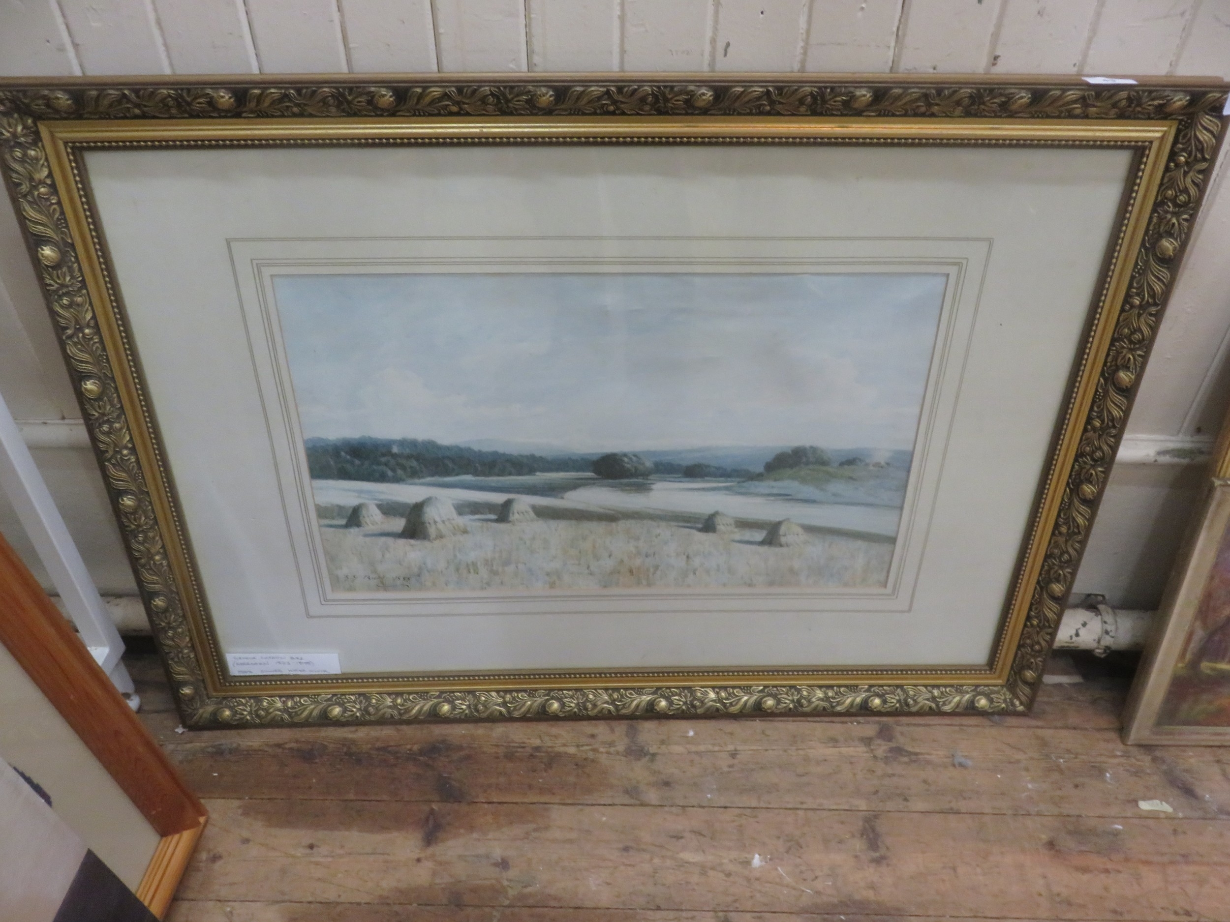 Framed Watercolour - Haystacks by River - George Gordon Burr