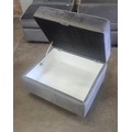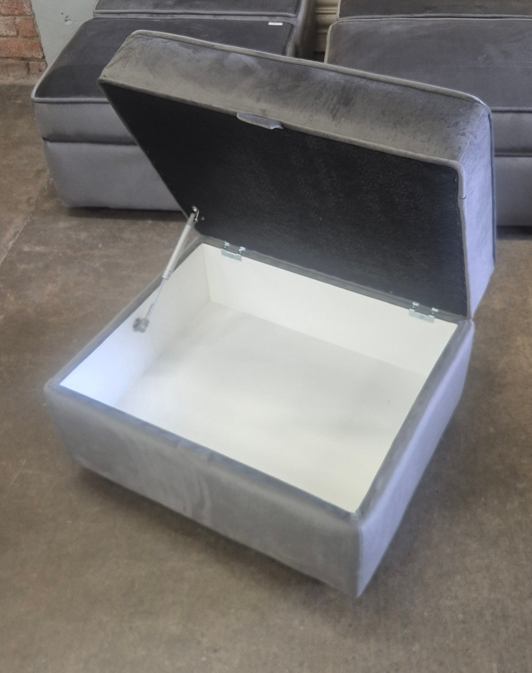 A grey Hoxton velvet upholstered storage footstool