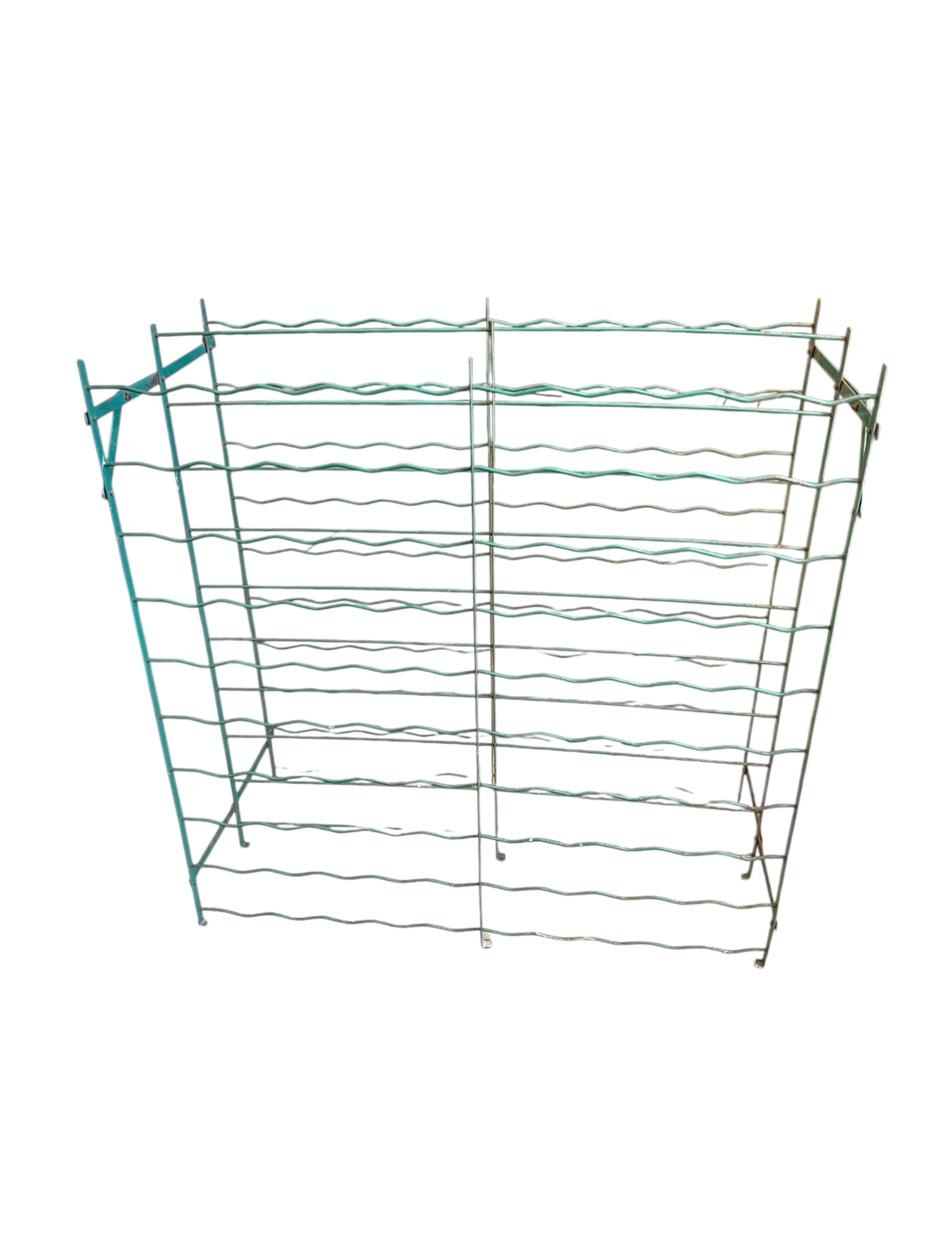 Two French painted wrought iron wine cages, width 101cm, depth 47cm, height 102cm