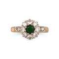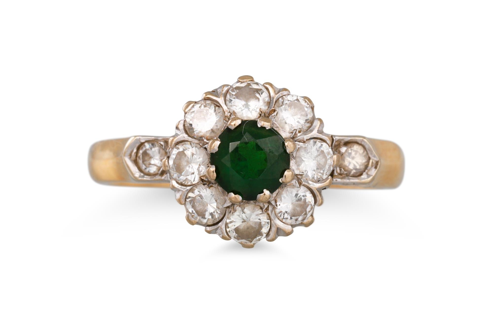 A GREEN TOURMALINE AND DIAMOND RING, mounted in 18ct yellow gold. Estimated: weight of diamonds: 0.75 ct. size M