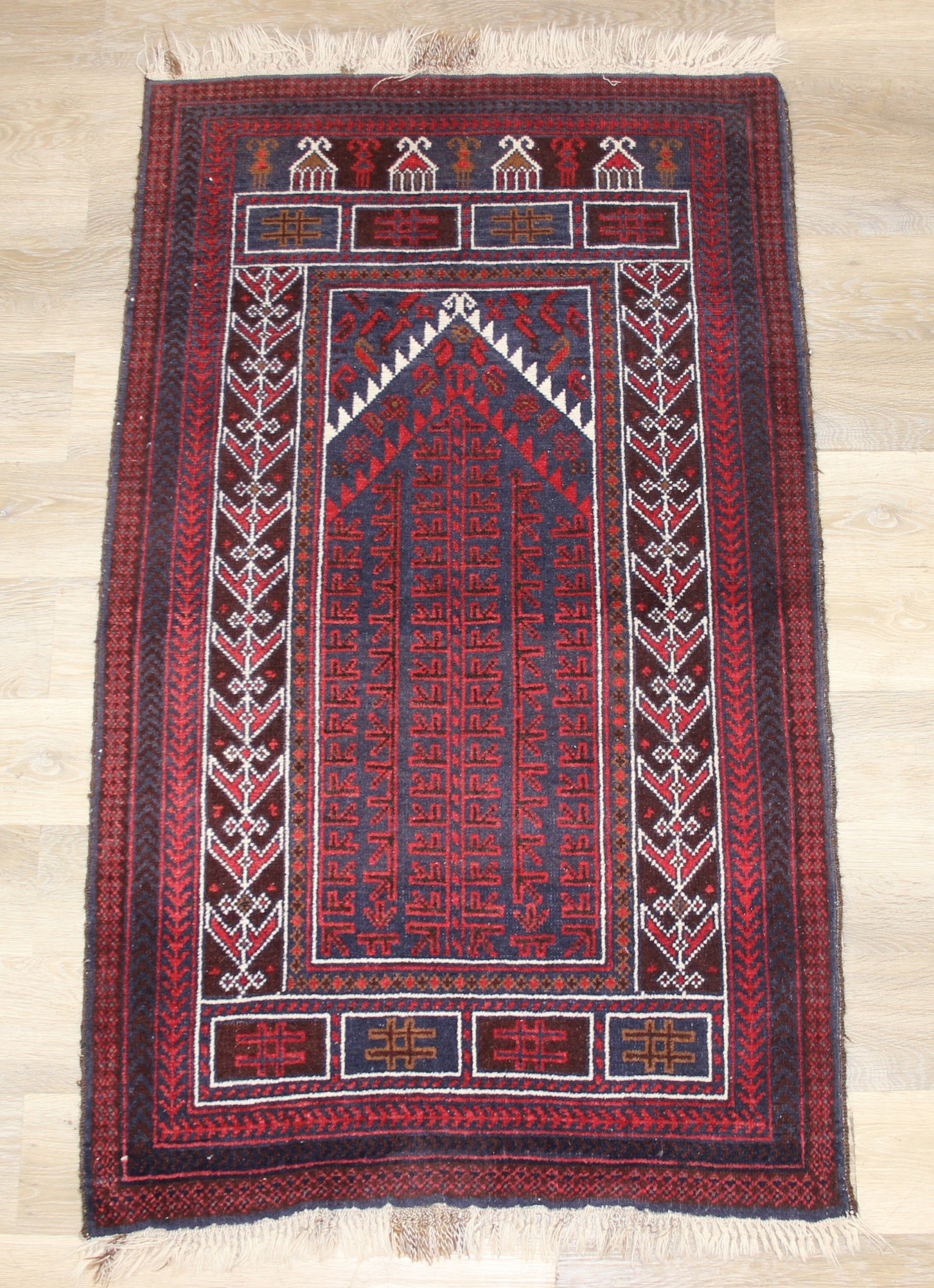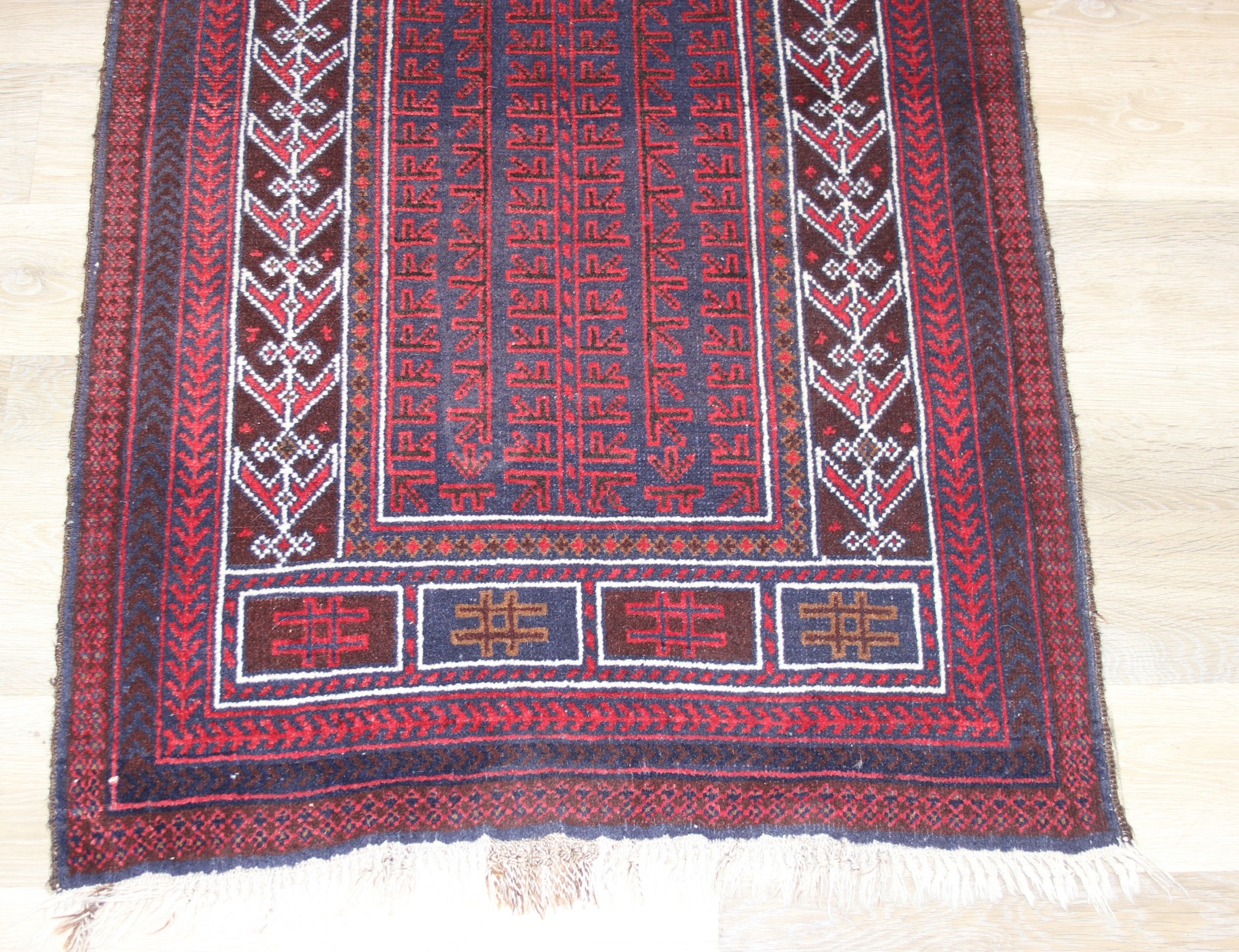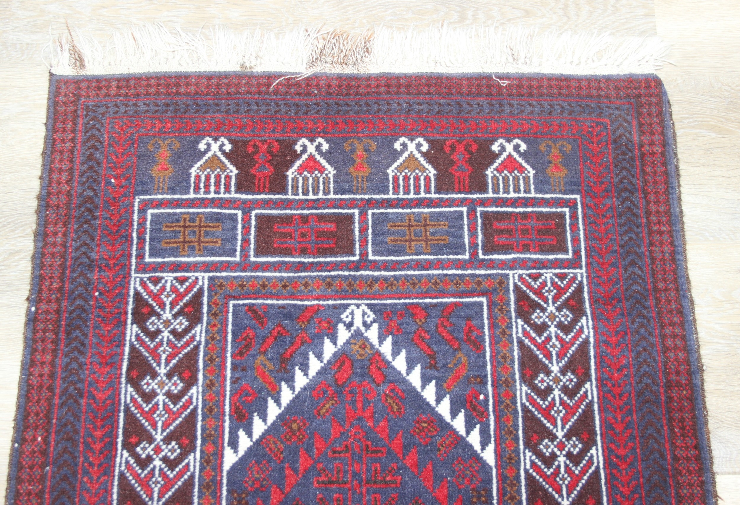 A vintage Afghan Balucch prayer rug of red ground, 155cm x 86cm
