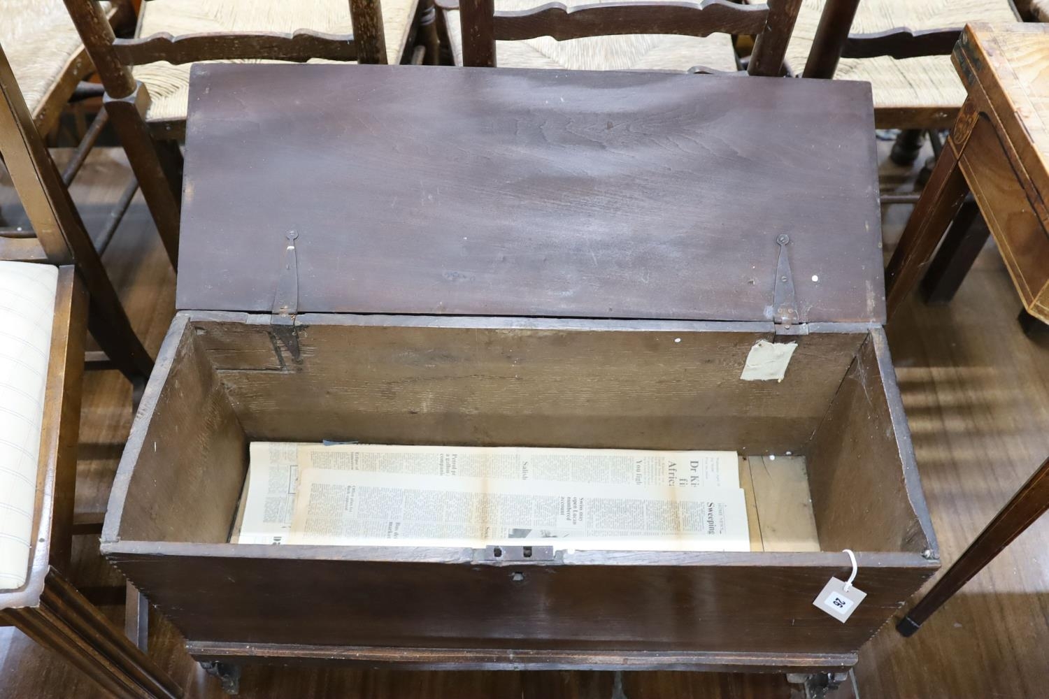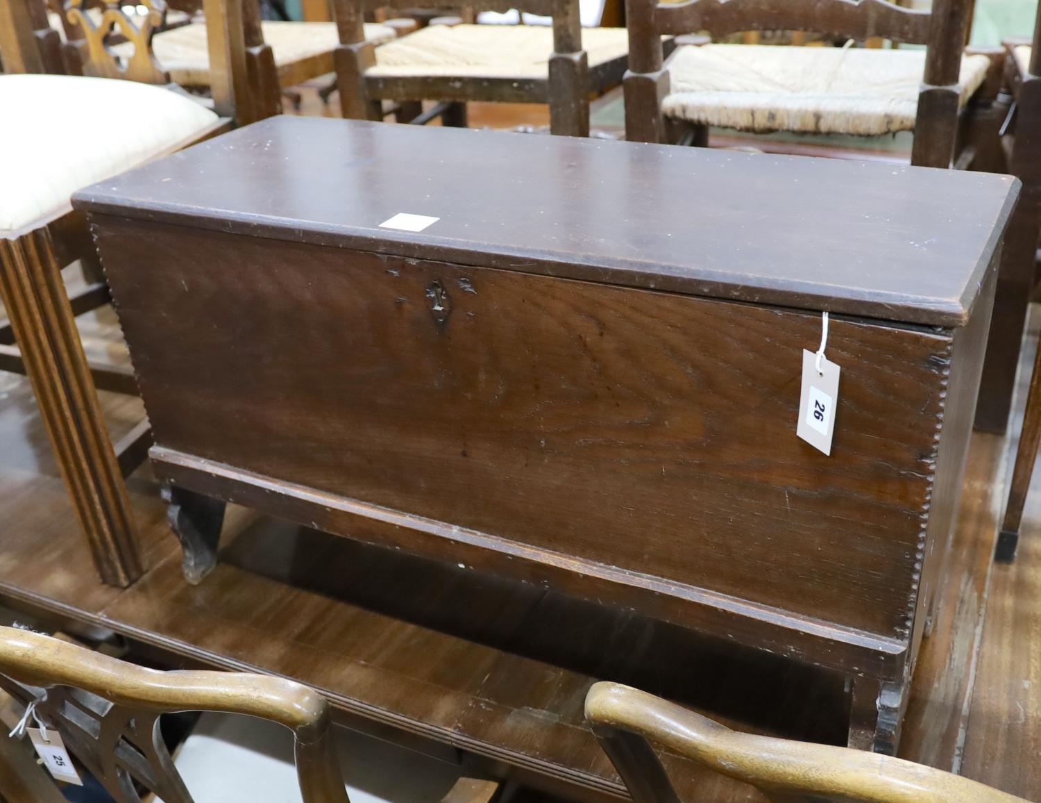 An 18th century and later Sussex oak six plank coffer, width 82cm, depth 30cm, height 47cm