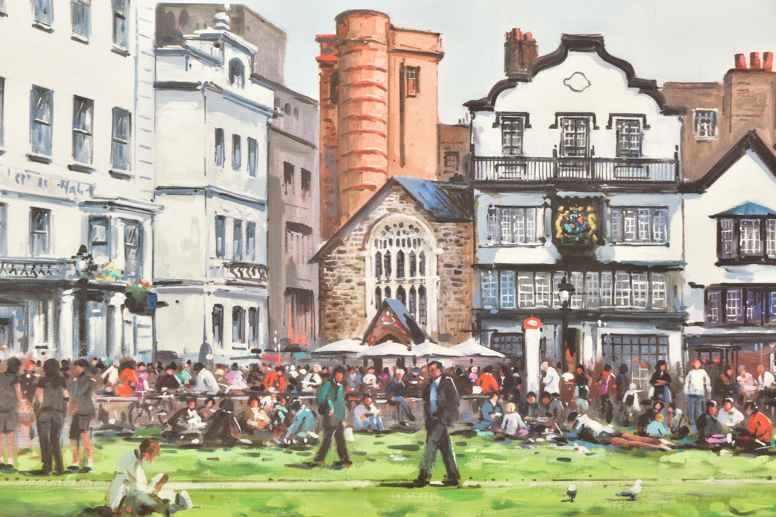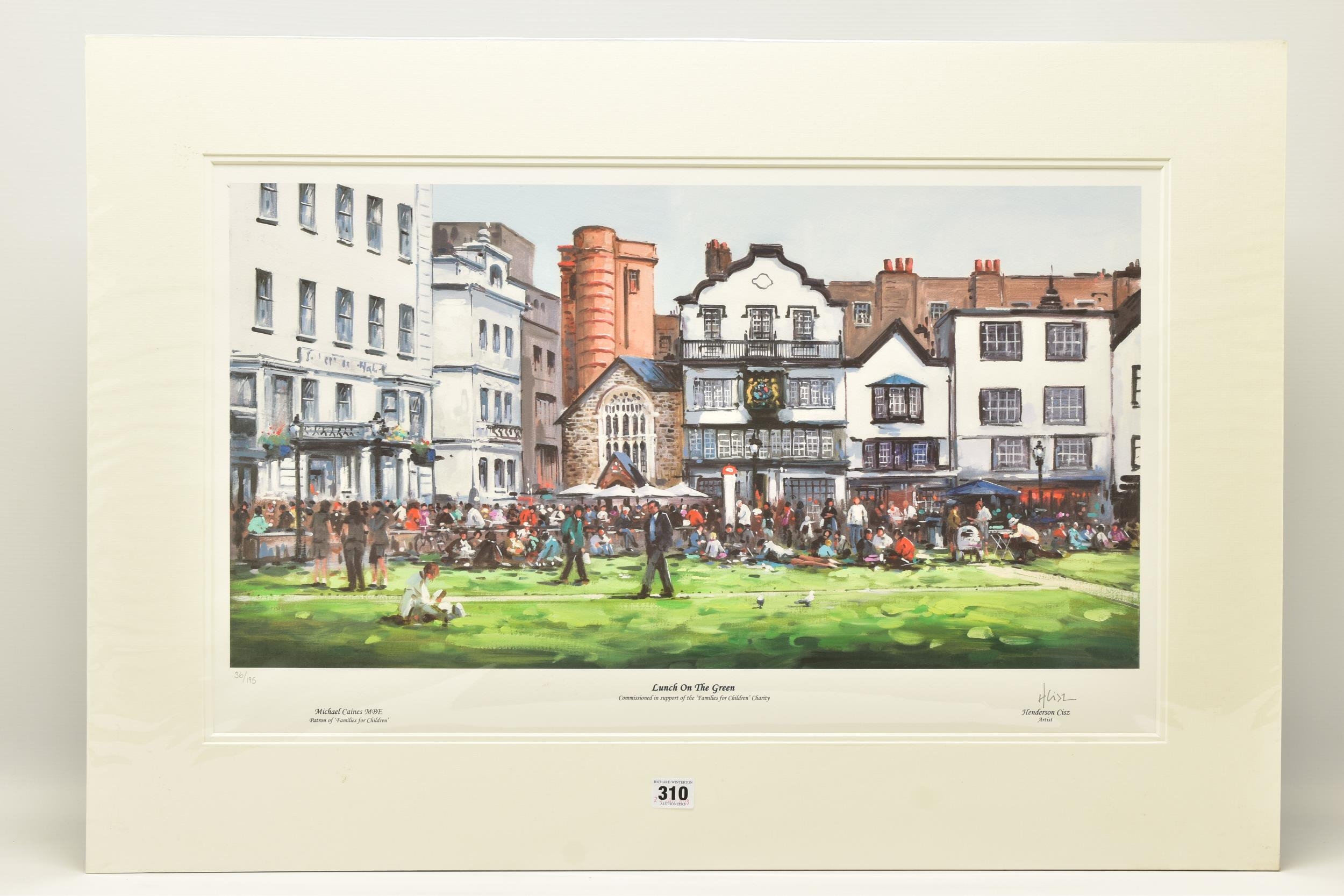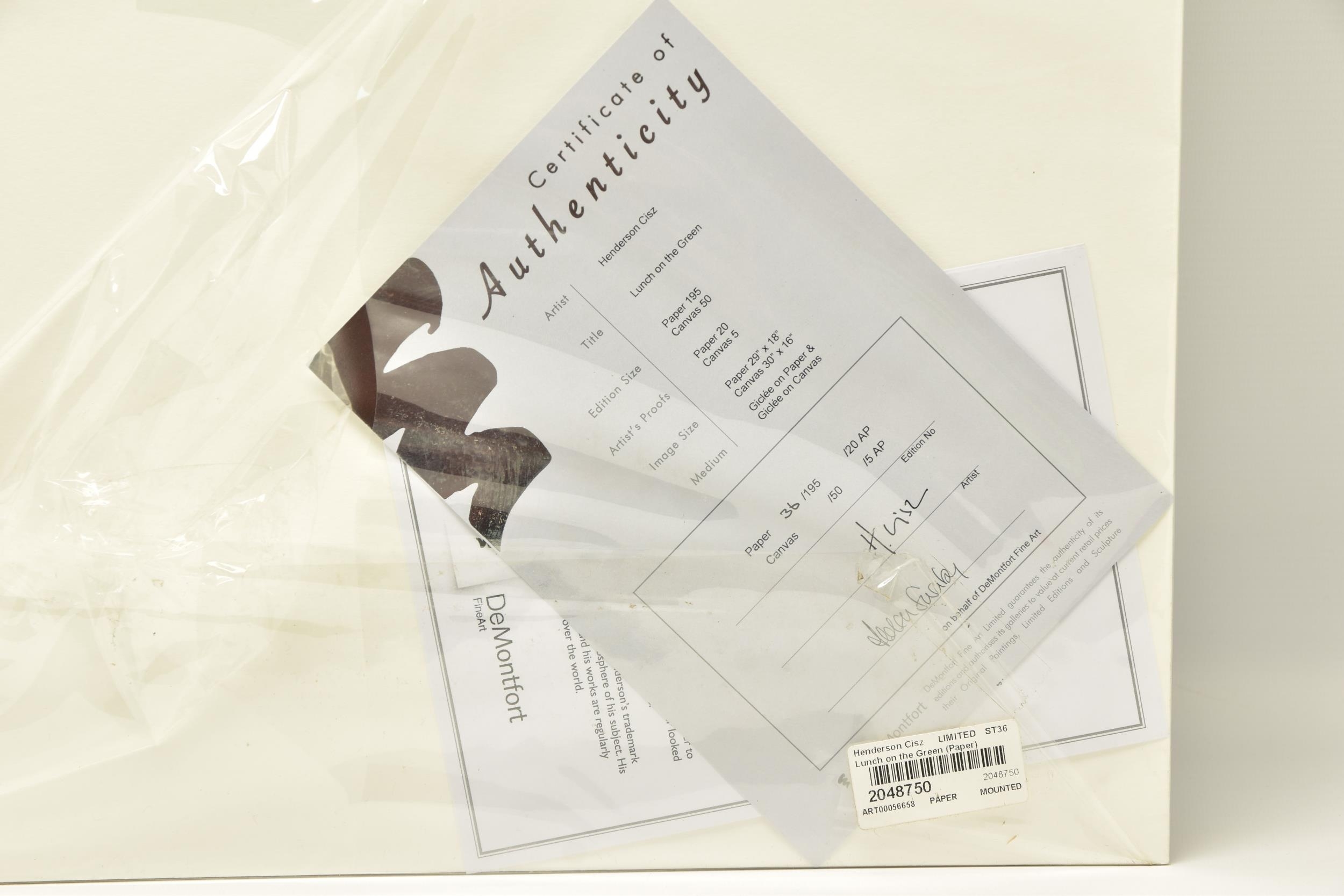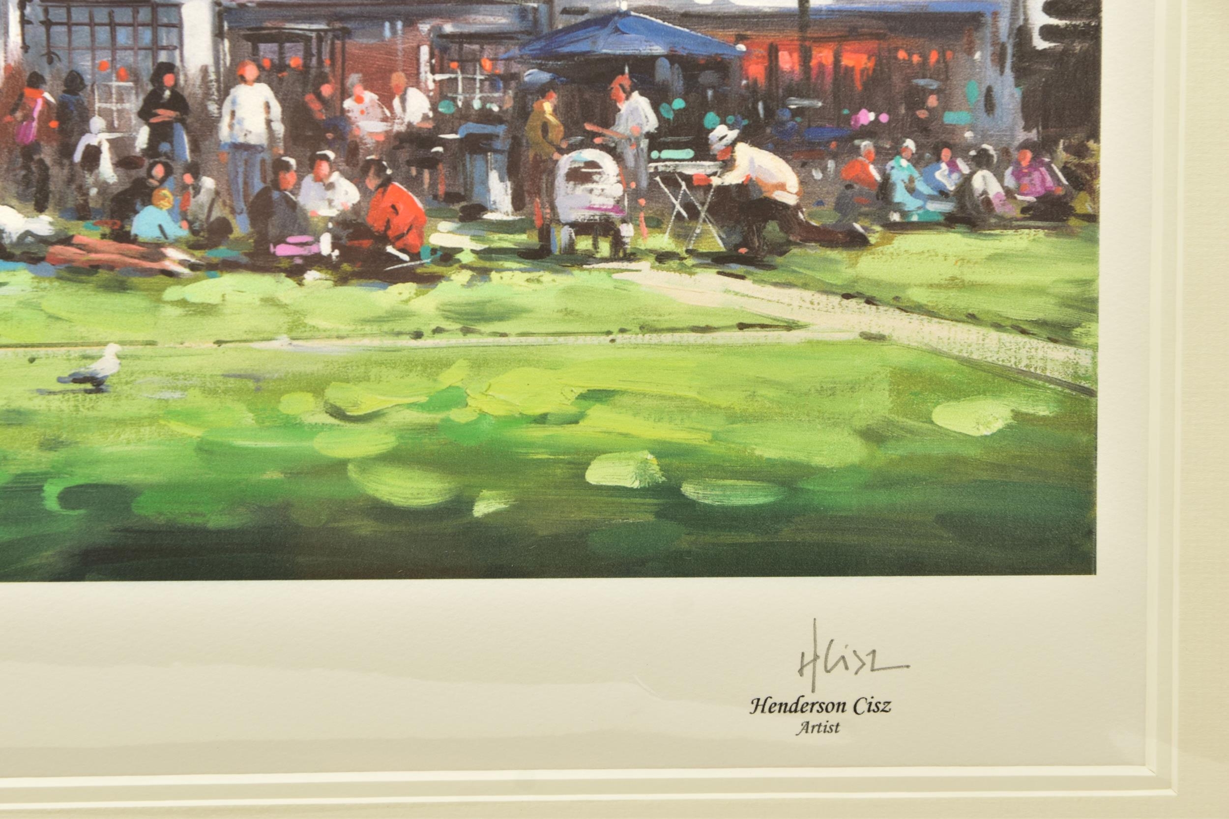 HENDERSON CISZ (BRAZIL 1960) 'LUNCH ON THE GREEN', a signed limited edition print depicting Exeter Cathedral Green, 36/195 with certificate, approximate size including mount 60cm x 87cm Condition: no obvious damage (artist resale rights apply)