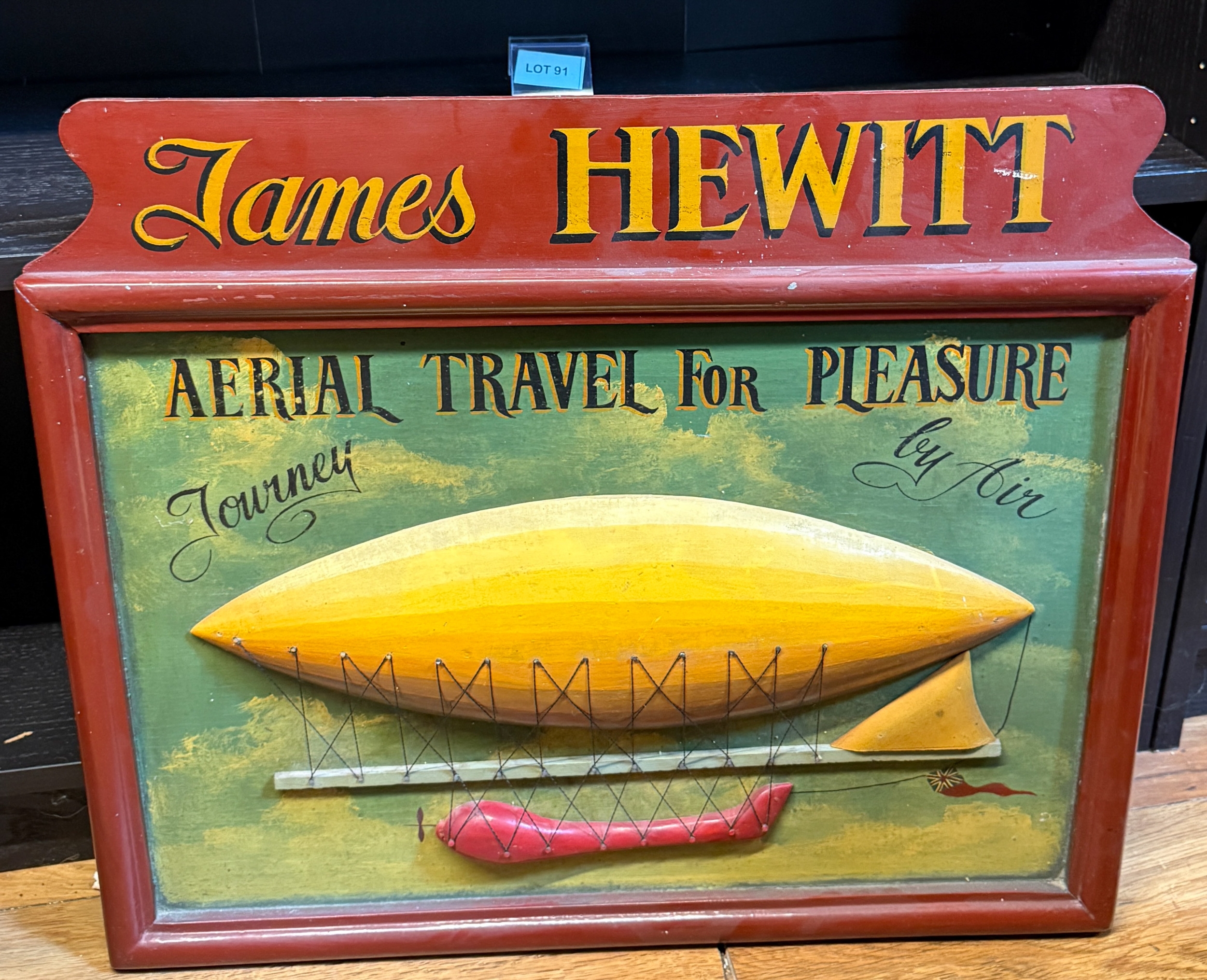 Wooden sign depicting air ship "James Hewitt"