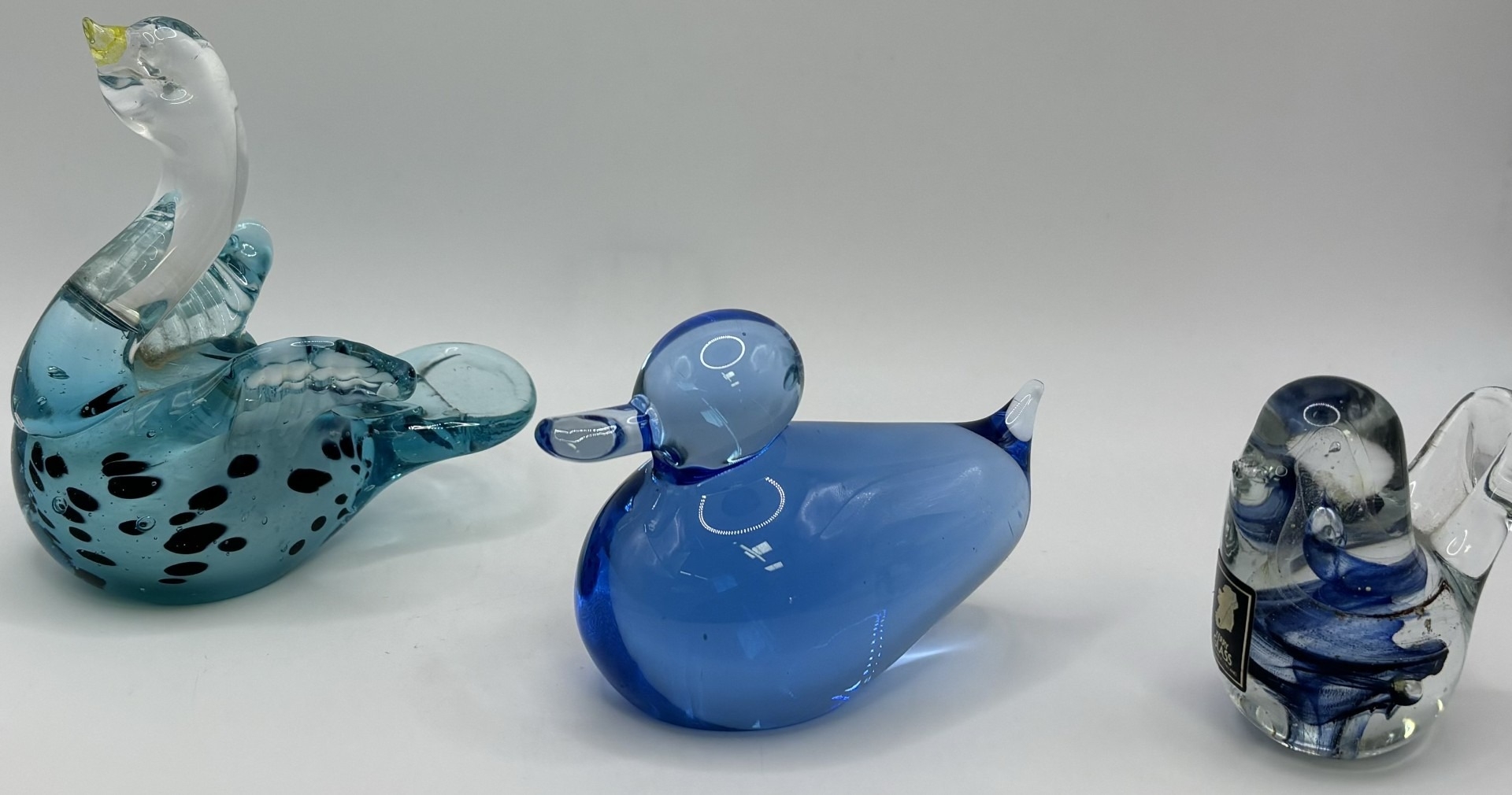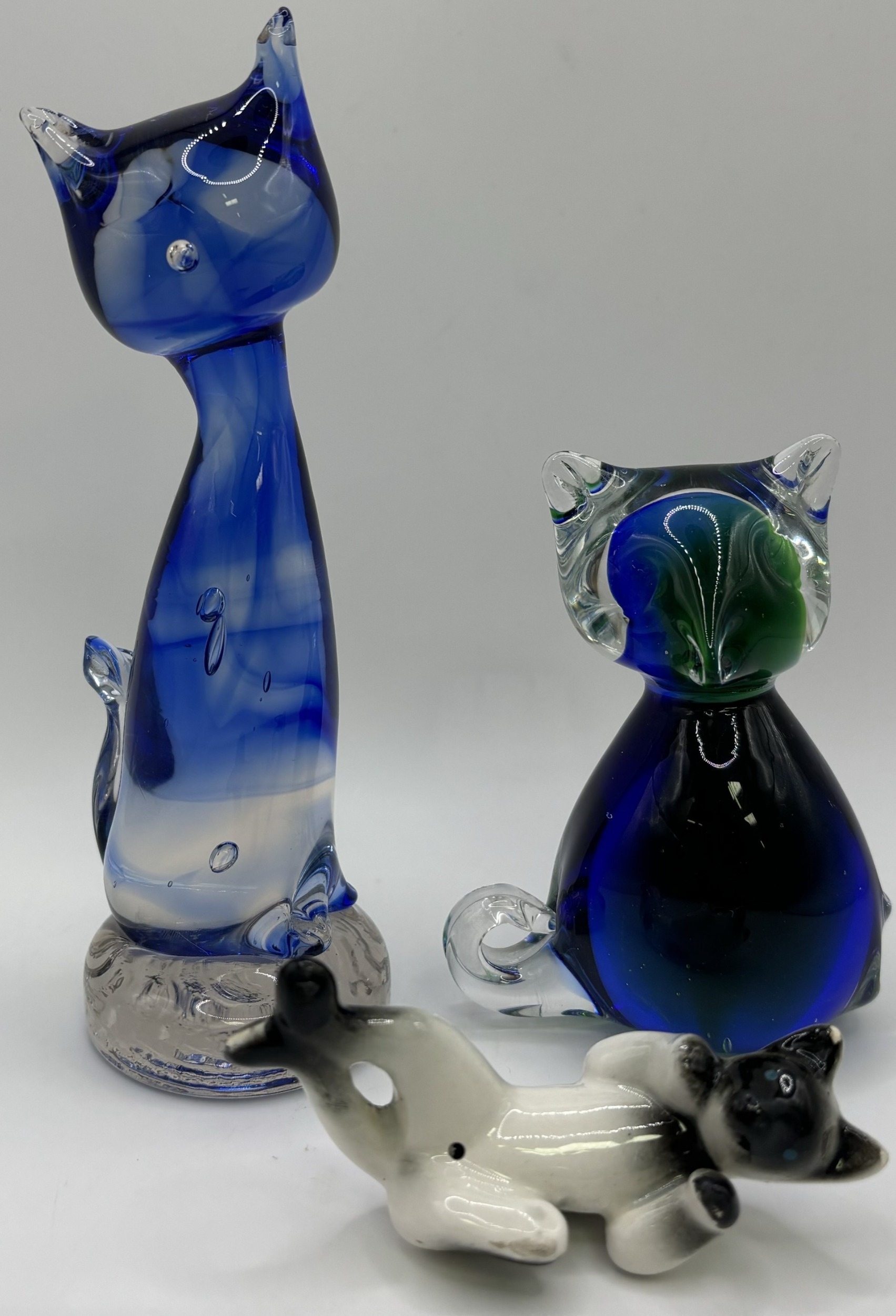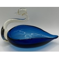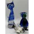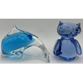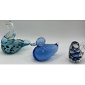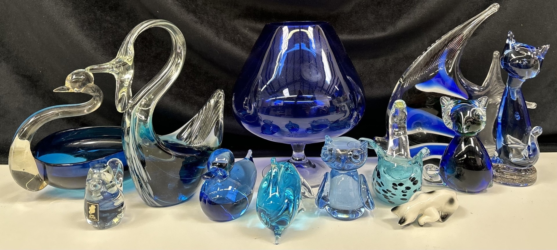 Collection of 11 pieces of mid-century blue art glass. To include Mdina & other animals & brandy glass (with cat).