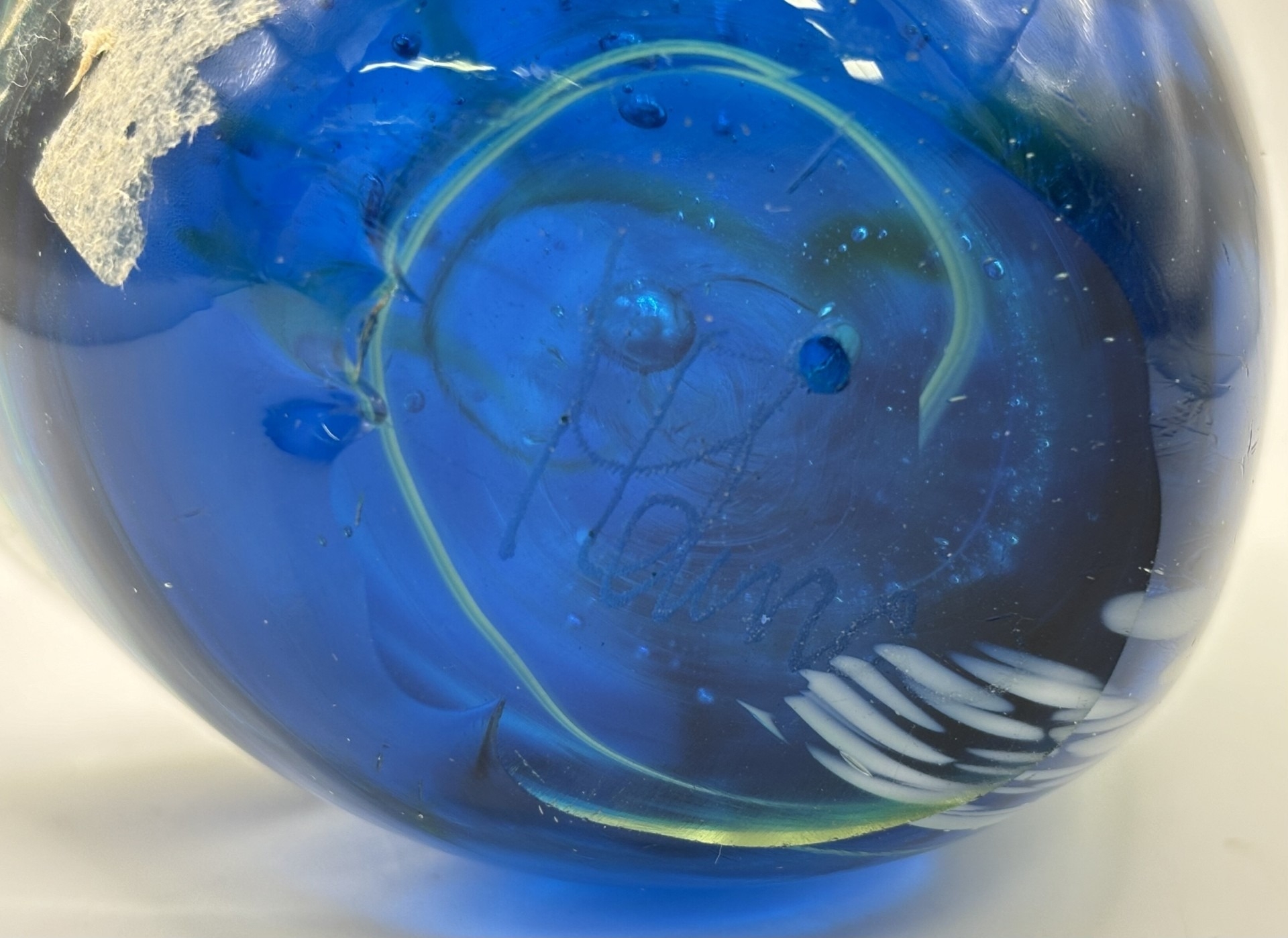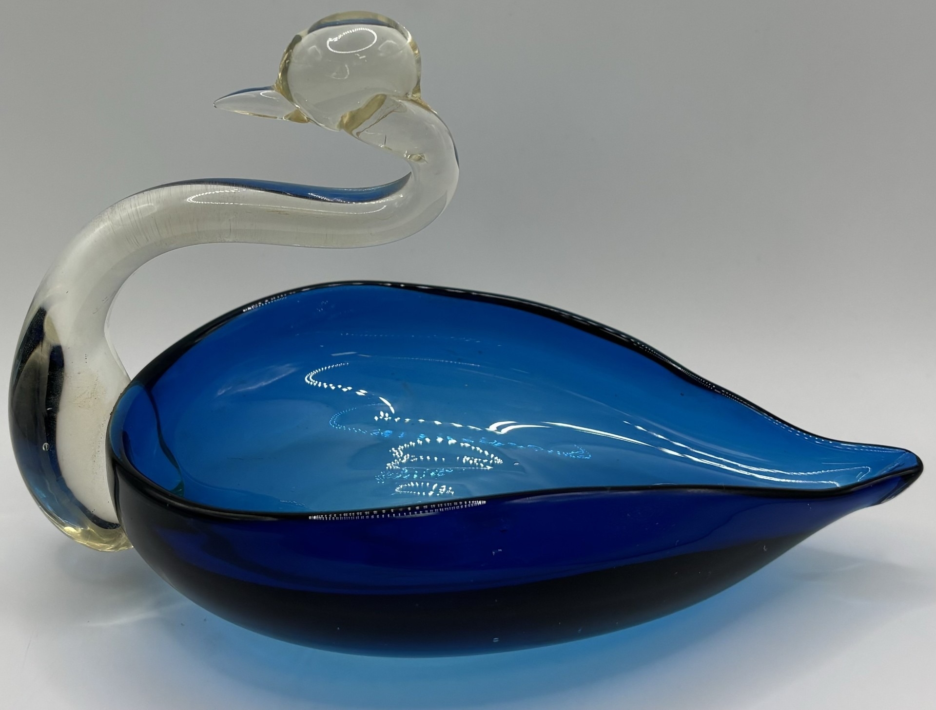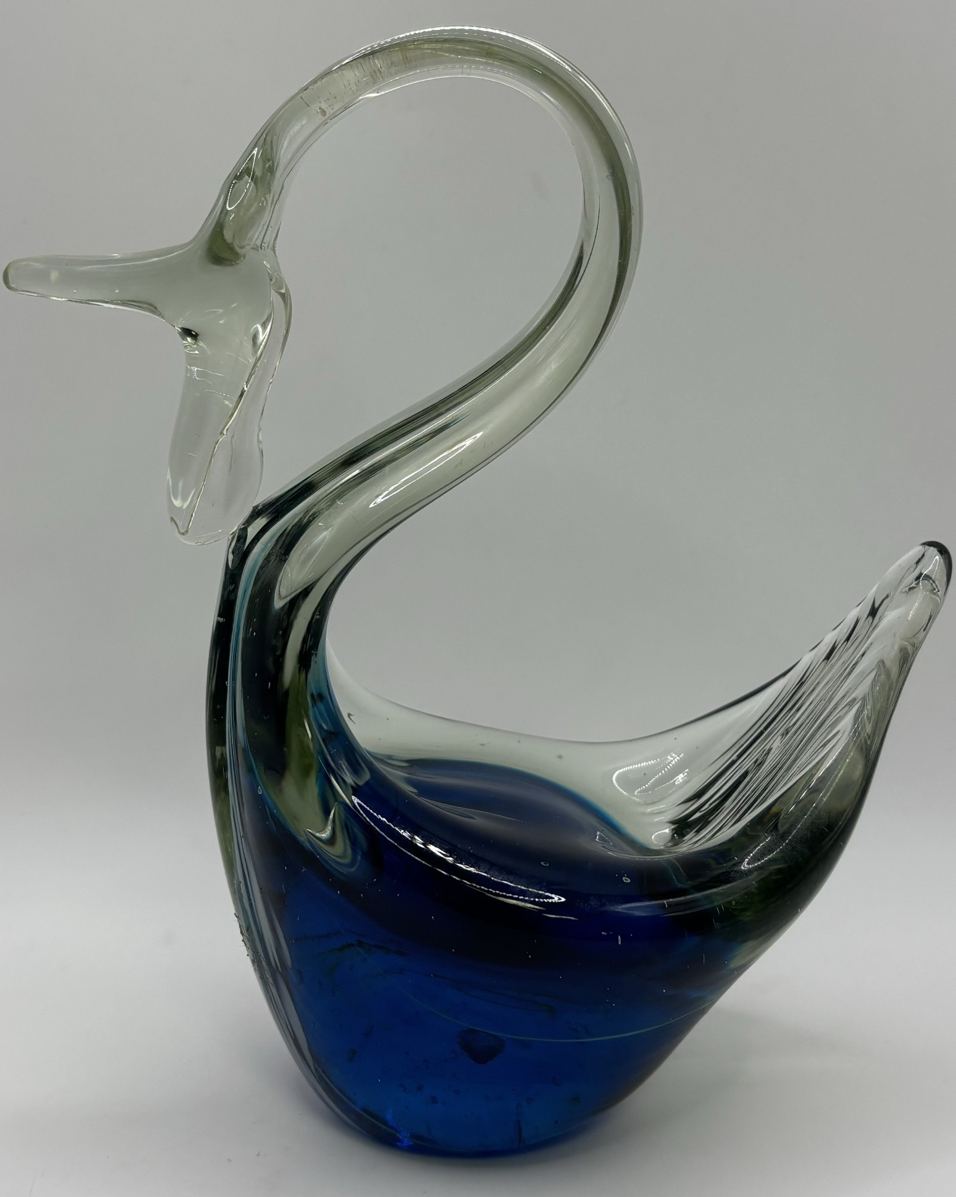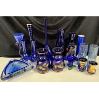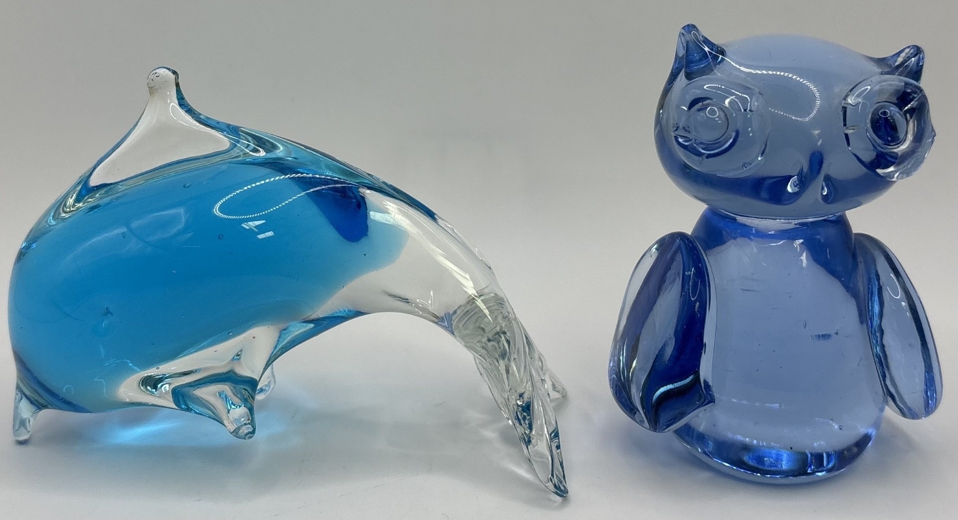 Collection of 11 pieces of mid-century blue art glass. To include Mdina & other animals & brandy glass (with cat).