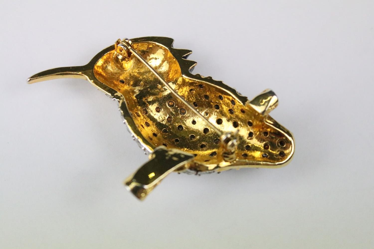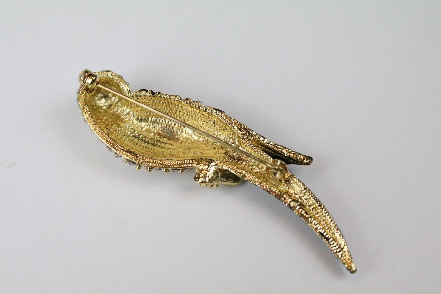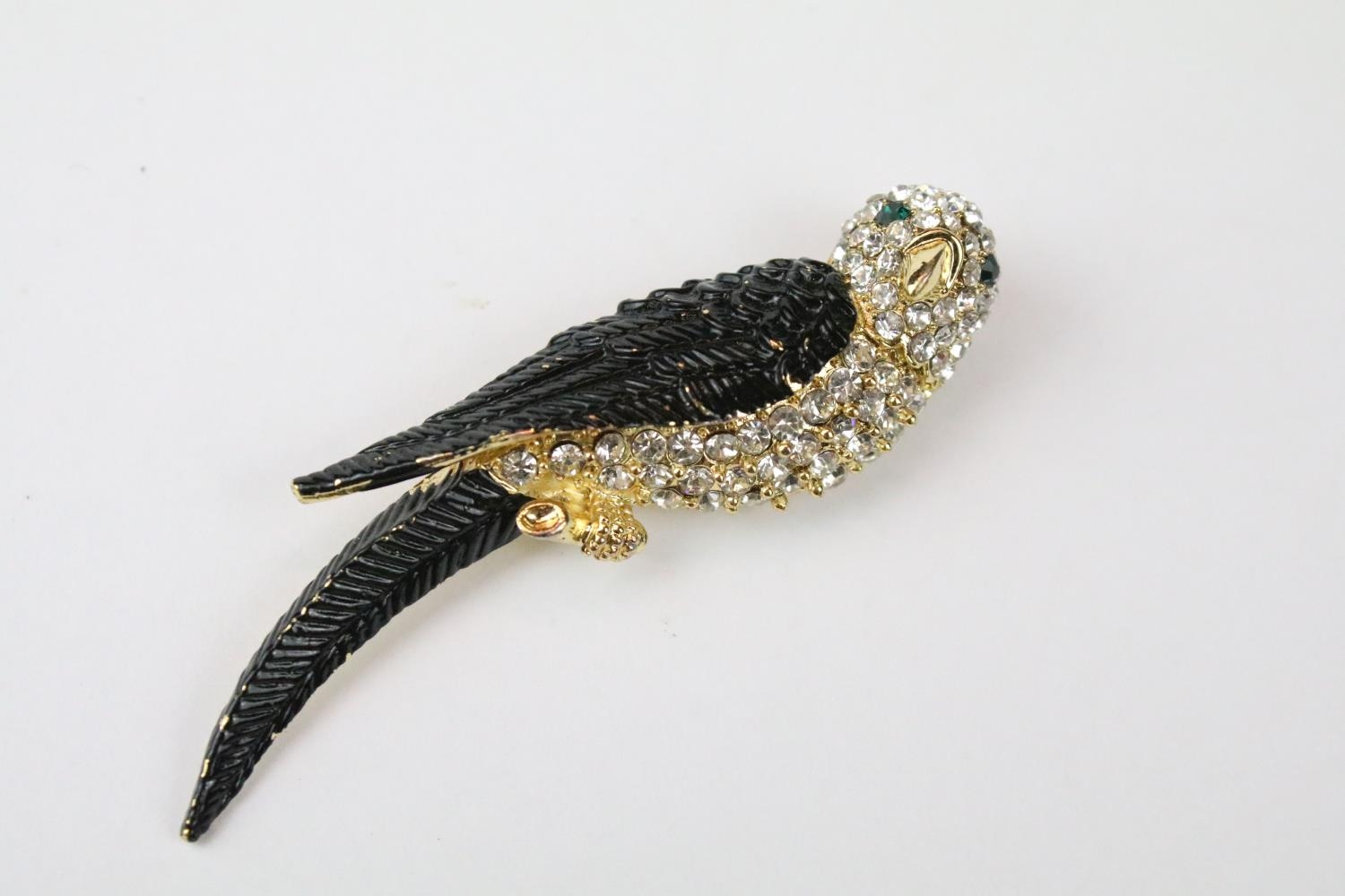 Three Large Costume Jewellery Bird Enamel and Crystal set Brooches in the form of a Parrot, Kingfisher and Exotic Bird, largest 8cm long