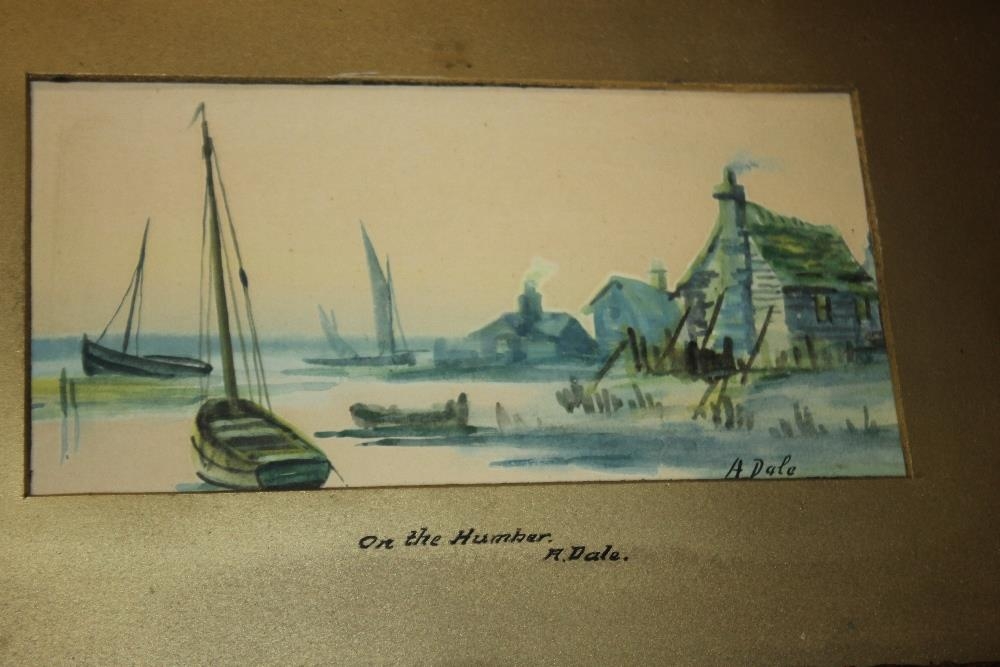 TWO WATERCOLOURS , ONE BY A. DALE 'ON THE HUMBER' AND ONE BY C. (OR A?) GRAY 'SCENE IN ESSEX' TOGETHER WITH THREE SMALL CONSTABLE PRINTS