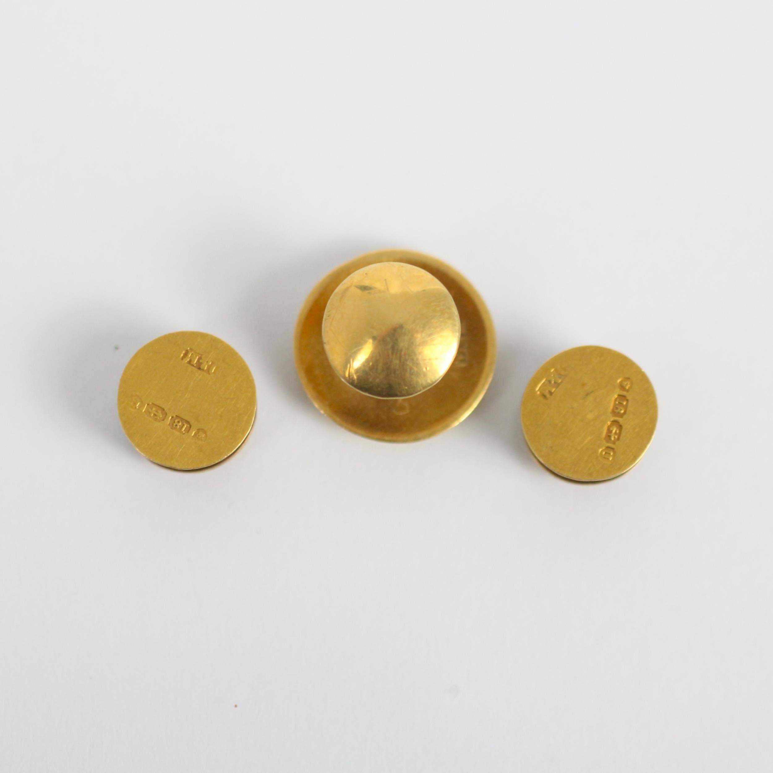 A group of three 18ct yellow gold dress studs, of typical circular form, stamped 'D&M' Birmingham 1944, gross weight 4.5gms (3)