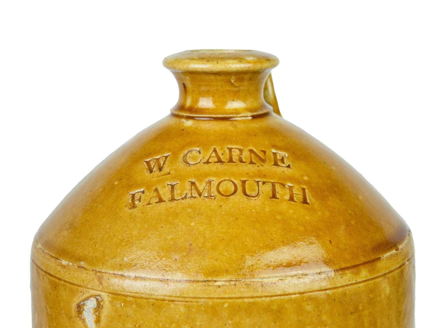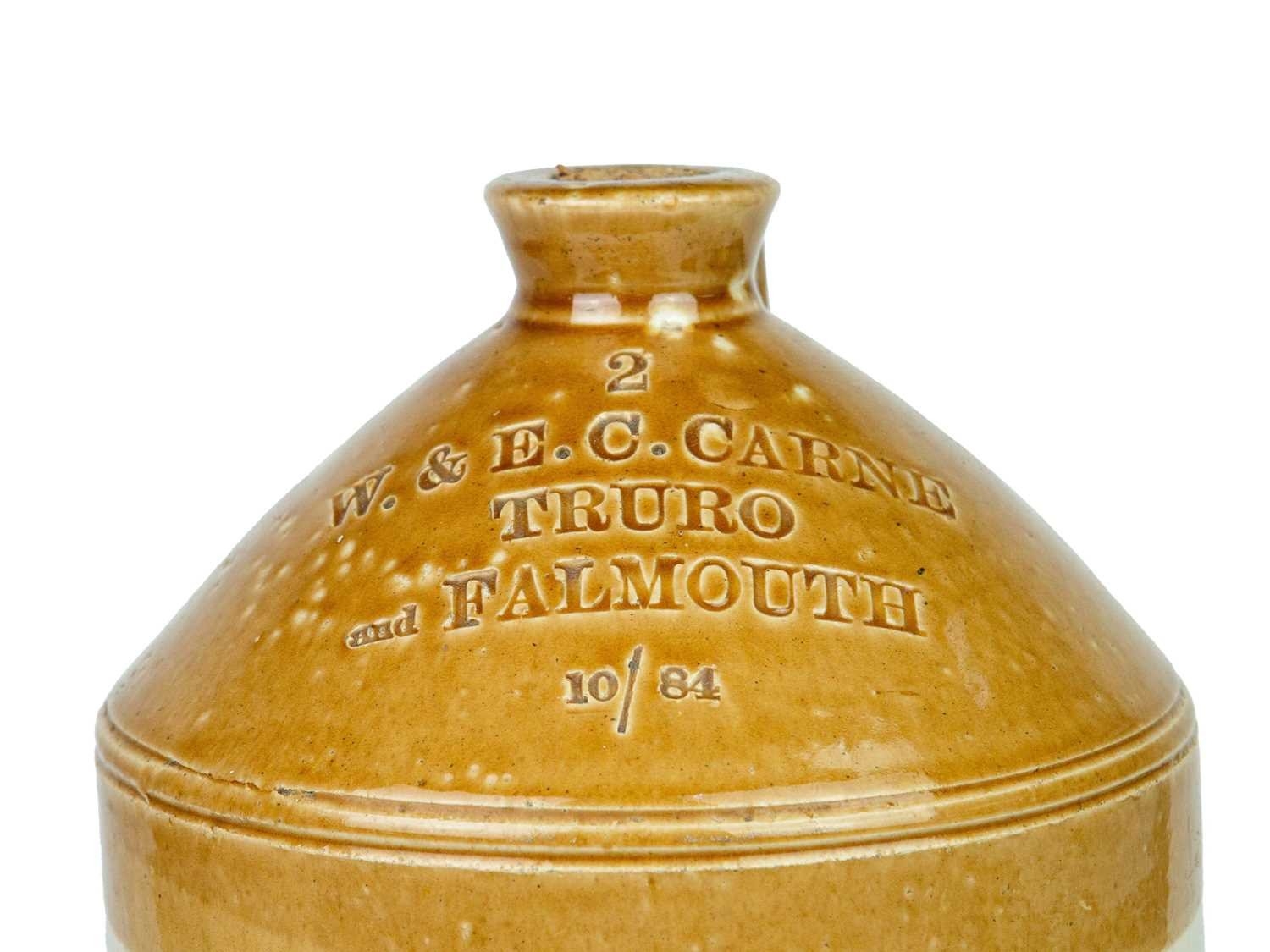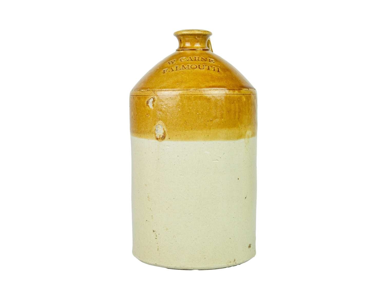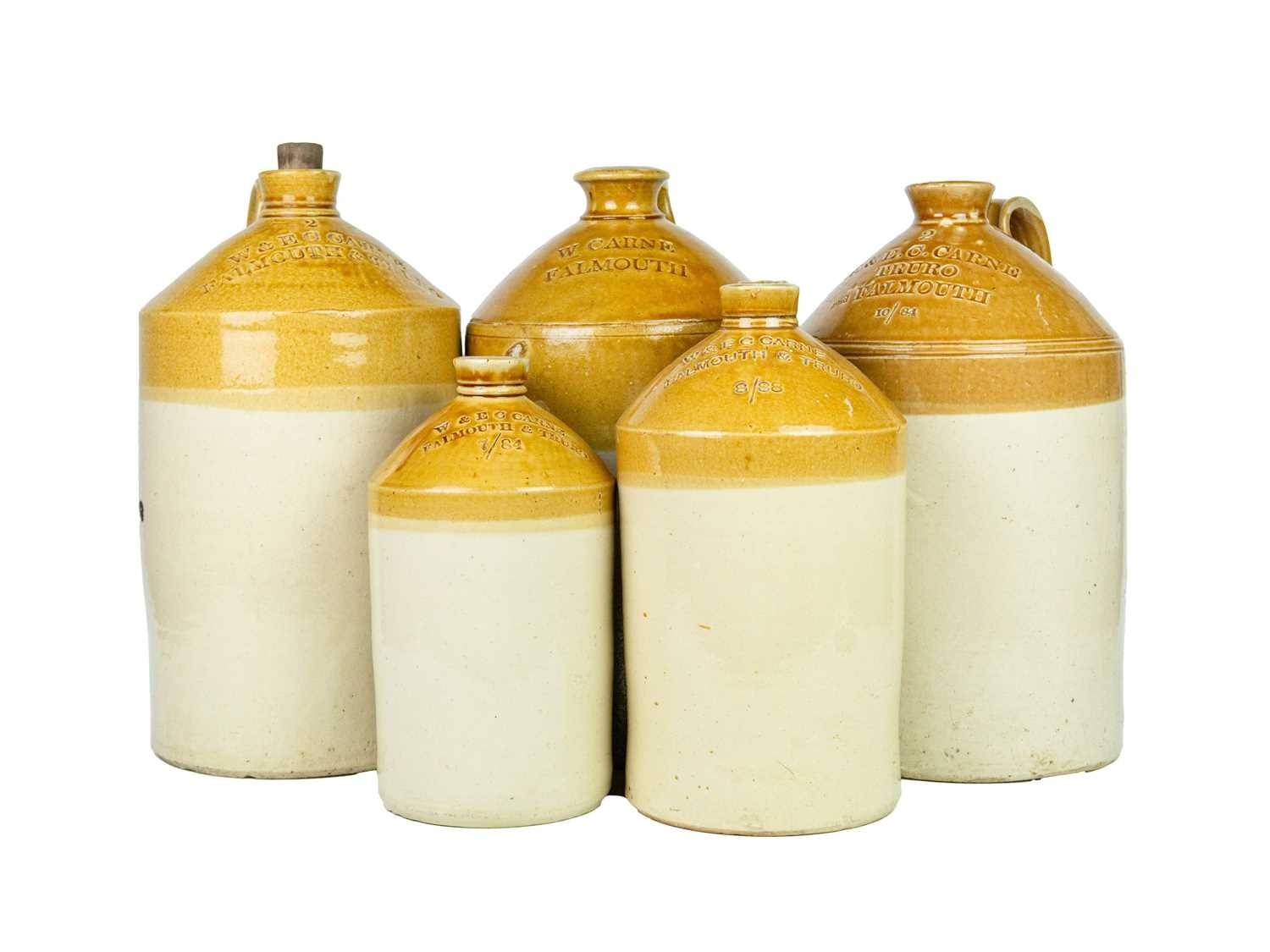 Five W & EC Carne stoneware flagons. Of Falmouth and Truro, various sizes ranging from 40cm-25cm, makers include HY Kennedy Barrowfield Pottery of Glasgow, Doulton Lambeth and Price Bristol (5).